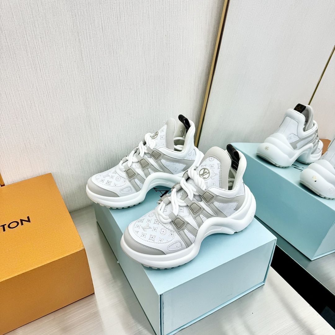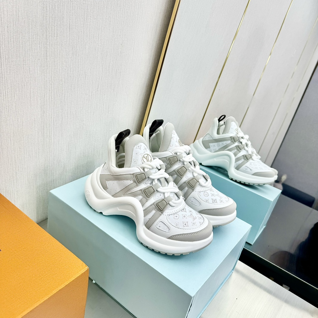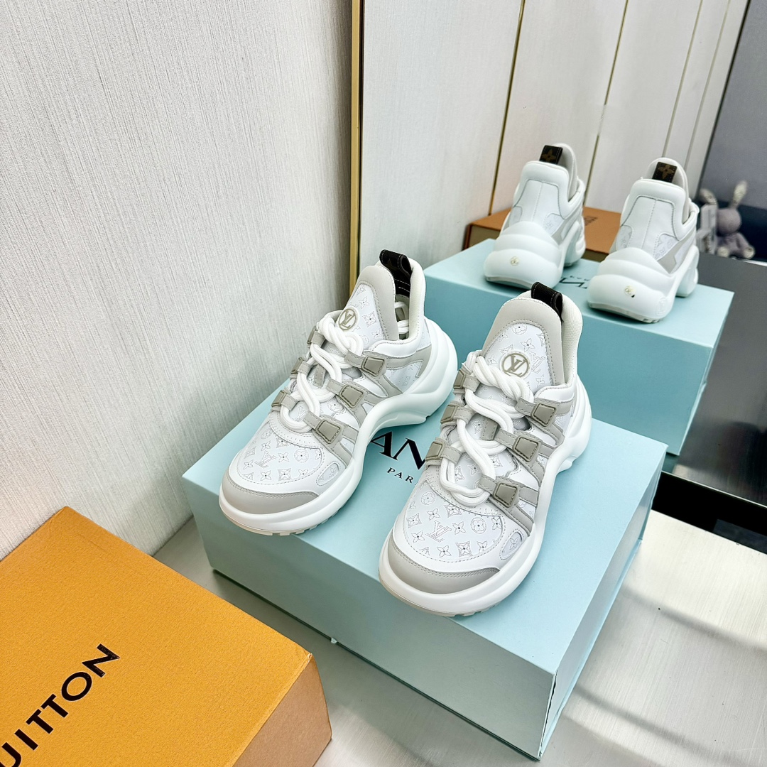 这款鞋子是AAAAA 1:1 质量 (非常棒). 使用了和原版一模一样的材料. 商标部分也保持了和路易威登/Louis Vuitton一样. 图片拍摄是实物鞋子拍摄, 您所收到的实物保证和我们图片一模一样.