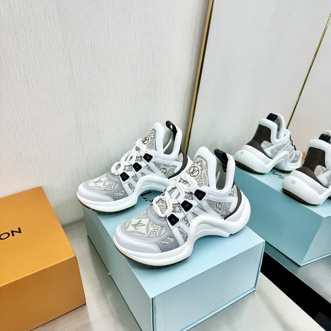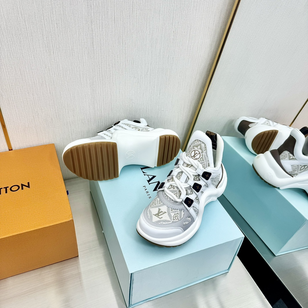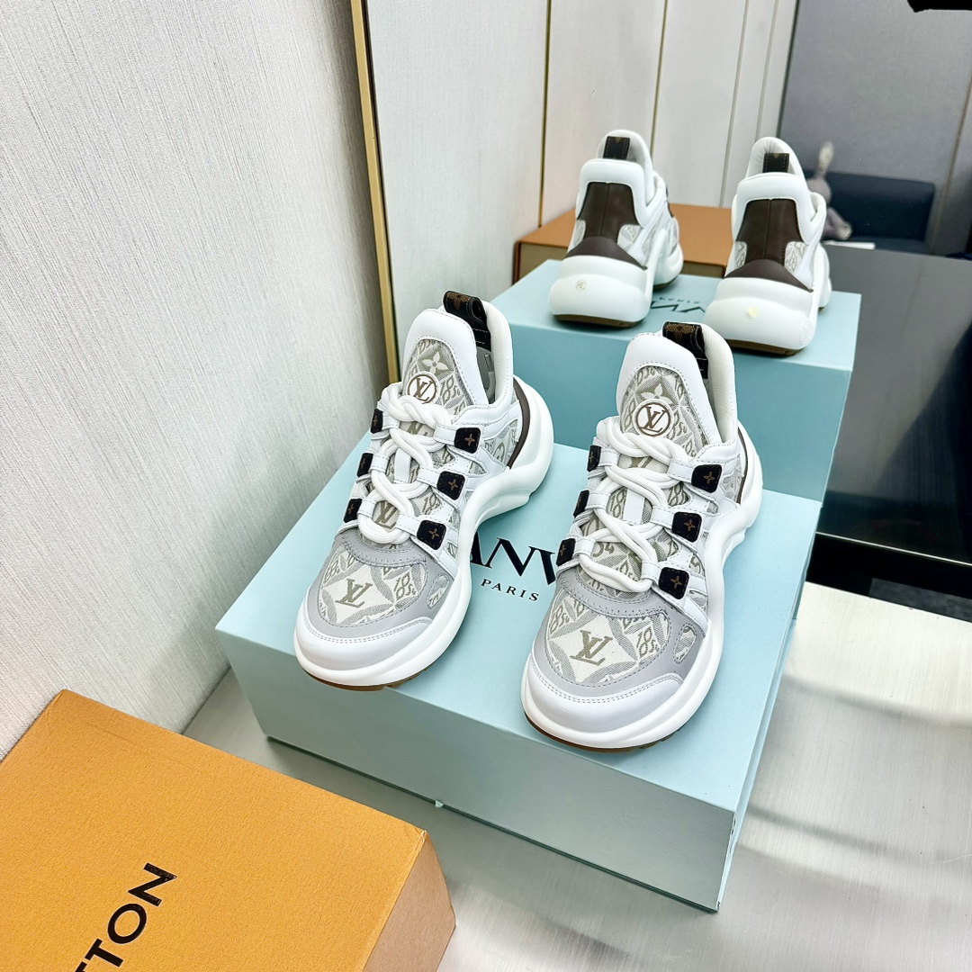 这款鞋子是AAAAA 1:1 质量 (非常棒). 使用了和原版一模一样的材料. 商标部分也保持了和路易威登/Louis Vuitton一样. 图片拍摄是实物鞋子拍摄, 您所收到的实物保证和我们图片一模一样.