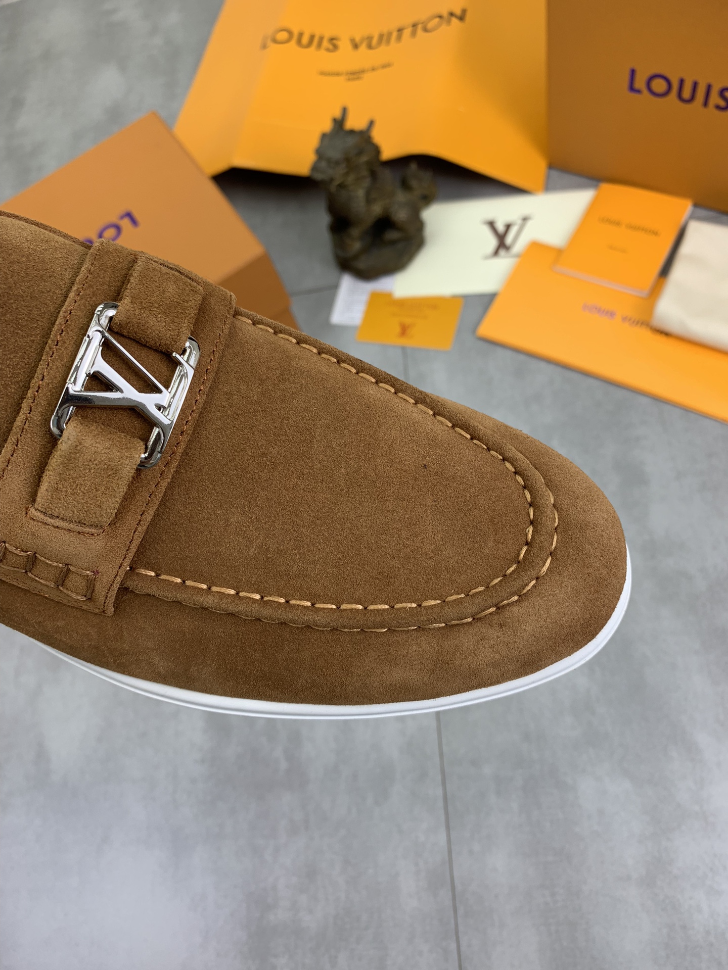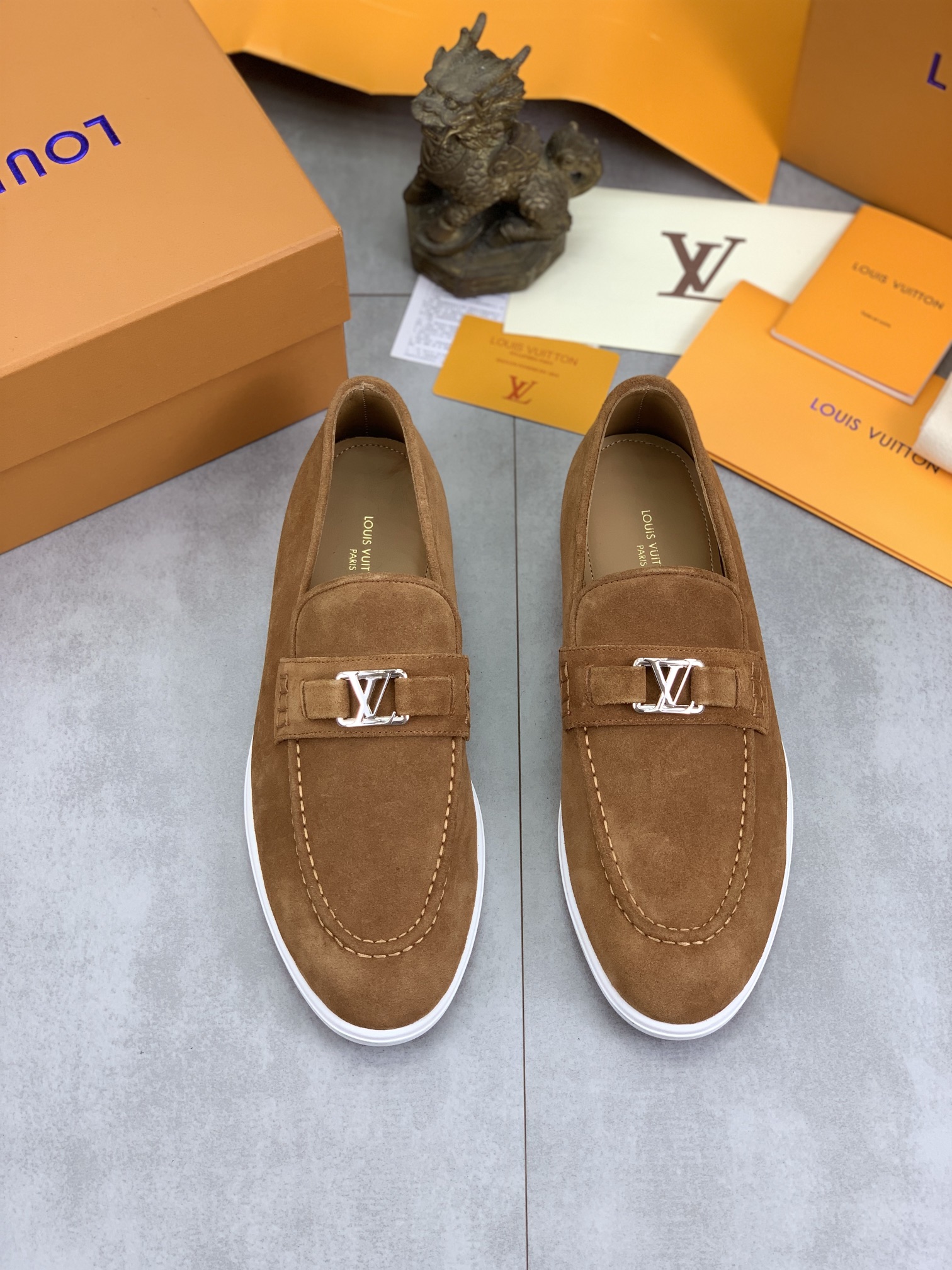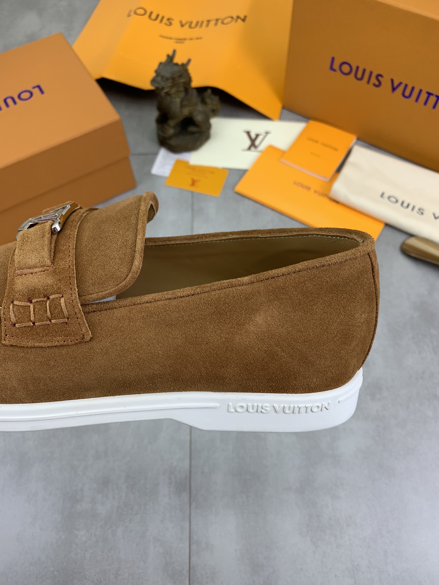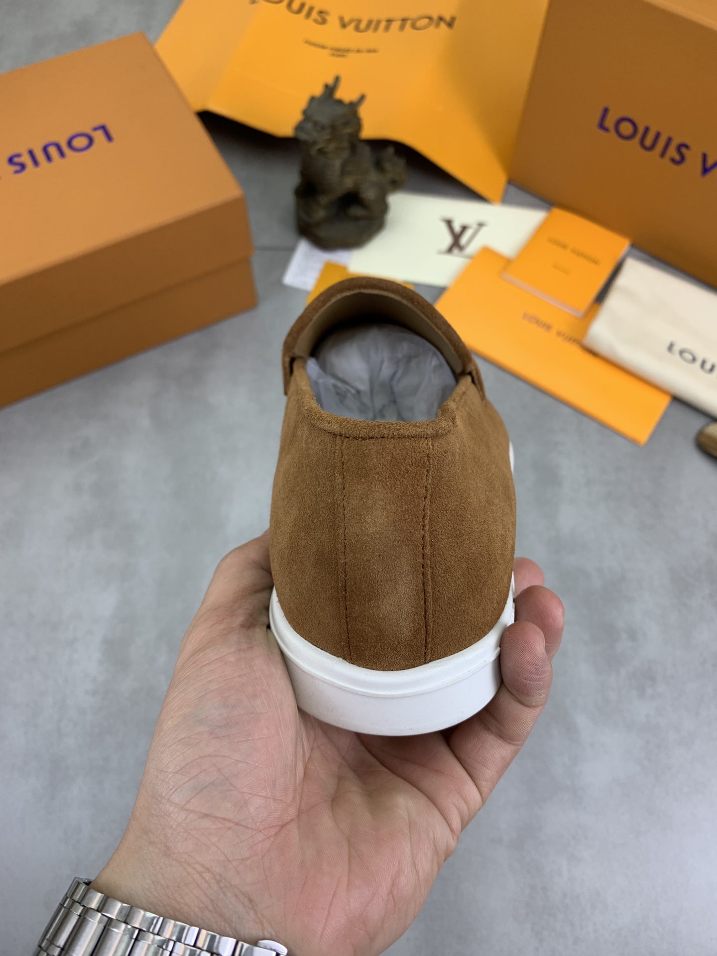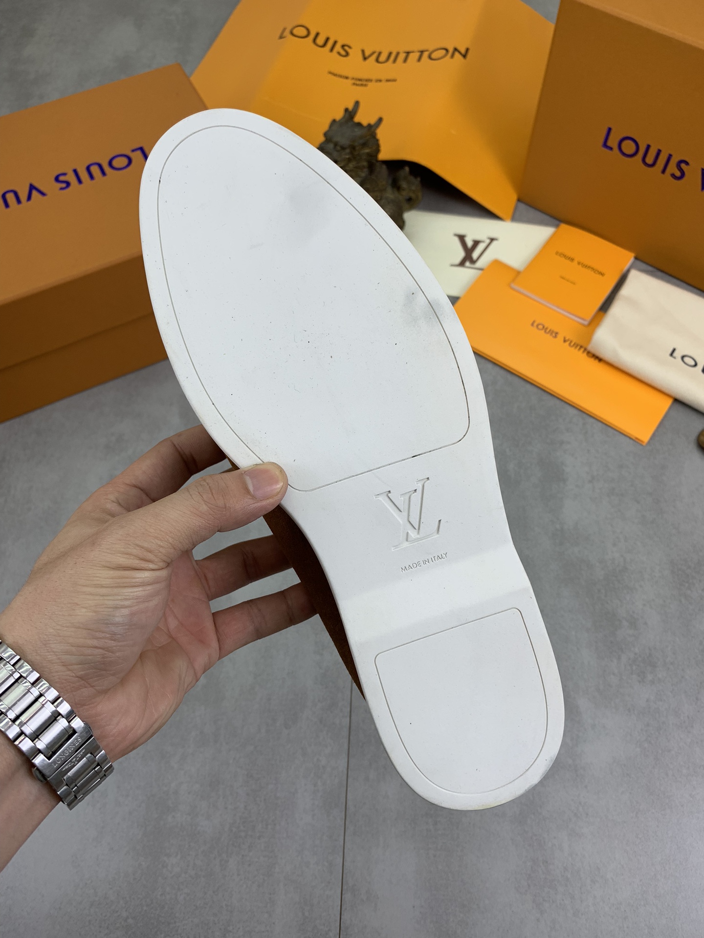 这款鞋子是AAAAA 1:1 质量 (非常棒). 使用了和原版一模一样的材料. 商标部分也保持了和路易威登/Louis Vuitton一样. 图片拍摄是实物鞋子拍摄, 您所收到的实物保证和我们图片一模一样.