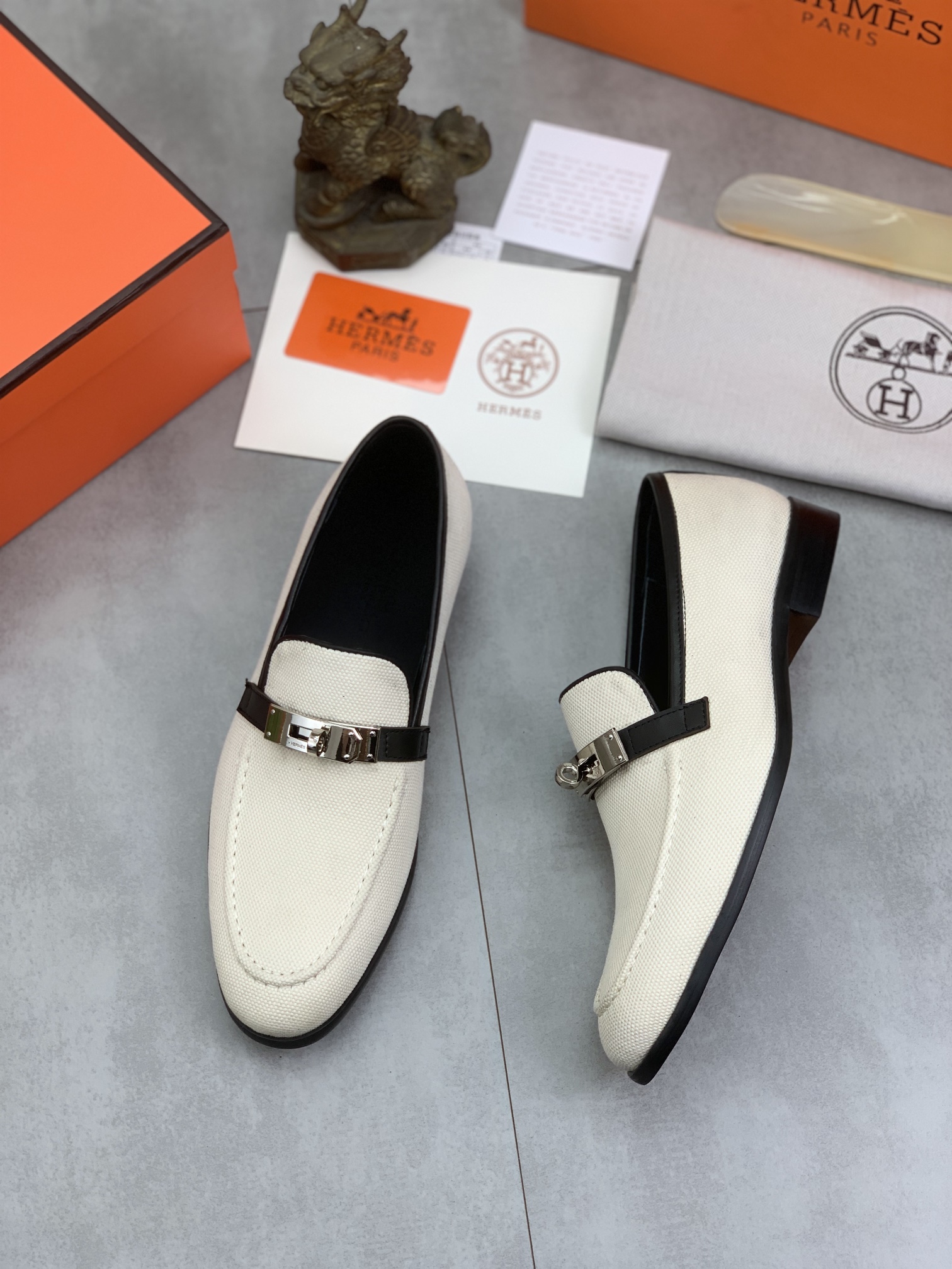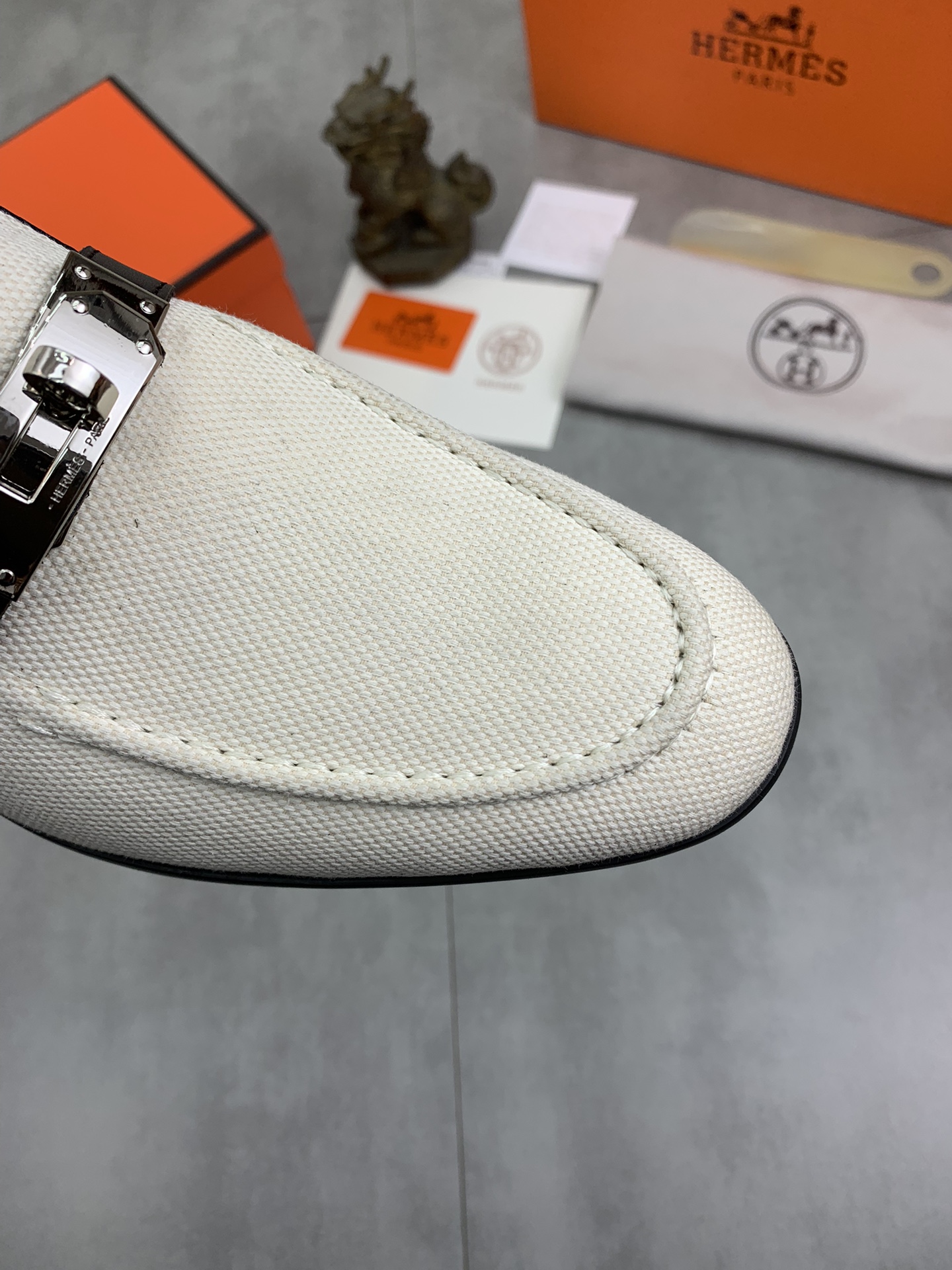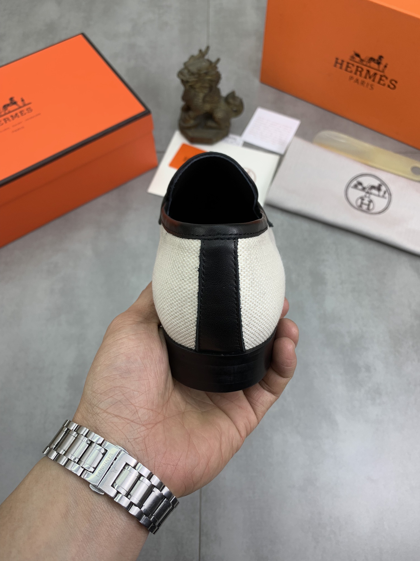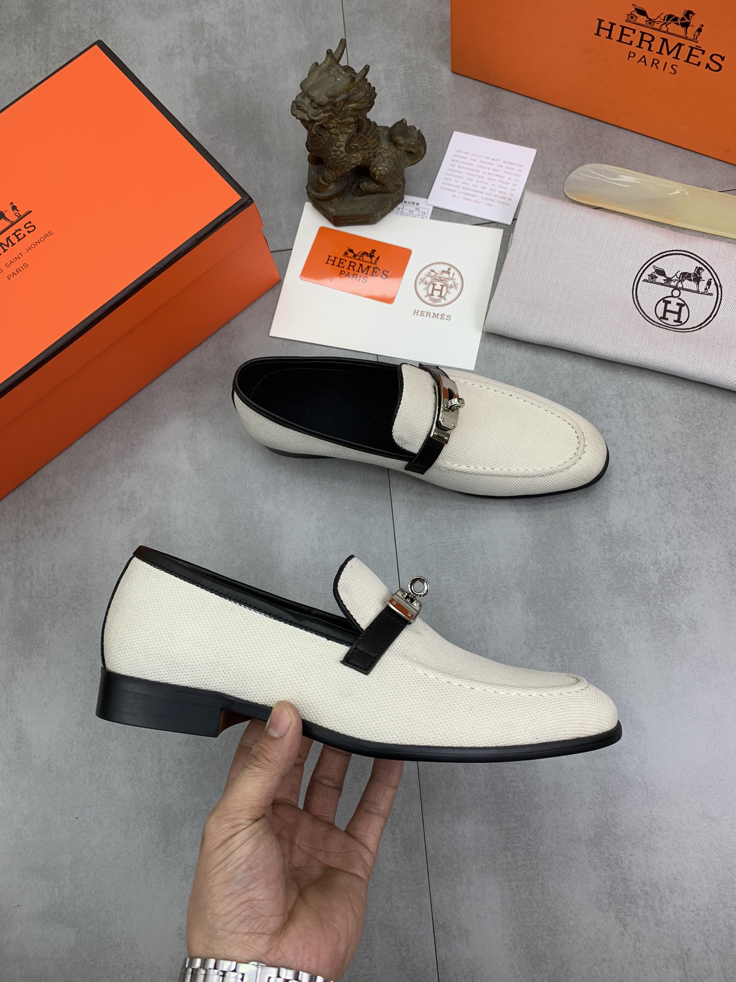 这款鞋子是AAAAA 1:1 质量 (非常棒). 使用了和原版一模一样的材料. 商标部分也保持了和爱马仕/Hermes一样. 图片拍摄是实物鞋子拍摄, 您所收到的实物保证和我们图片一模一样.