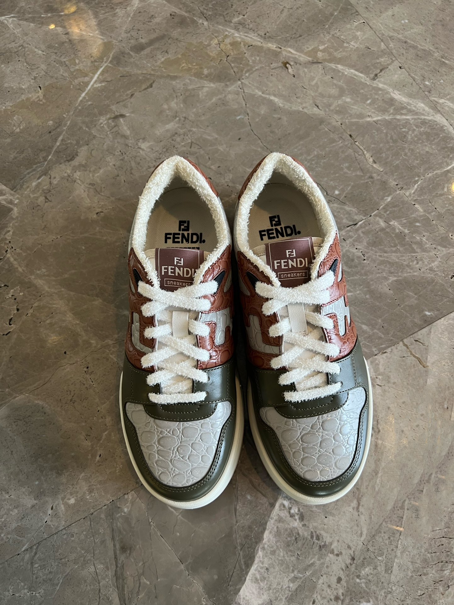 这款鞋子是AAAAA 1:1 质量 (非常棒). 使用了和原版一模一样的材料. 商标部分也保持了和芬迪/Fendi一样. 图片拍摄是实物鞋子拍摄, 您所收到的实物保证和我们图片一模一样.