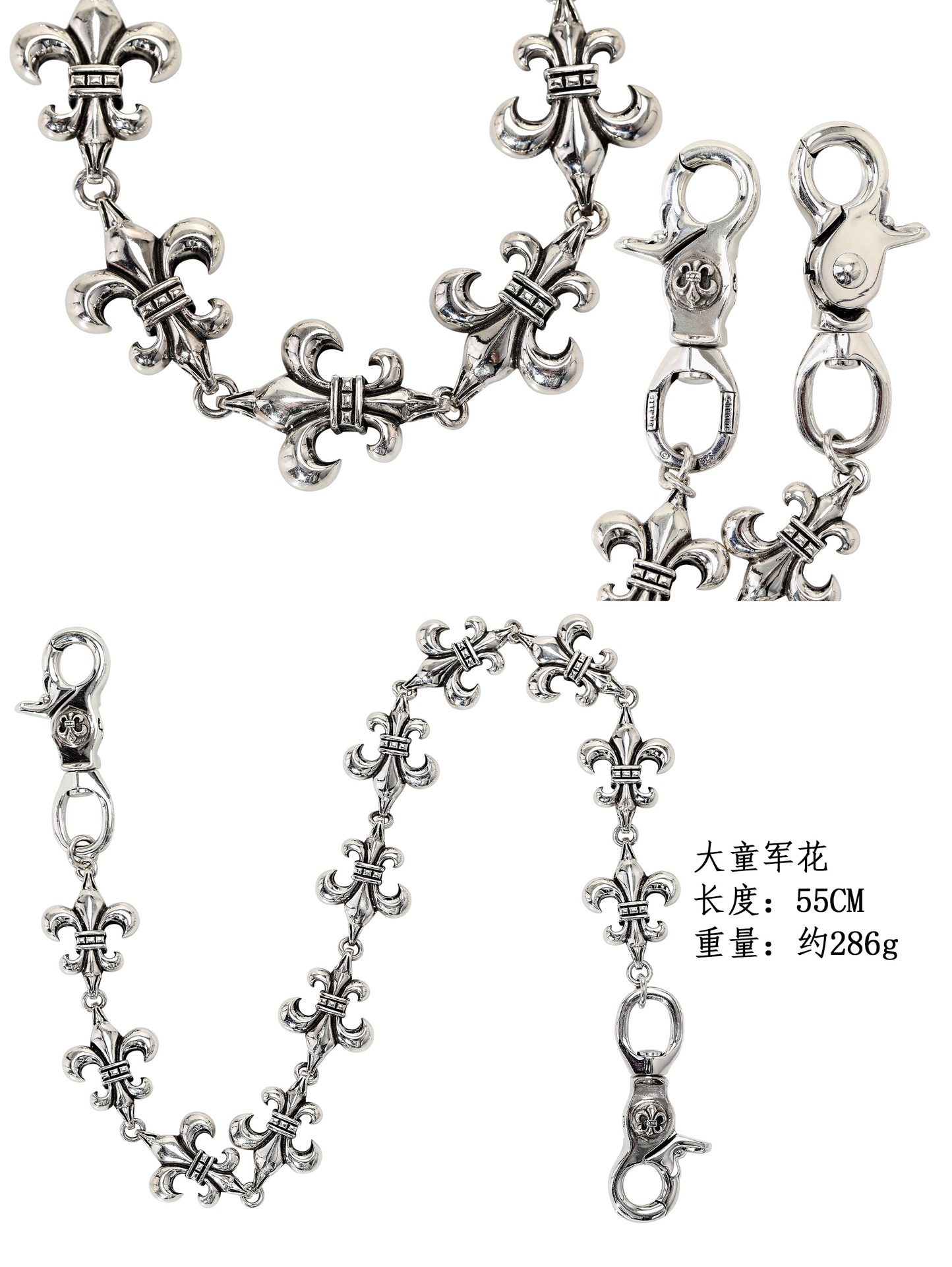 这款首饰是AAAAA 1:1 质量 (非常棒). 使用了和原版一模一样的材料. 商标部分也保持了和克罗心/Chrome Hearts一样. 图片拍摄是实物首饰拍摄, 您所收到的实物保证和我们图片一模一样.