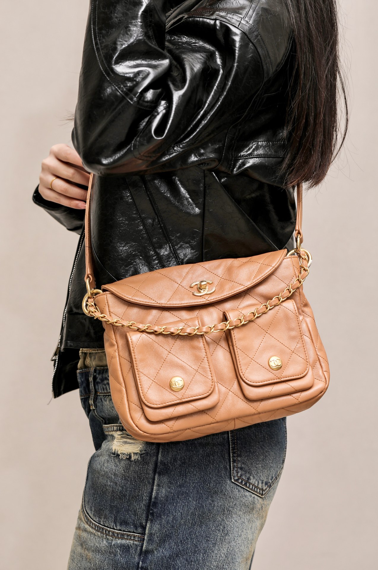 这款包包是AAAAA 1:1 质量 (非常棒). 使用了和原版一模一样的材料. 商标部分也保持了和香奈儿/Chanel一样. 图片拍摄是实物包包拍摄, 您所收到的实物保证和我们图片一模一样.