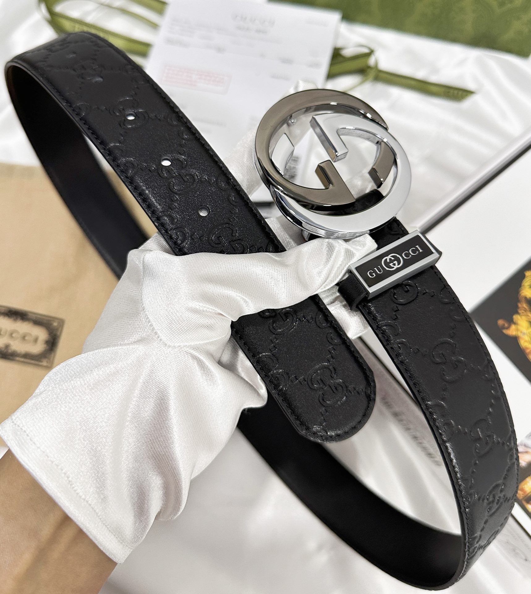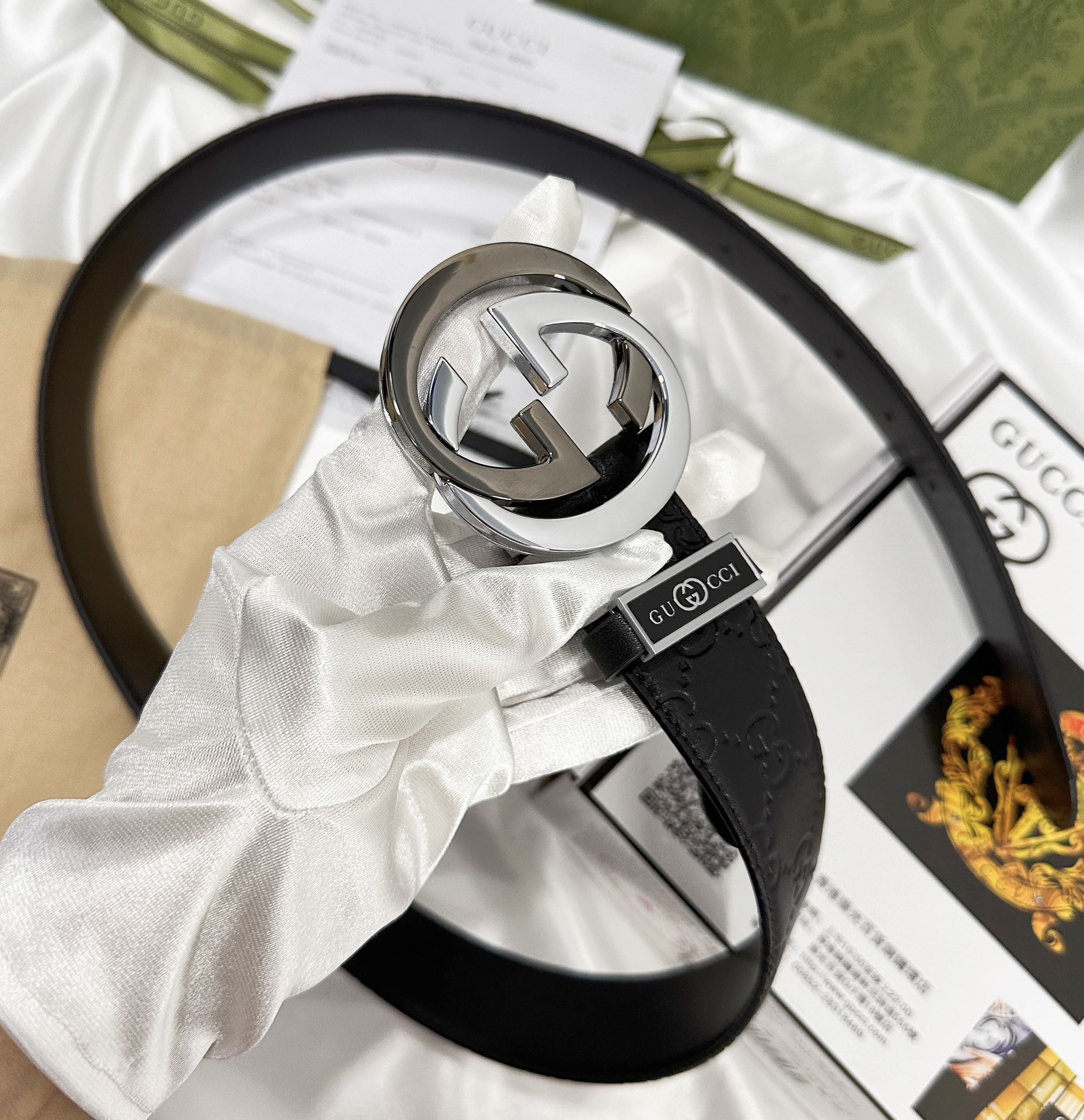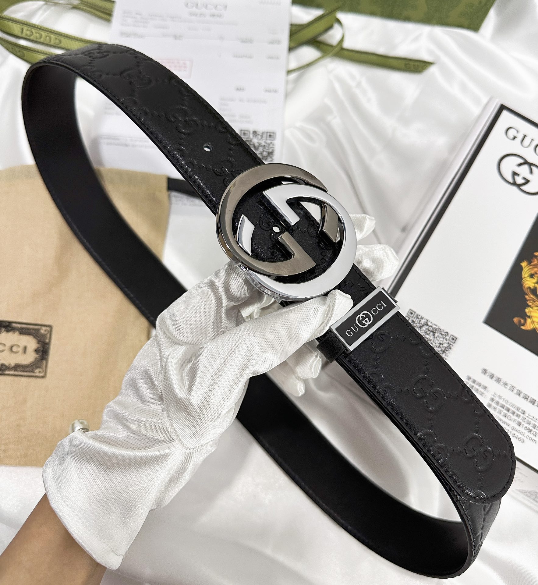 这款皮带是AAAAA 1:1 质量 (非常棒). 使用了和原版一模一样的材料. 商标部分也保持了和古奇/Gucci一样. 图片拍摄是实物皮带拍摄, 您所收到的实物保证和我们图片一模一样.