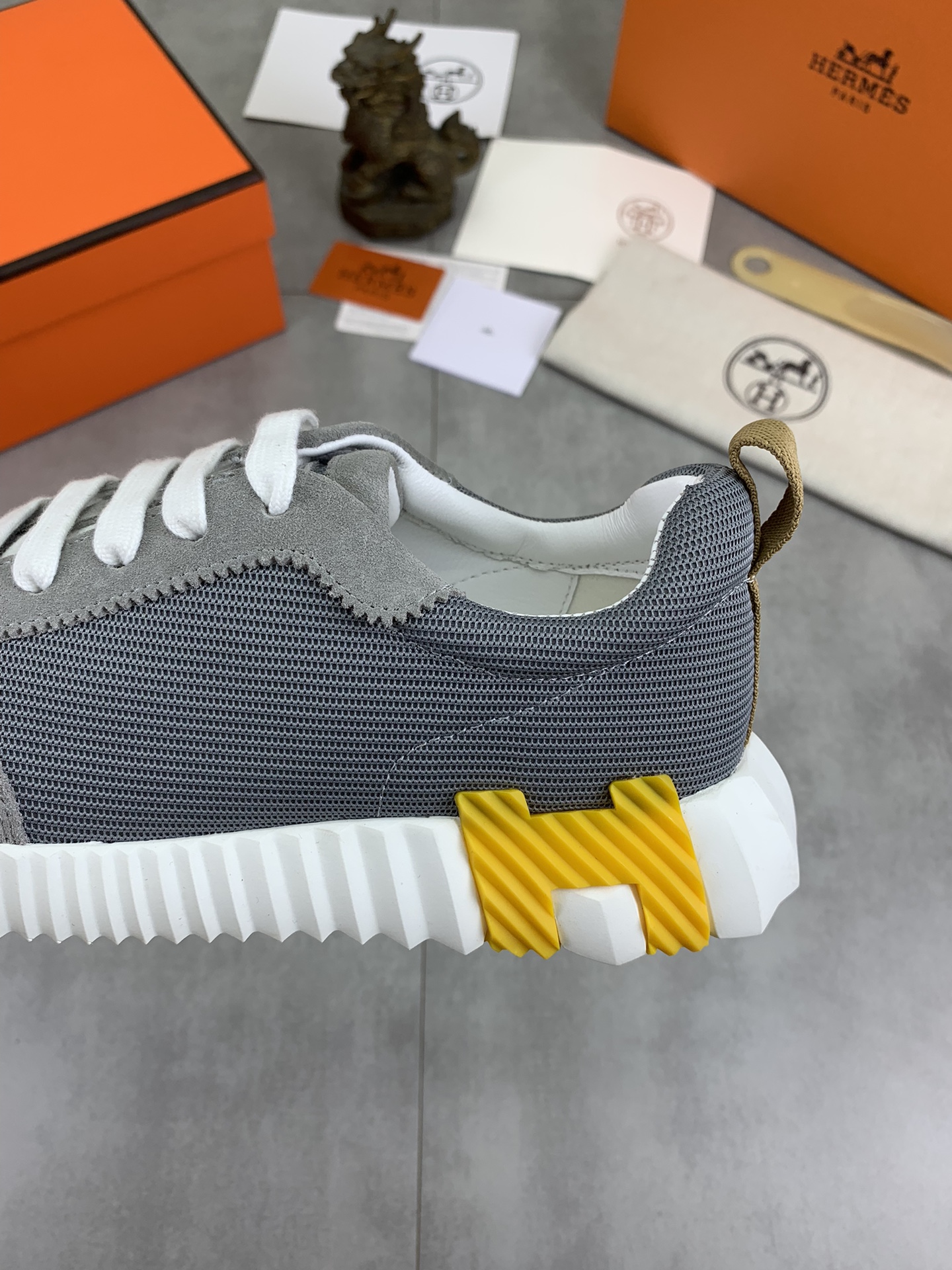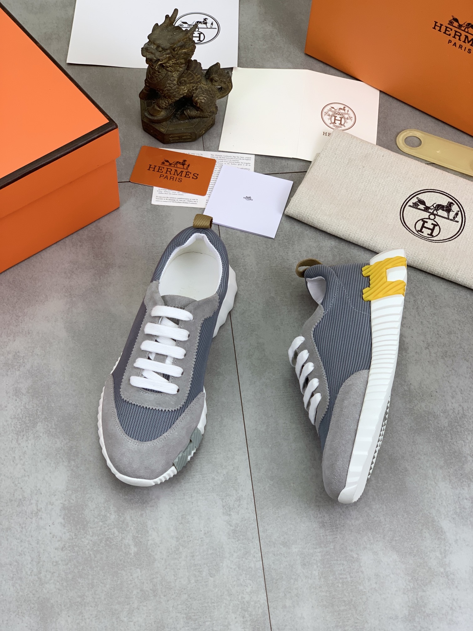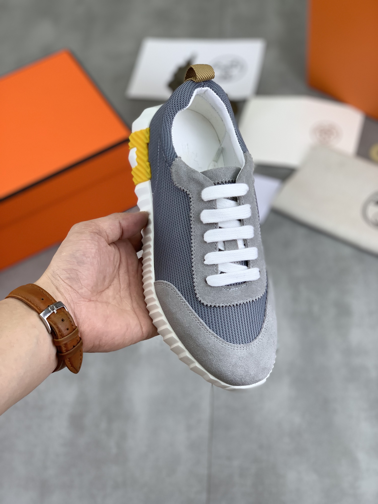 这款鞋子是AAAAA 1:1 质量 (非常棒). 使用了和原版一模一样的材料. 商标部分也保持了和爱马仕/Hermes一样. 图片拍摄是实物鞋子拍摄, 您所收到的实物保证和我们图片一模一样.