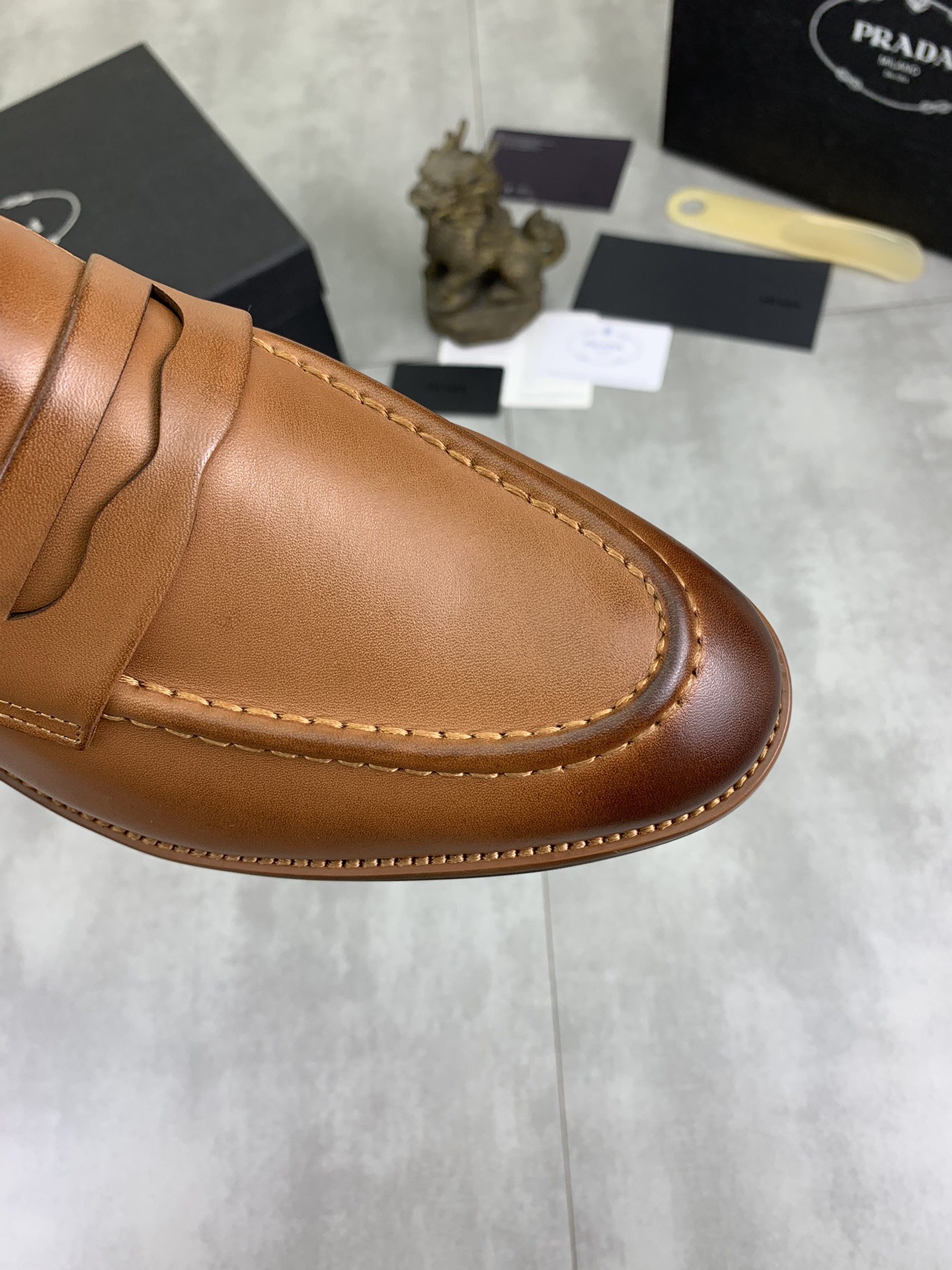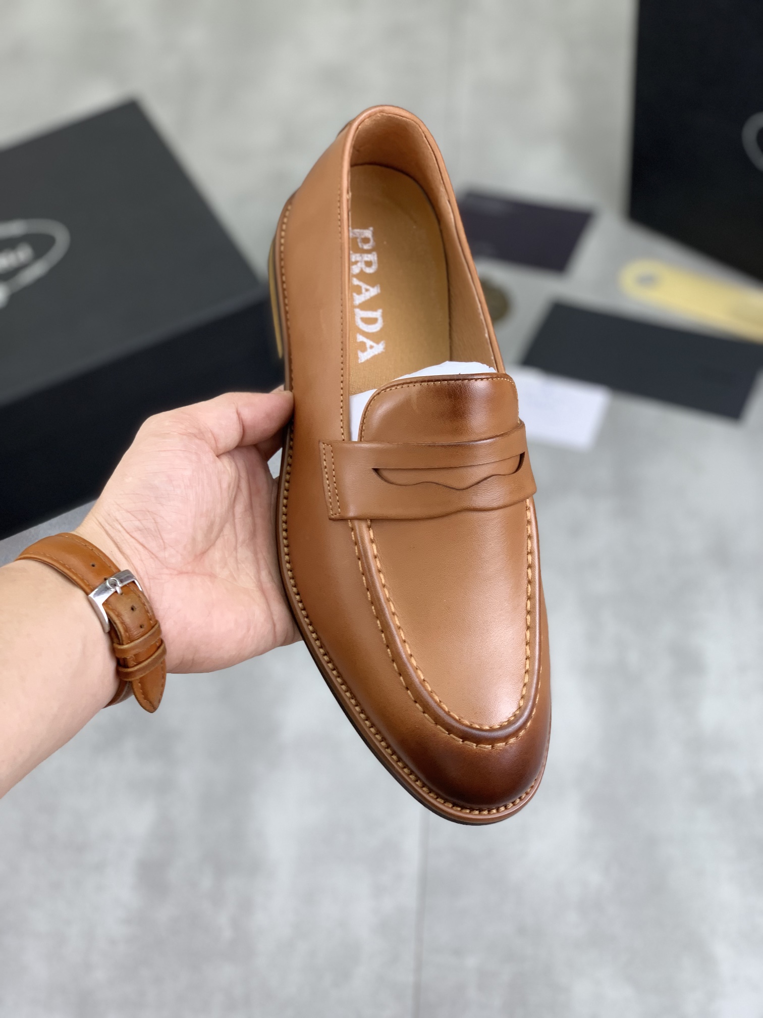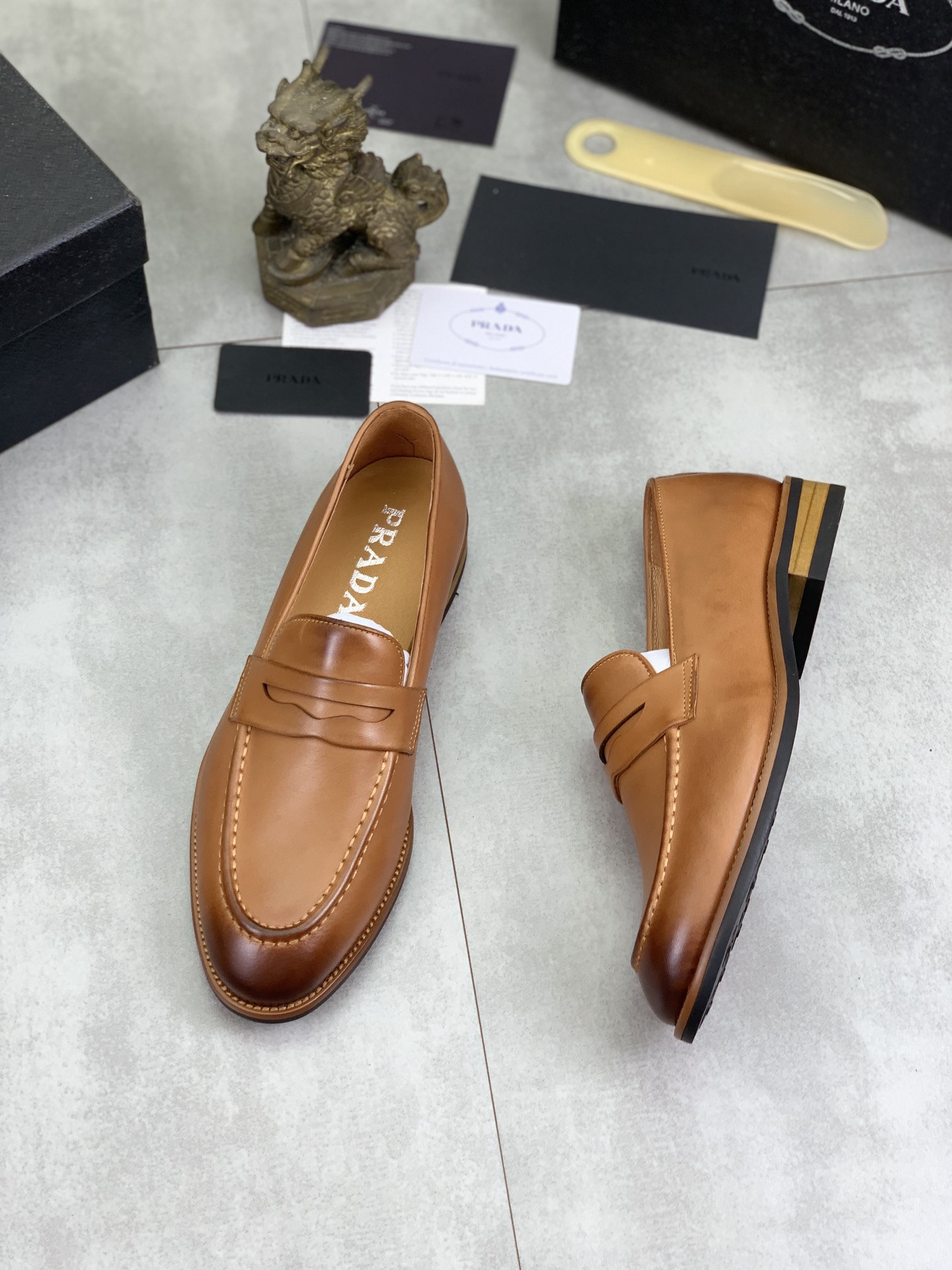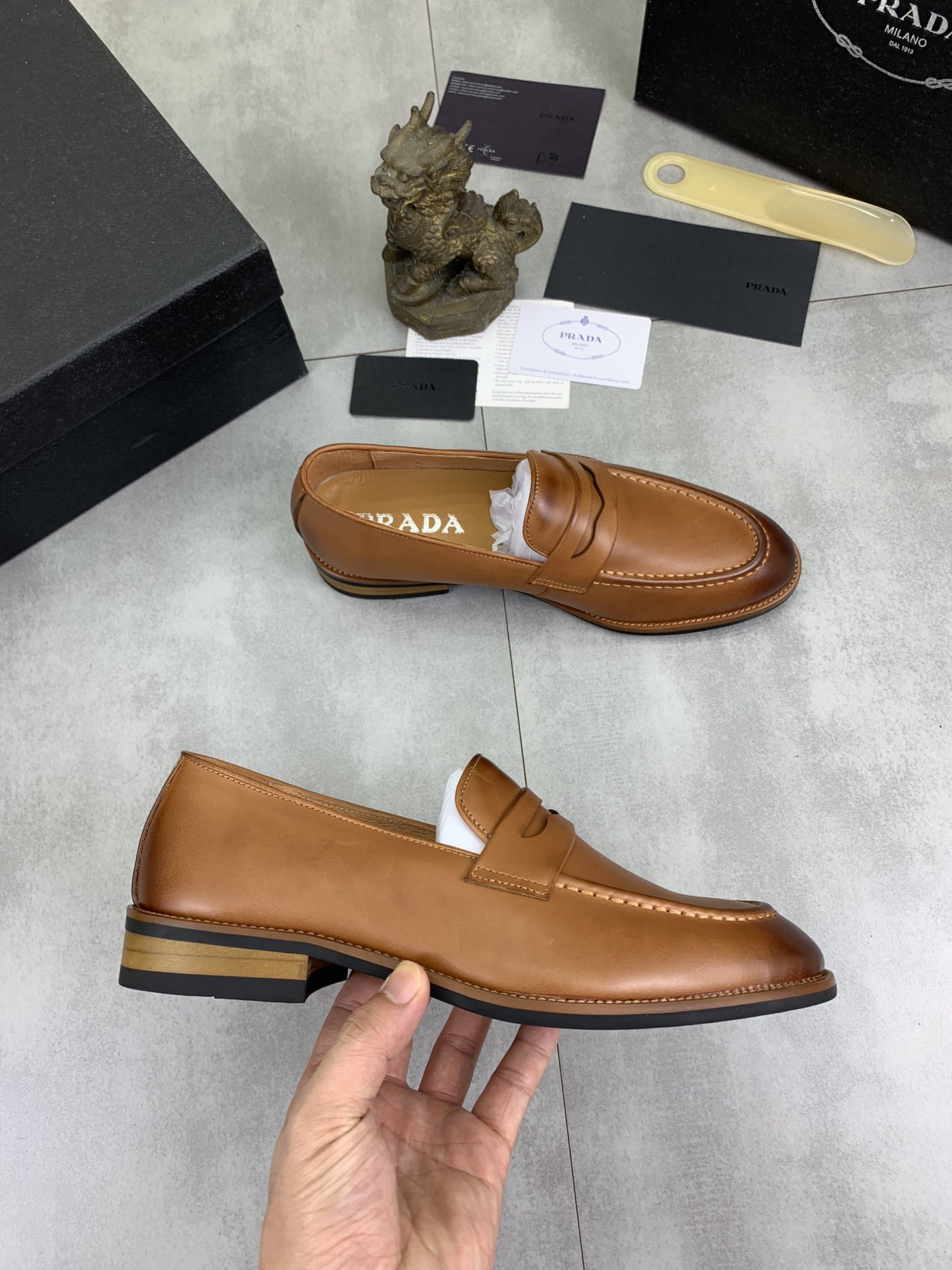 这款鞋子是AAAAA 1:1 质量 (非常棒). 使用了和原版一模一样的材料. 商标部分也保持了和普拉达/Prada一样. 图片拍摄是实物鞋子拍摄, 您所收到的实物保证和我们图片一模一样.