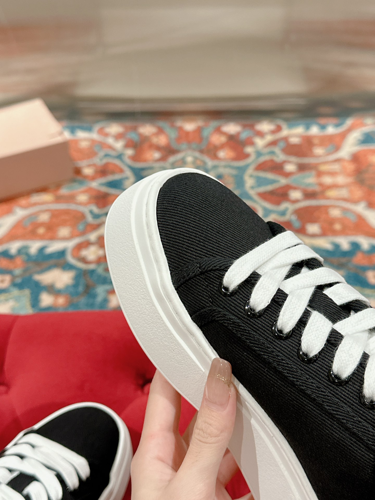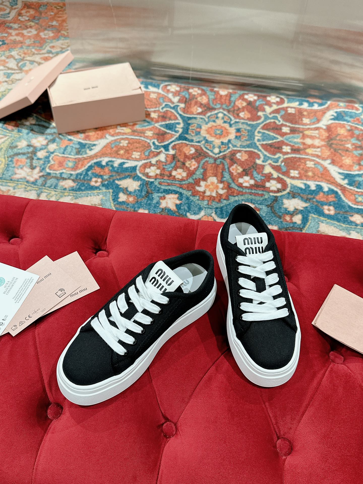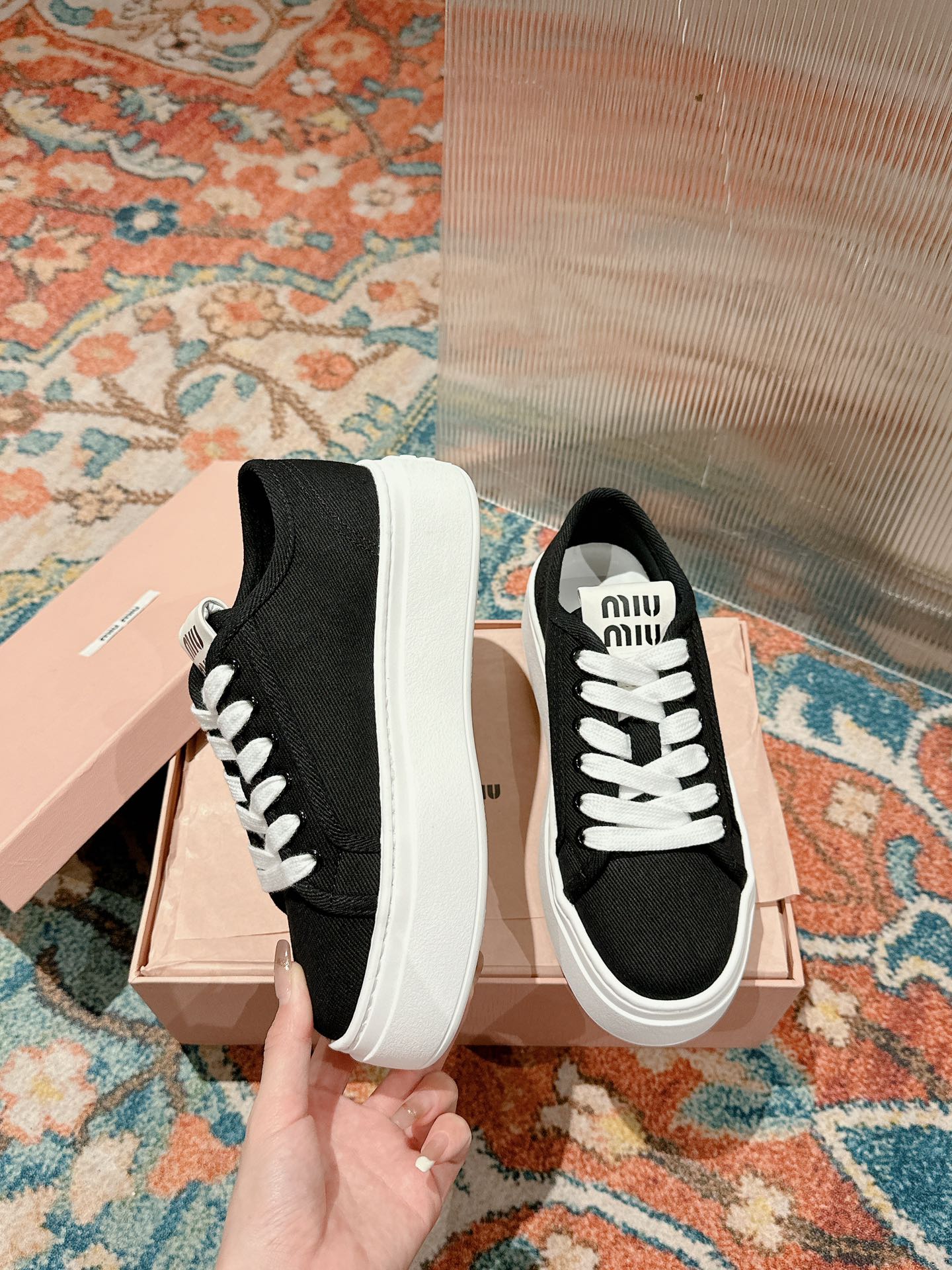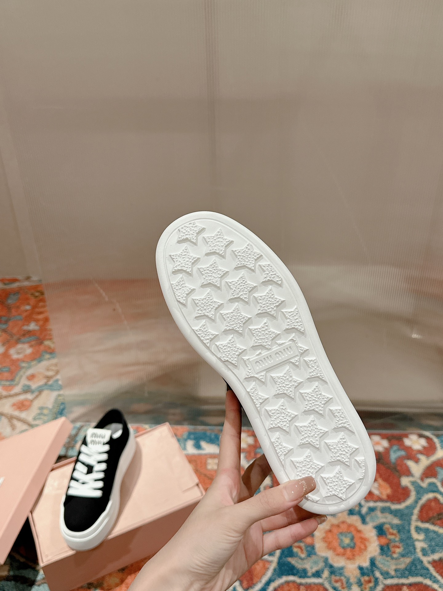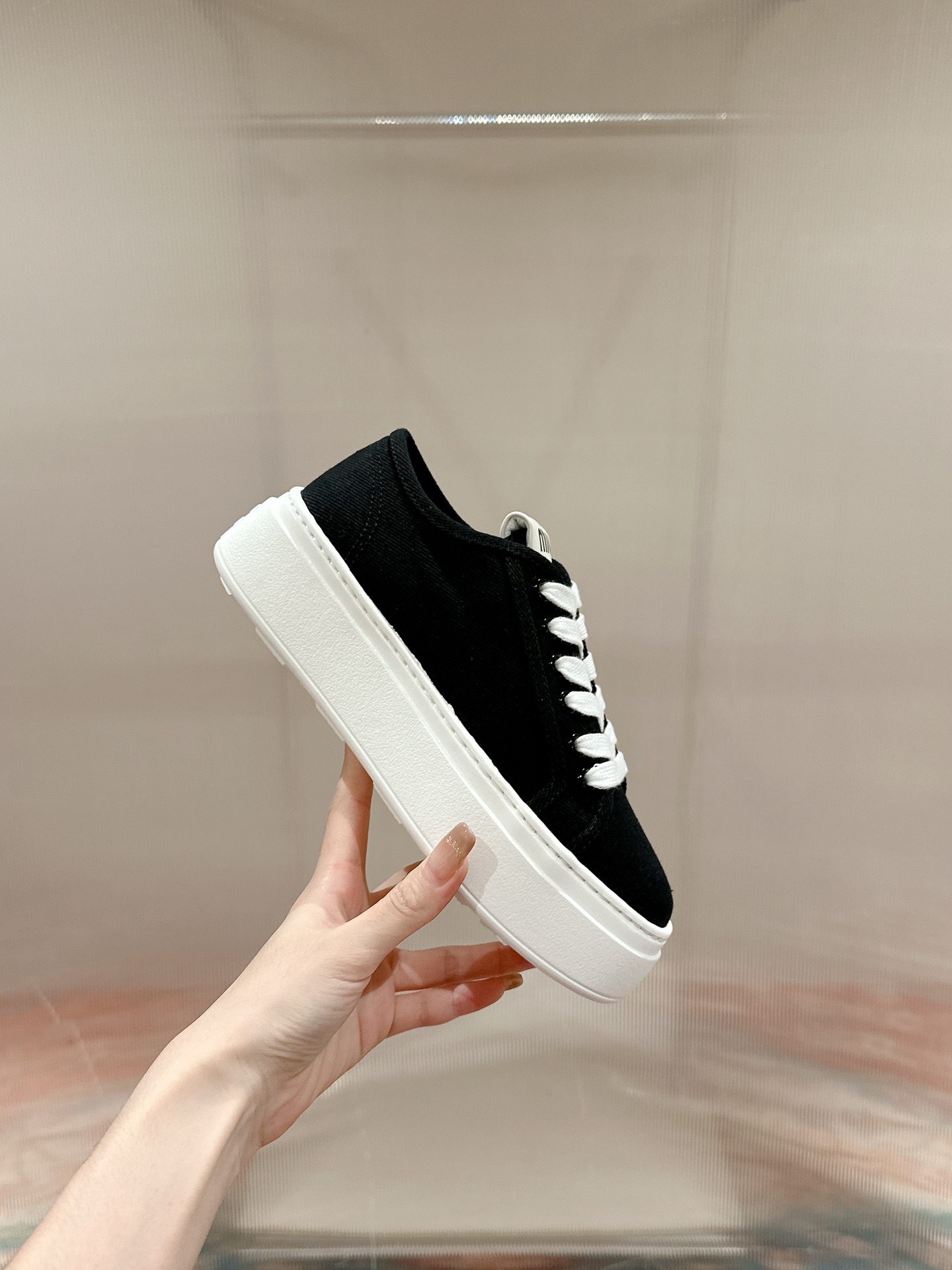 这款鞋子是AAAAA 1:1 质量 (非常棒). 使用了和原版一模一样的材料. 商标部分也保持了和缪缪/Miu Miu一样. 图片拍摄是实物鞋子拍摄, 您所收到的实物保证和我们图片一模一样.
