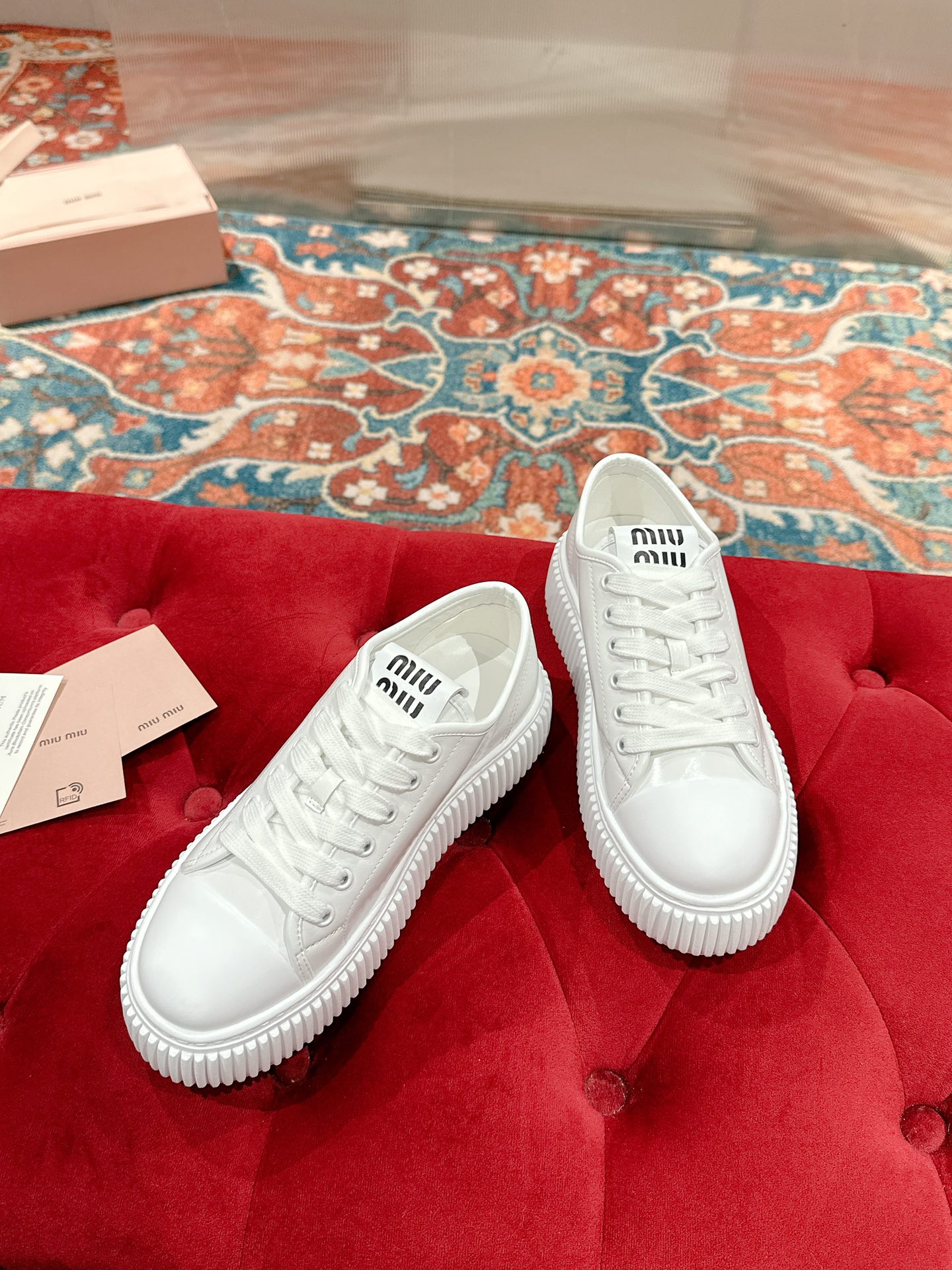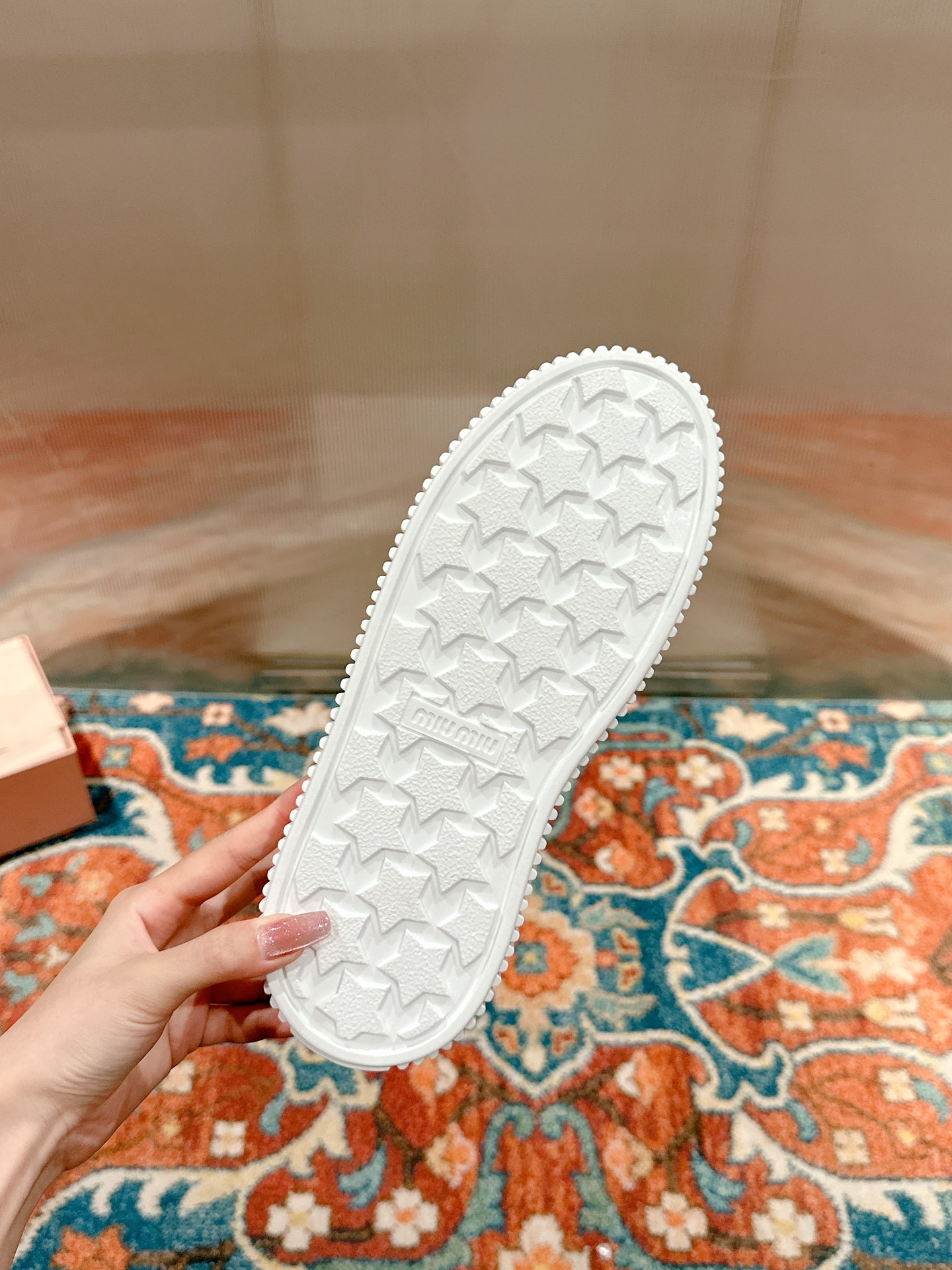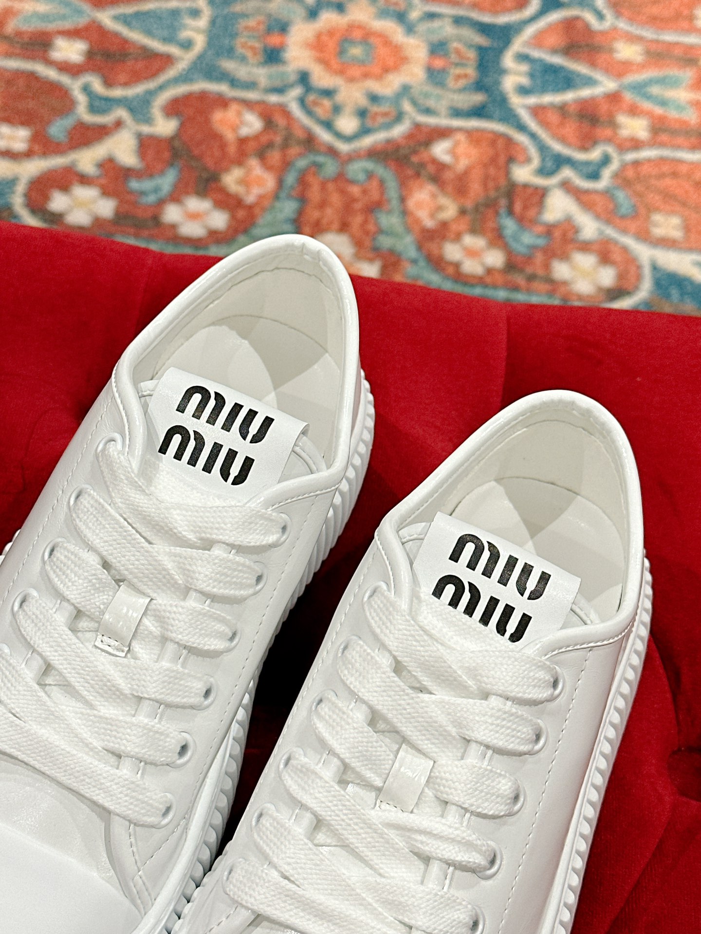 这款鞋子是AAAAA 1:1 质量 (非常棒). 使用了和原版一模一样的材料. 商标部分也保持了和缪缪/Miu Miu一样. 图片拍摄是实物鞋子拍摄, 您所收到的实物保证和我们图片一模一样.