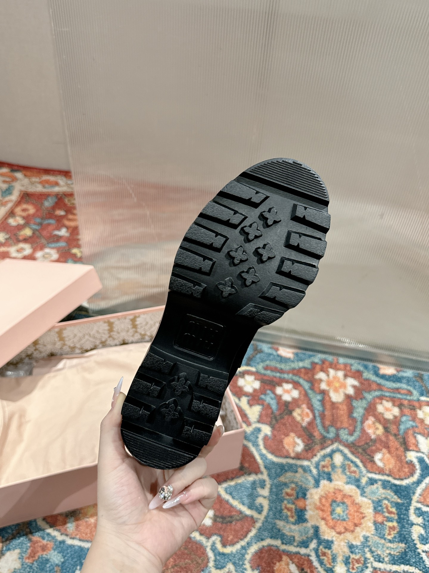 这款鞋子是AAAAA 1:1 质量 (非常棒). 使用了和原版一模一样的材料. 商标部分也保持了和缪缪/Miu Miu一样. 图片拍摄是实物鞋子拍摄, 您所收到的实物保证和我们图片一模一样.