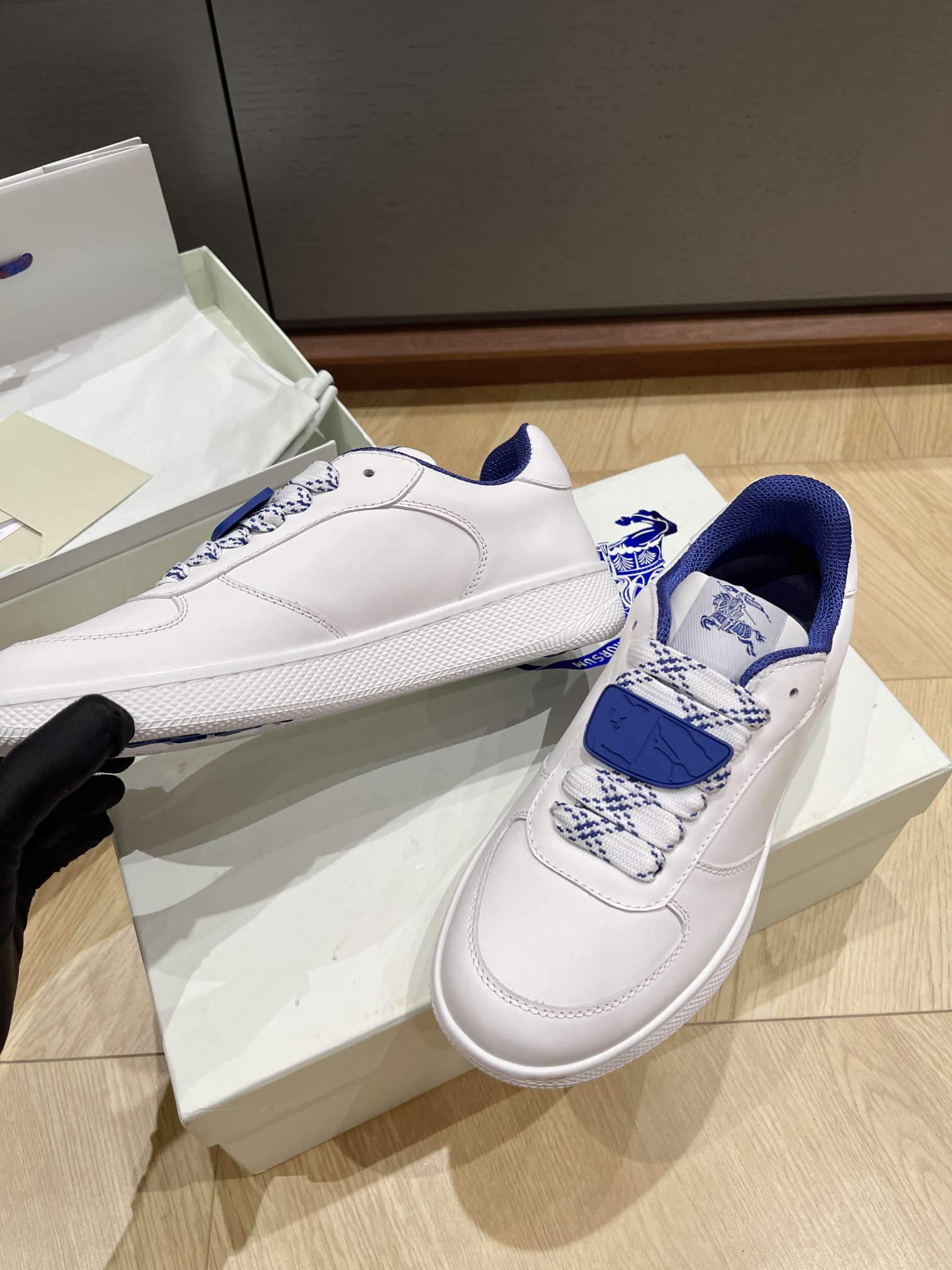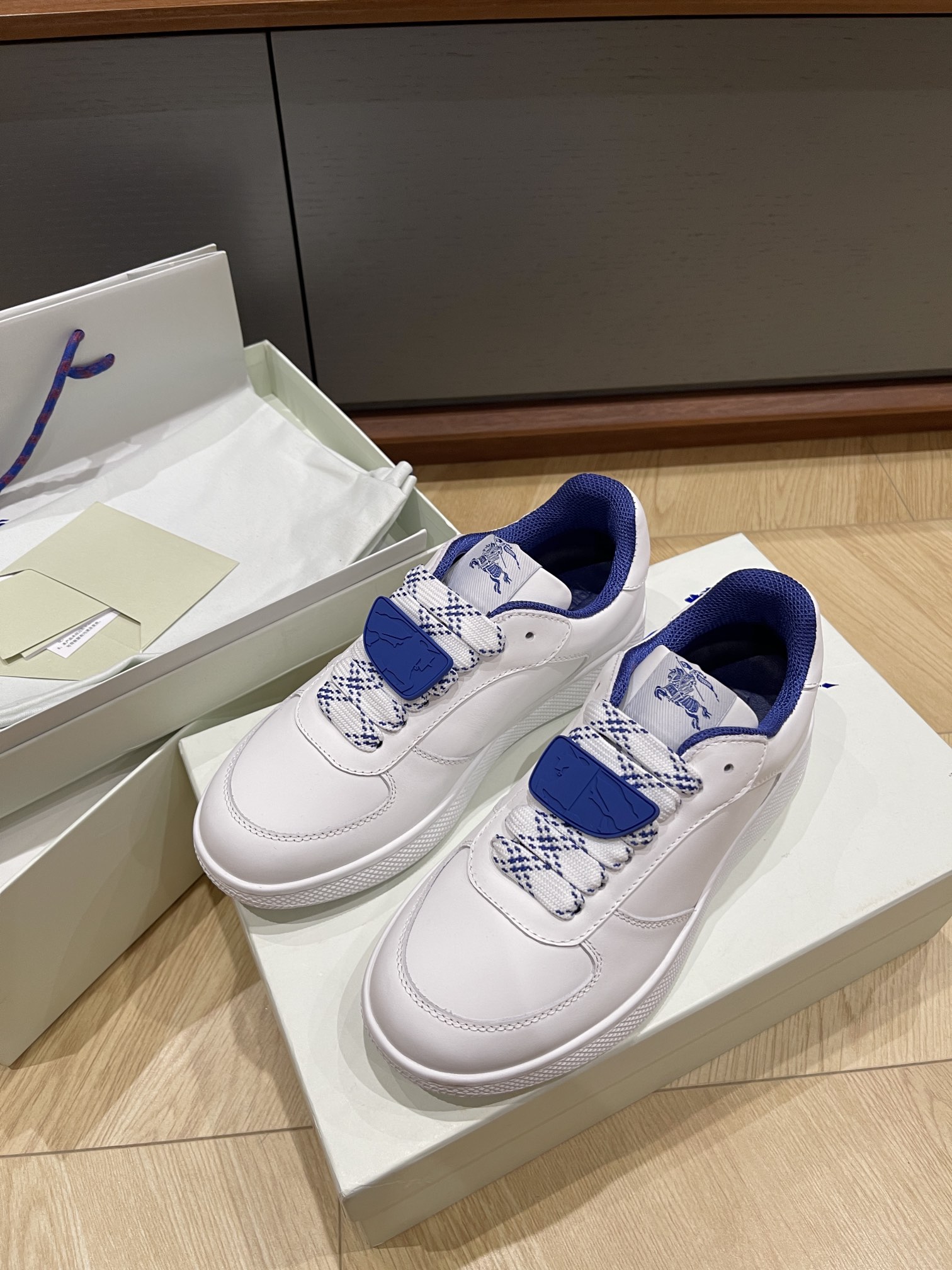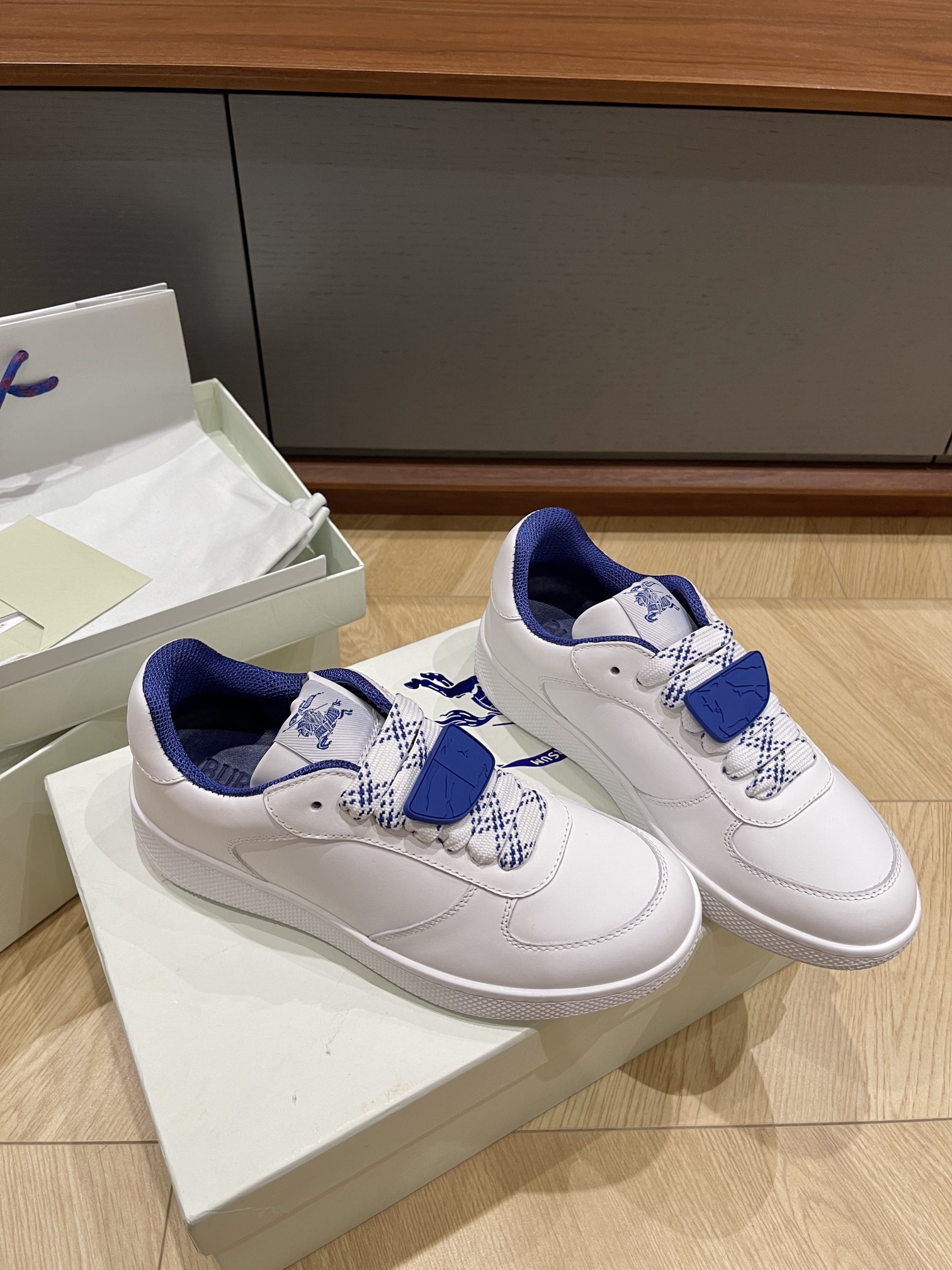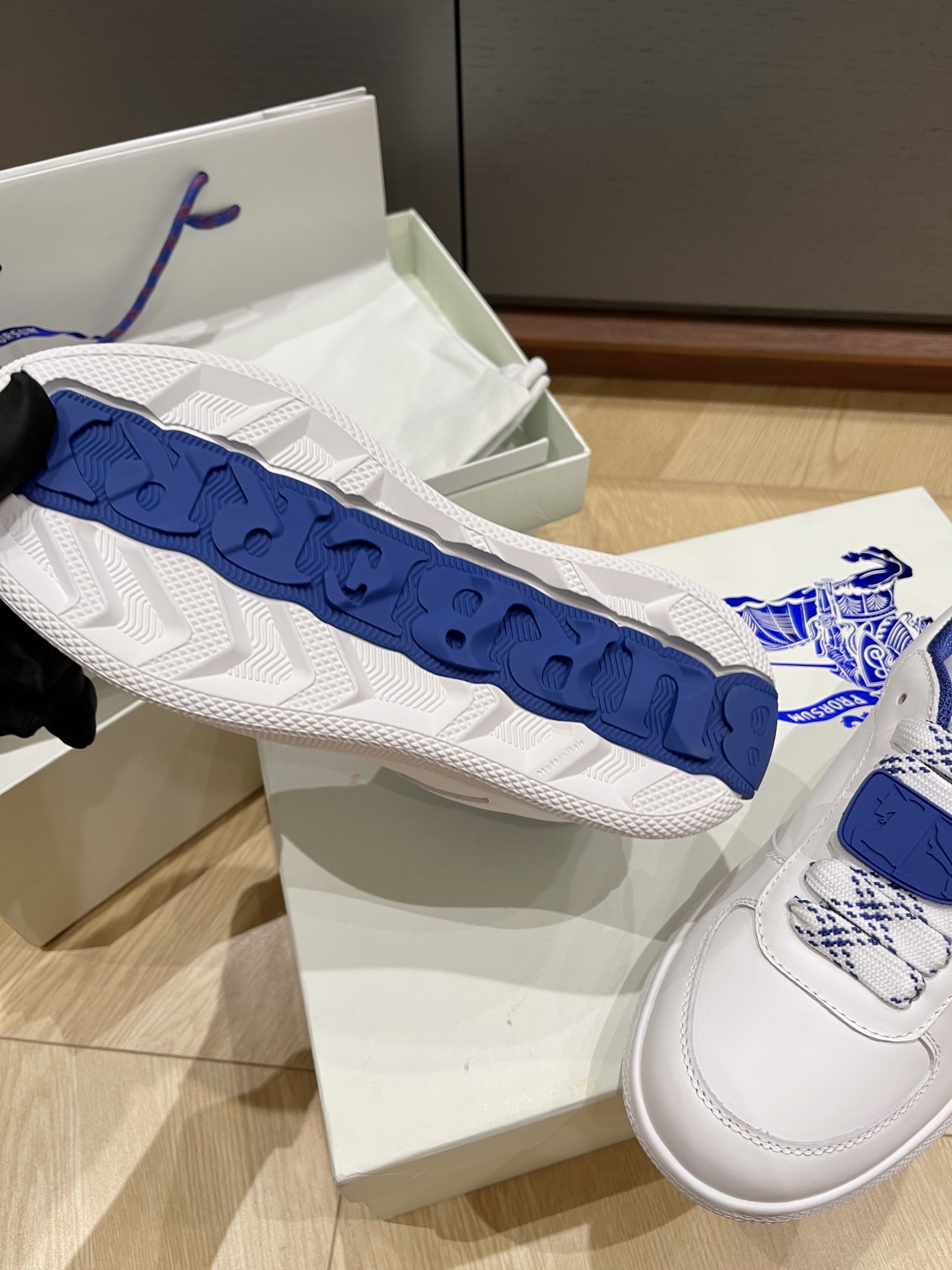 这款鞋子是AAAAA 1:1 质量 (非常棒). 使用了和原版一模一样的材料. 商标部分也保持了和巴宝莉/Burberry一样. 图片拍摄是实物鞋子拍摄, 您所收到的实物保证和我们图片一模一样.