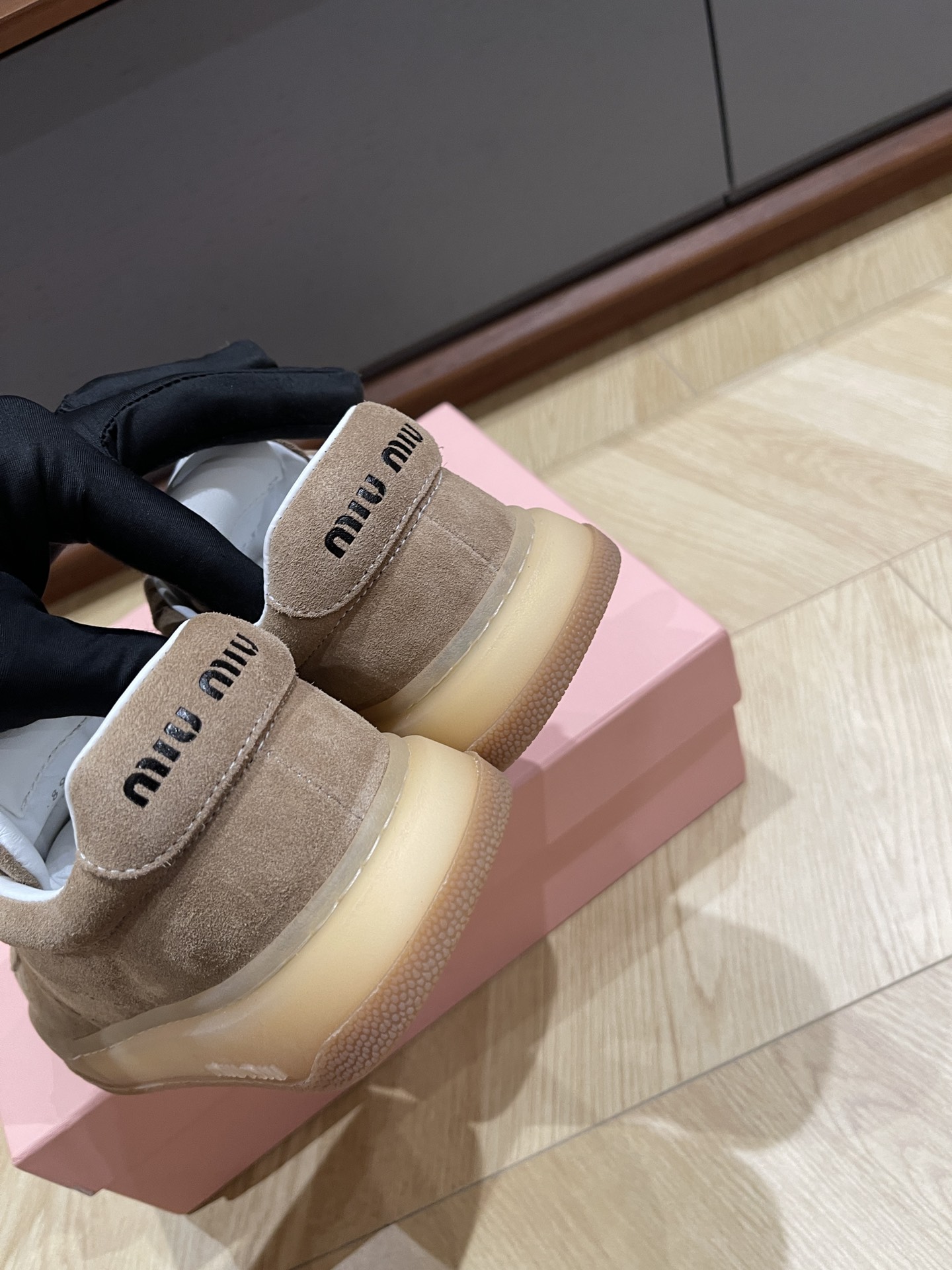 这款鞋子是AAAAA 1:1 质量 (非常棒). 使用了和原版一模一样的材料. 商标部分也保持了和缪缪/Miu Miu一样. 图片拍摄是实物鞋子拍摄, 您所收到的实物保证和我们图片一模一样.
