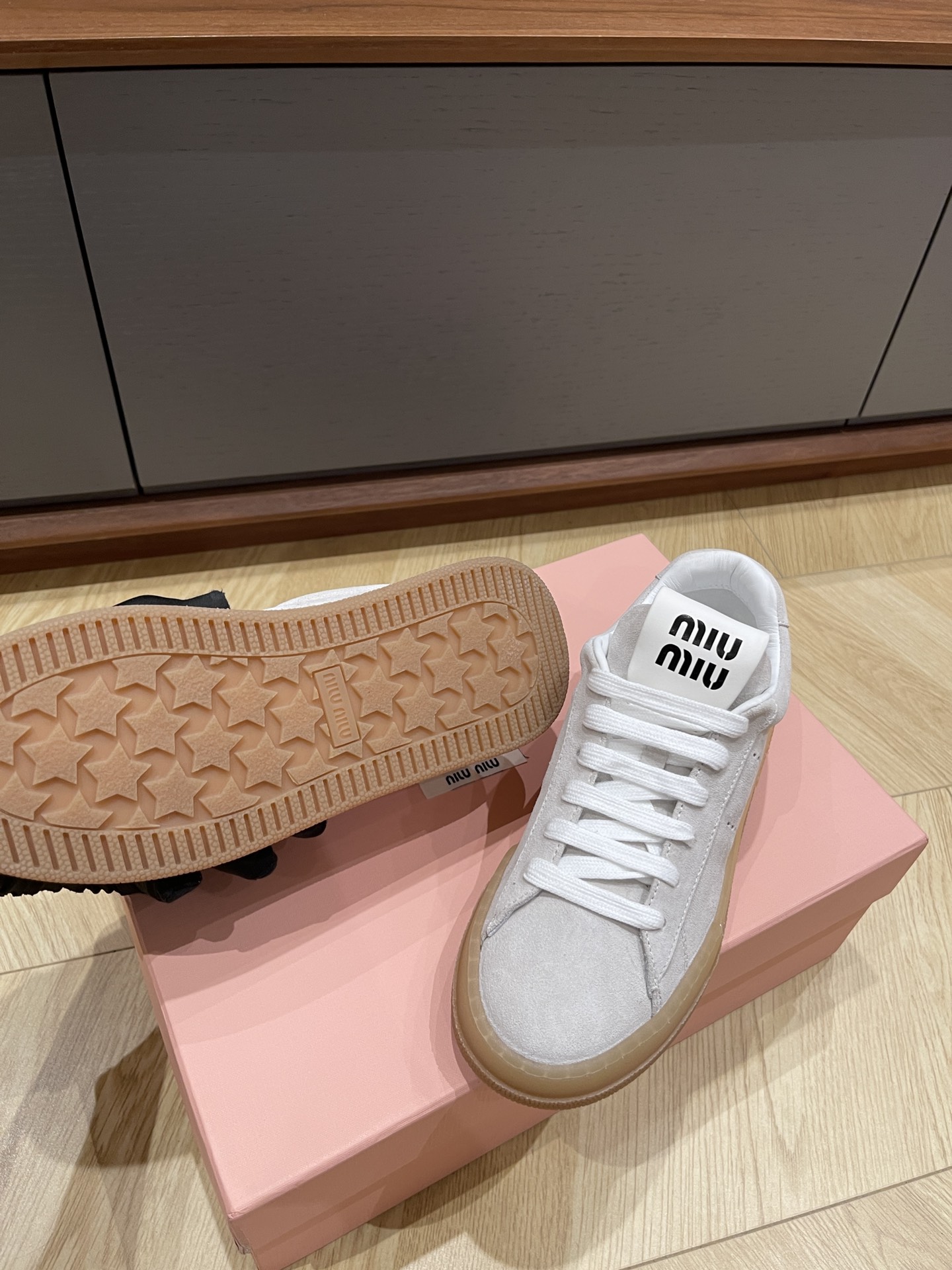 这款鞋子是AAAAA 1:1 质量 (非常棒). 使用了和原版一模一样的材料. 商标部分也保持了和缪缪/Miu Miu一样. 图片拍摄是实物鞋子拍摄, 您所收到的实物保证和我们图片一模一样.