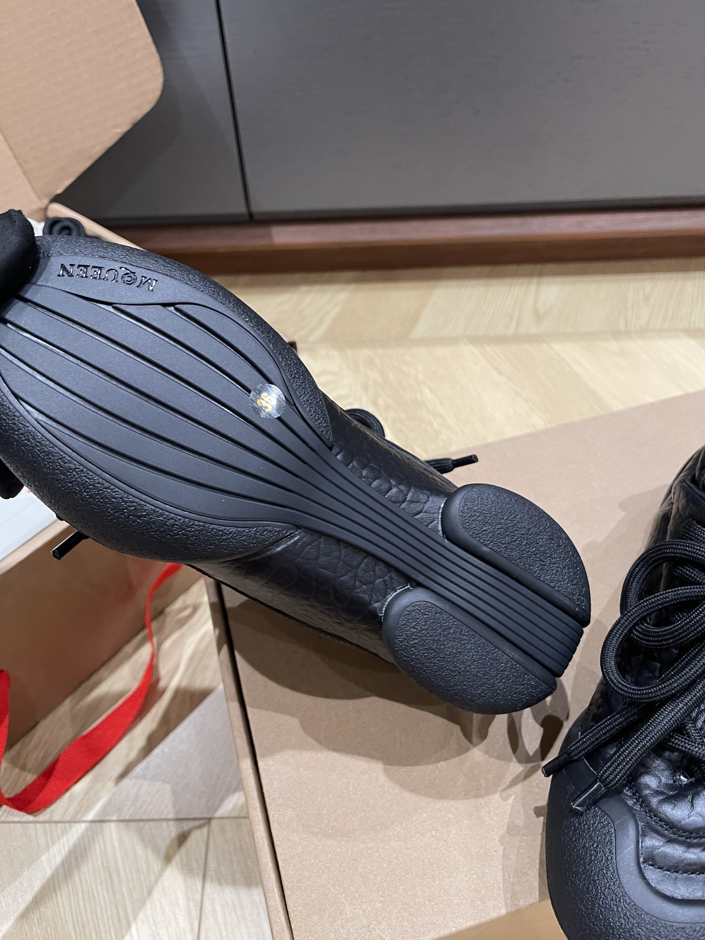 这款鞋子是AAAAA 1:1 质量 (非常棒). 使用了和原版一模一样的材料. 商标部分也保持了和亚历山大·麦昆/McQueen一样. 图片拍摄是实物鞋子拍摄, 您所收到的实物保证和我们图片一模一样.