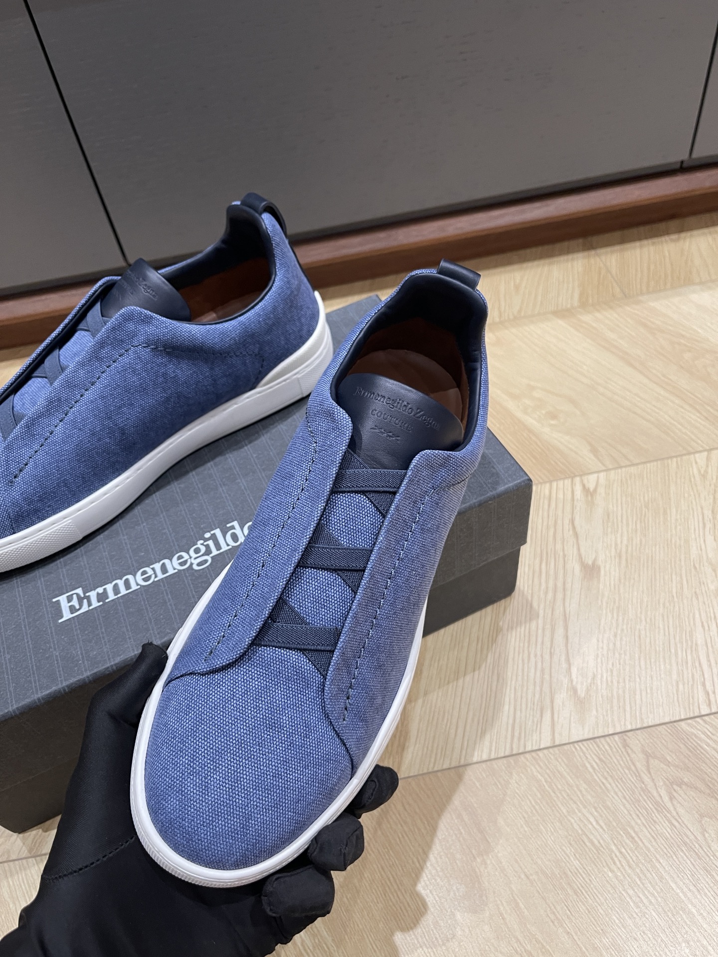 这款鞋子是AAAAA 1:1 质量 (非常棒). 使用了和原版一模一样的材料. 商标部分也保持了和杰尼亚/Zegna一样. 图片拍摄是实物鞋子拍摄, 您所收到的实物保证和我们图片一模一样.