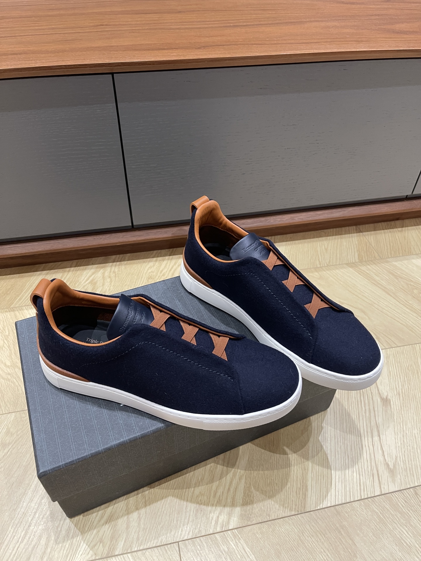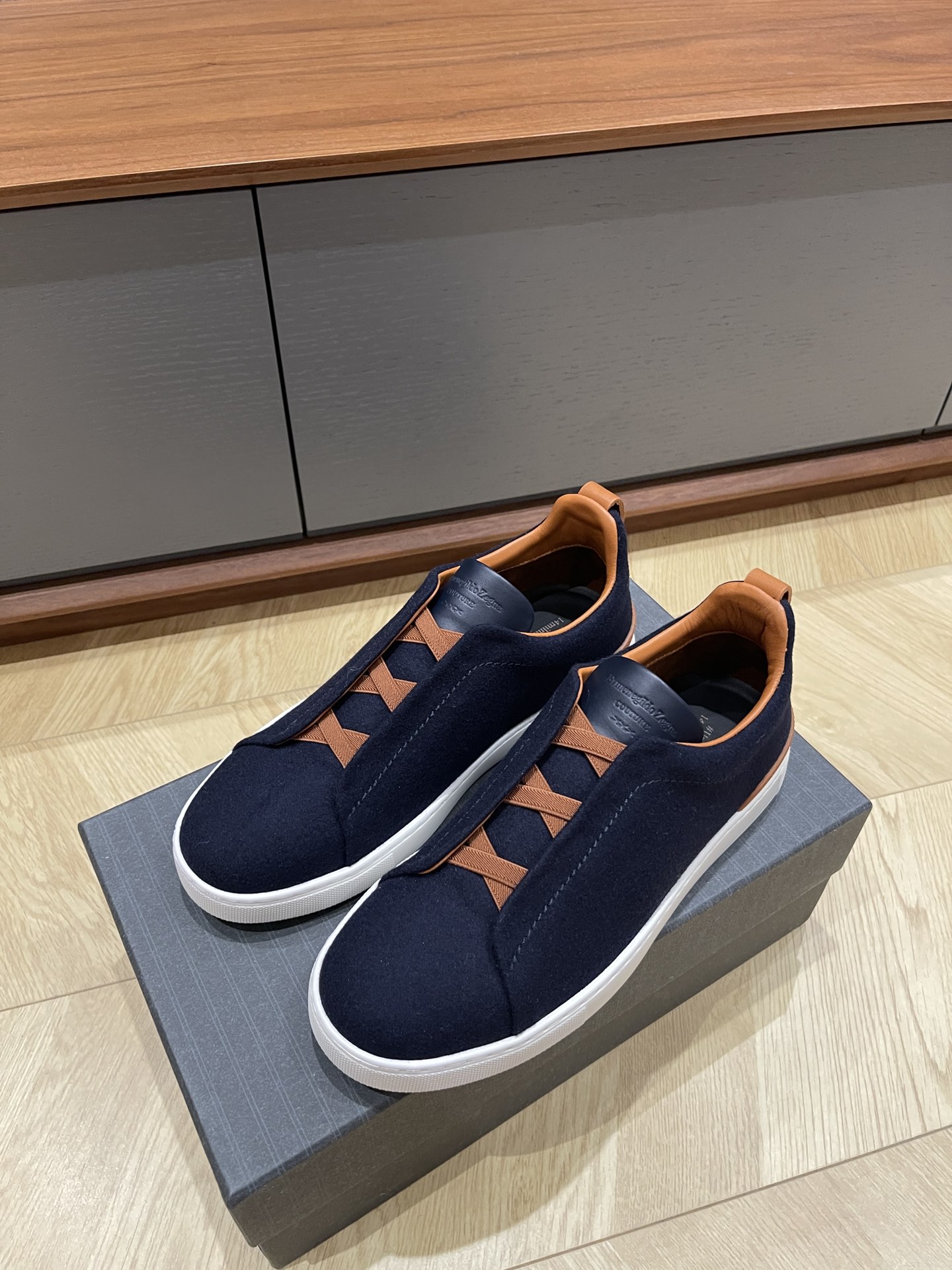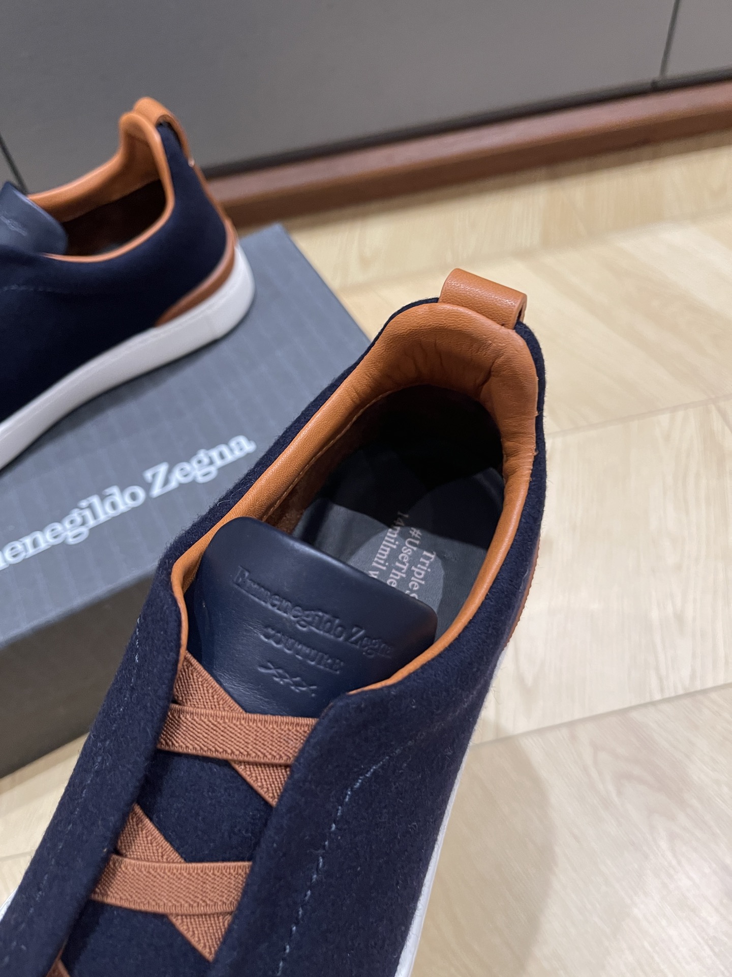 这款鞋子是AAAAA 1:1 质量 (非常棒). 使用了和原版一模一样的材料. 商标部分也保持了和杰尼亚/Zegna一样. 图片拍摄是实物鞋子拍摄, 您所收到的实物保证和我们图片一模一样.