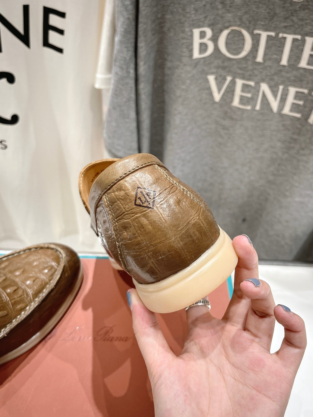 这款鞋子是AAAAA 1:1 质量 (非常棒). 使用了和原版一模一样的材料. 商标部分也保持了和洛罗皮亚纳/Loro Piana一样. 图片拍摄是实物鞋子拍摄, 您所收到的实物保证和我们图片一模一样.