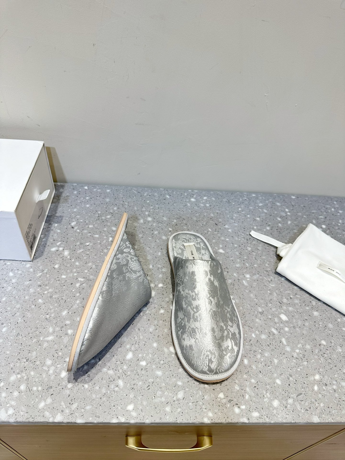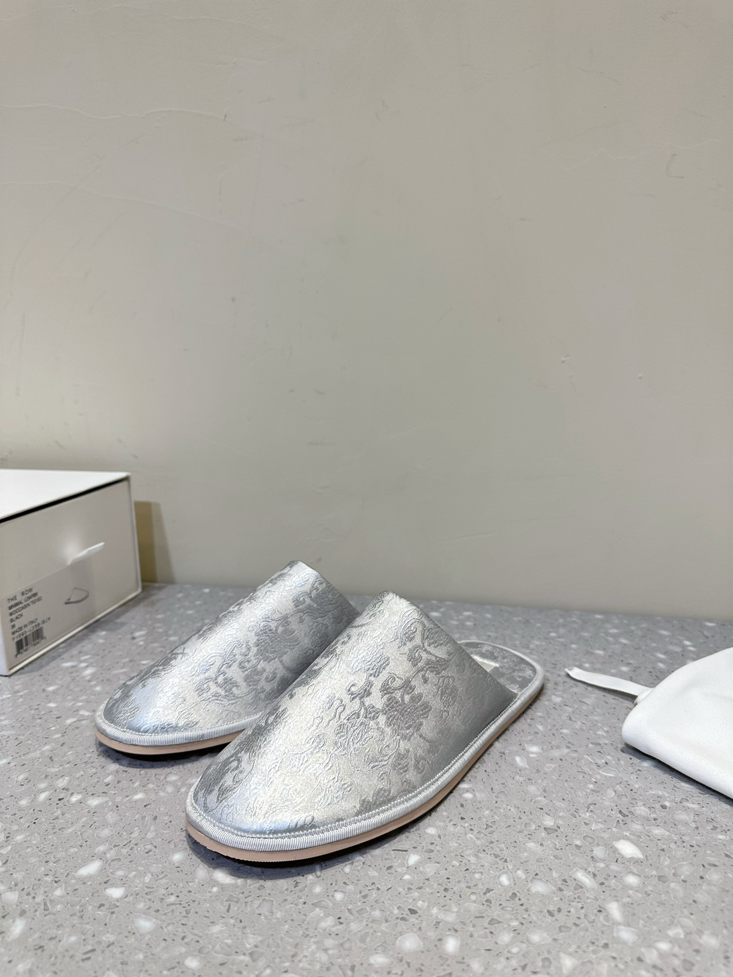 这款鞋子是AAAAA 1:1 质量 (非常棒). 使用了和原版一模一样的材料. 商标部分也保持了和The Row一样. 图片拍摄是实物鞋子拍摄, 您所收到的实物保证和我们图片一模一样.