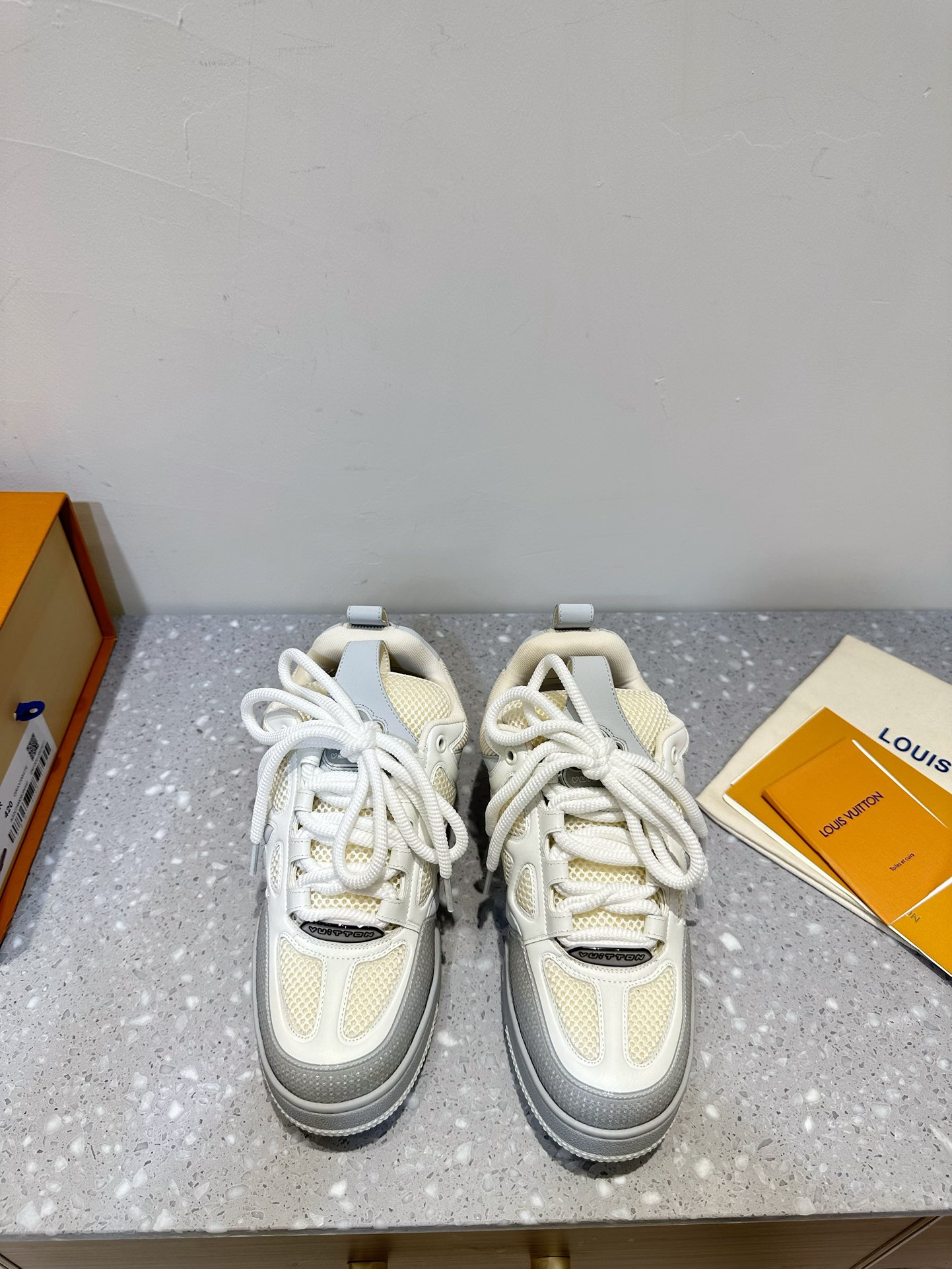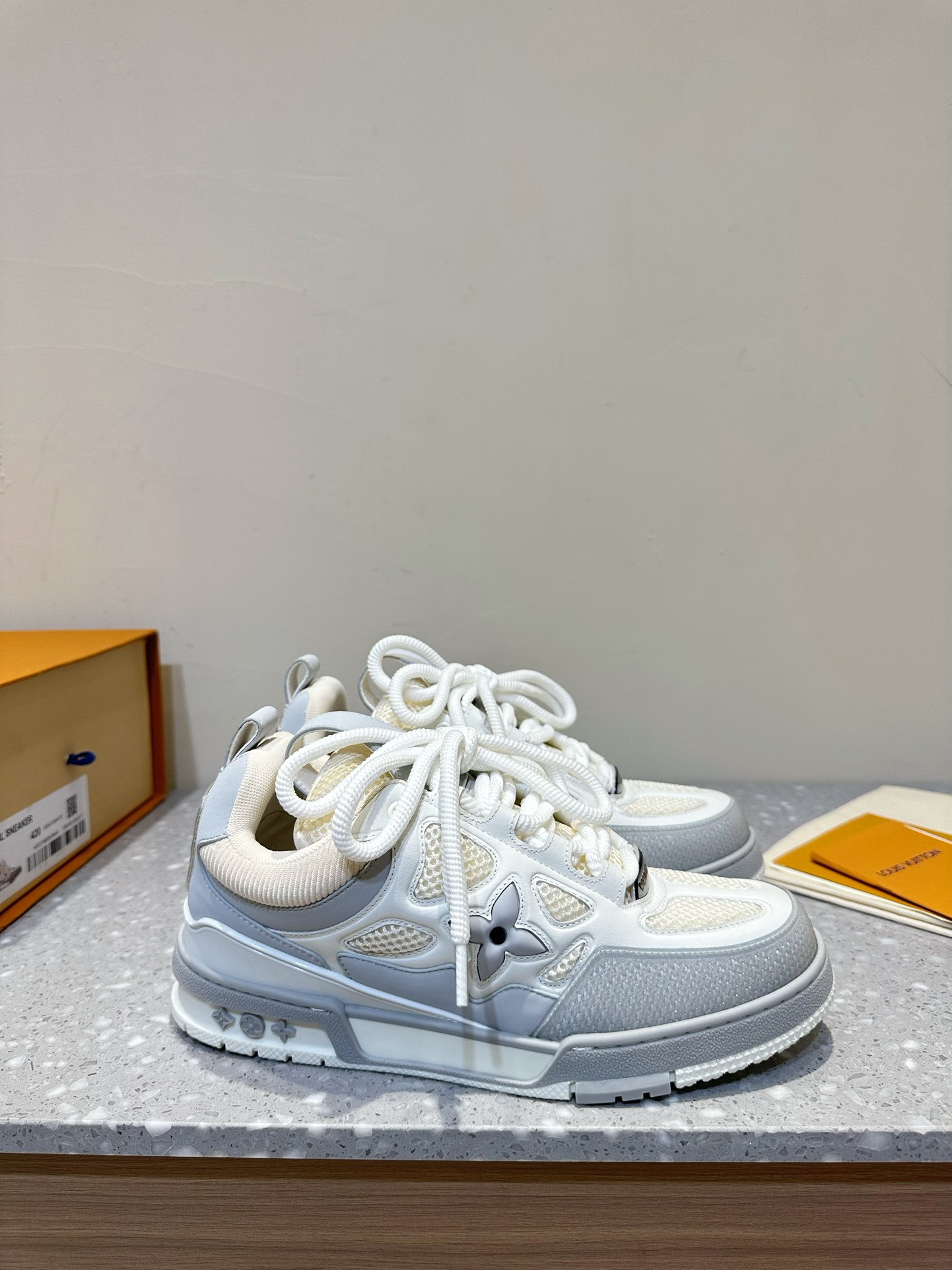 这款鞋子是AAAAA 1:1 质量 (非常棒). 使用了和原版一模一样的材料. 商标部分也保持了和路易威登/Louis Vuitton一样. 图片拍摄是实物鞋子拍摄, 您所收到的实物保证和我们图片一模一样.