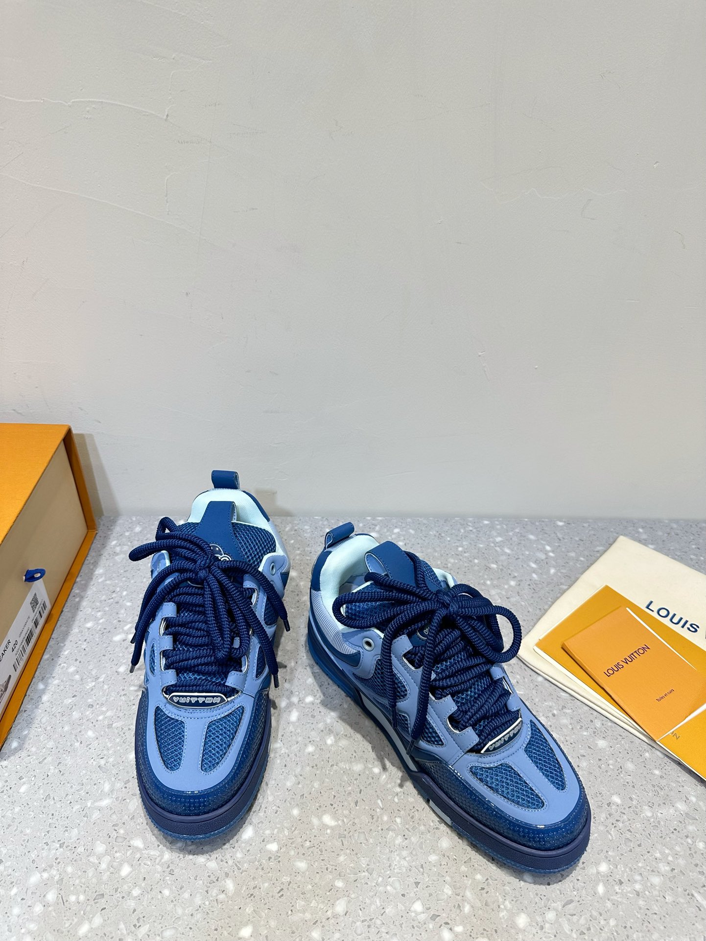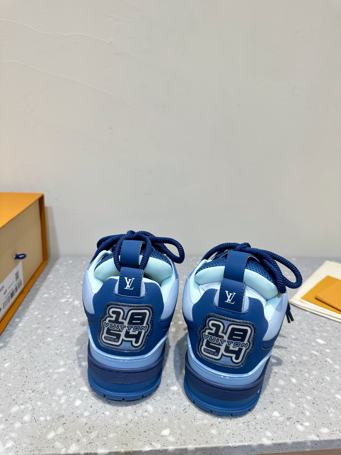 这款鞋子是AAAAA 1:1 质量 (非常棒). 使用了和原版一模一样的材料. 商标部分也保持了和路易威登/Louis Vuitton一样. 图片拍摄是实物鞋子拍摄, 您所收到的实物保证和我们图片一模一样.