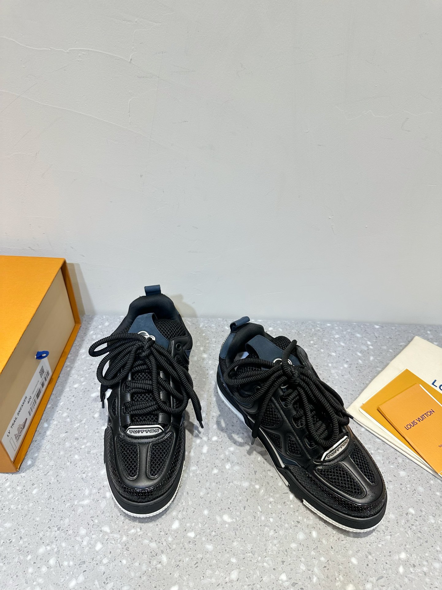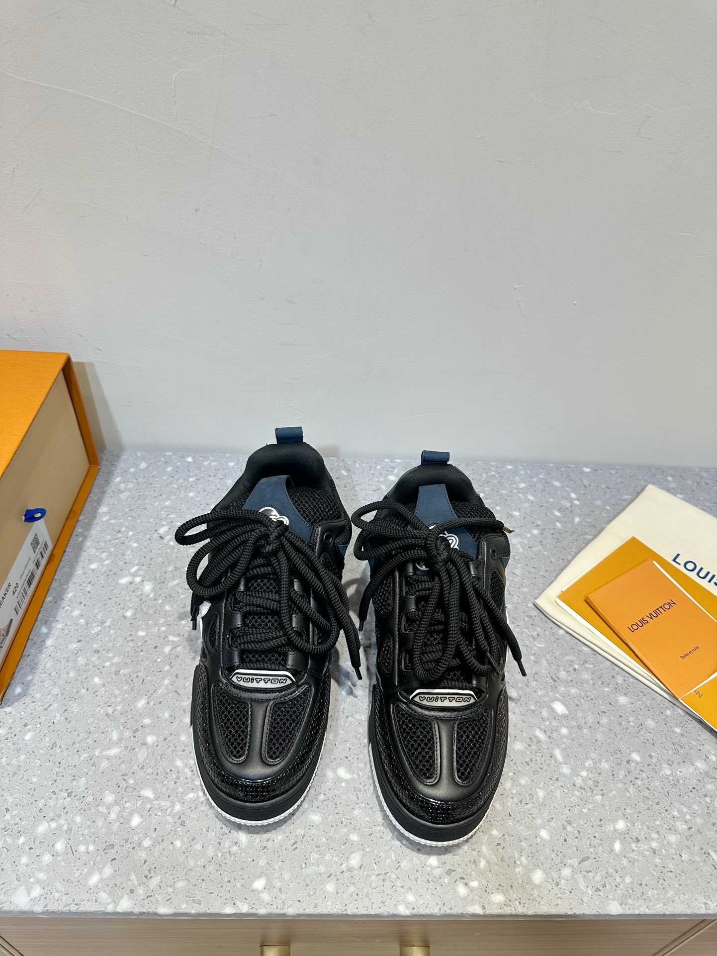 这款鞋子是AAAAA 1:1 质量 (非常棒). 使用了和原版一模一样的材料. 商标部分也保持了和路易威登/Louis Vuitton一样. 图片拍摄是实物鞋子拍摄, 您所收到的实物保证和我们图片一模一样.