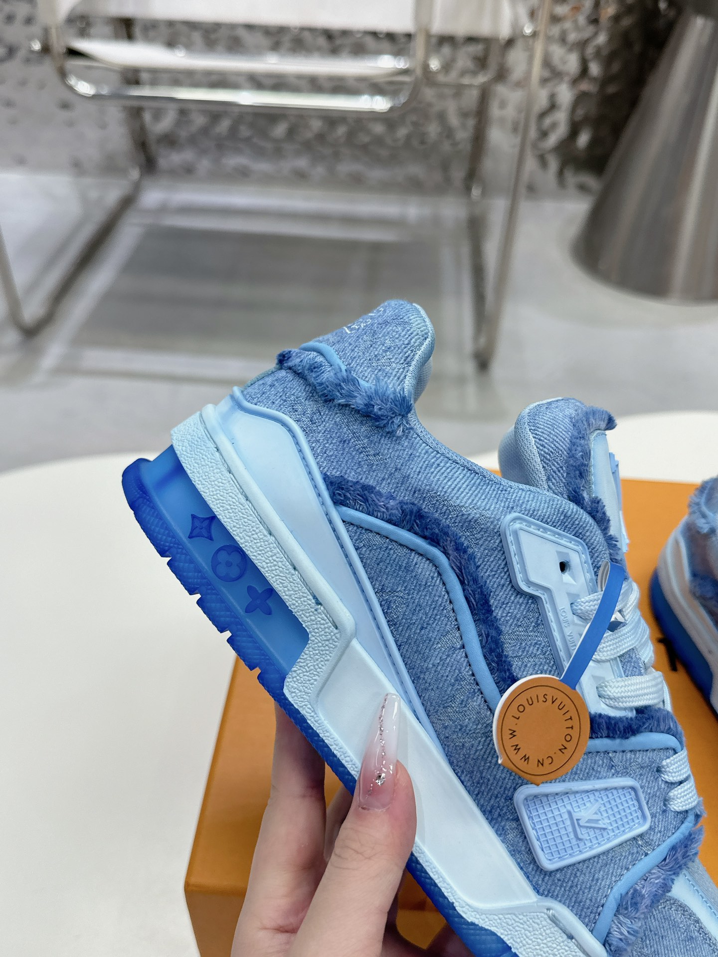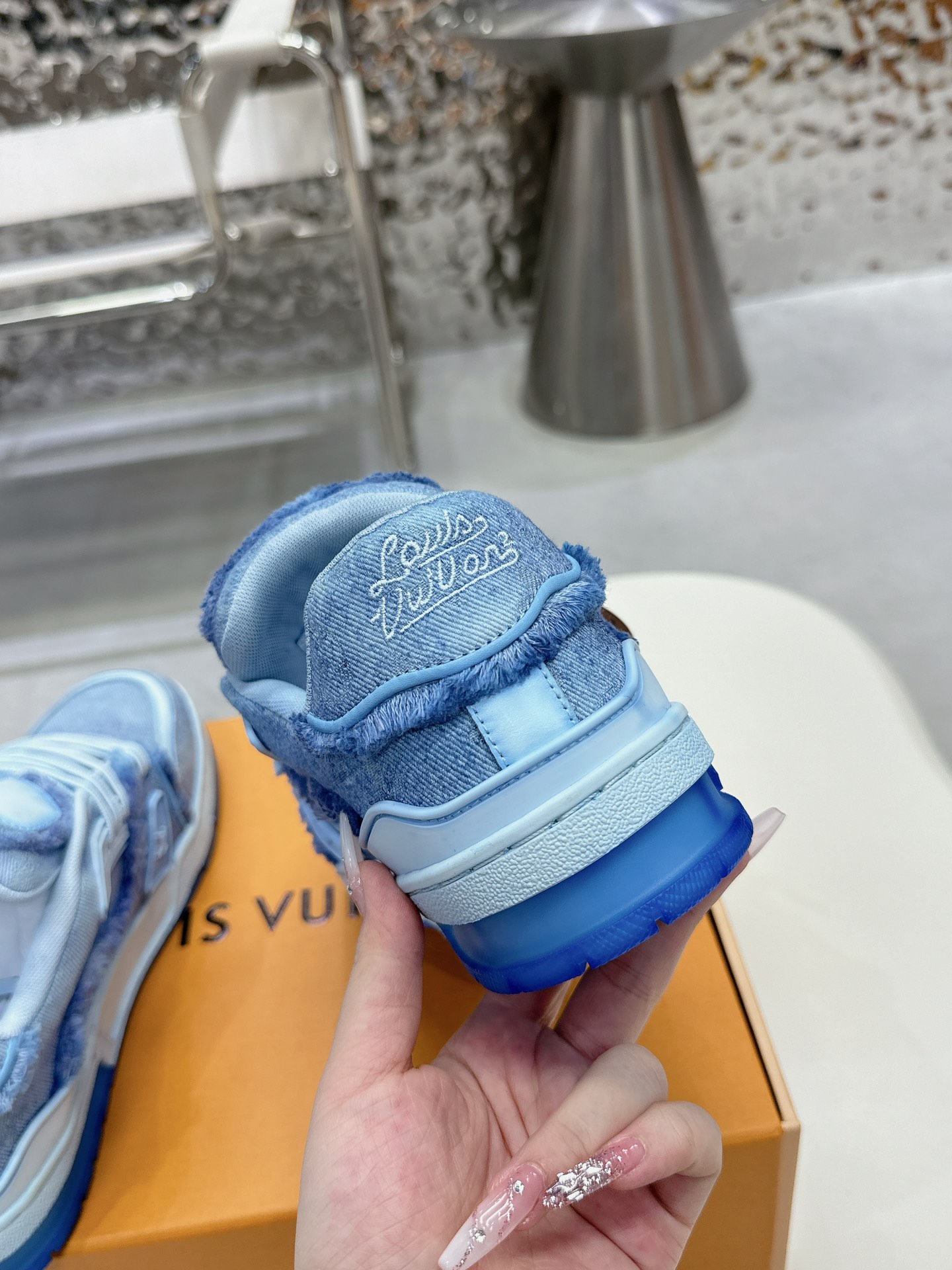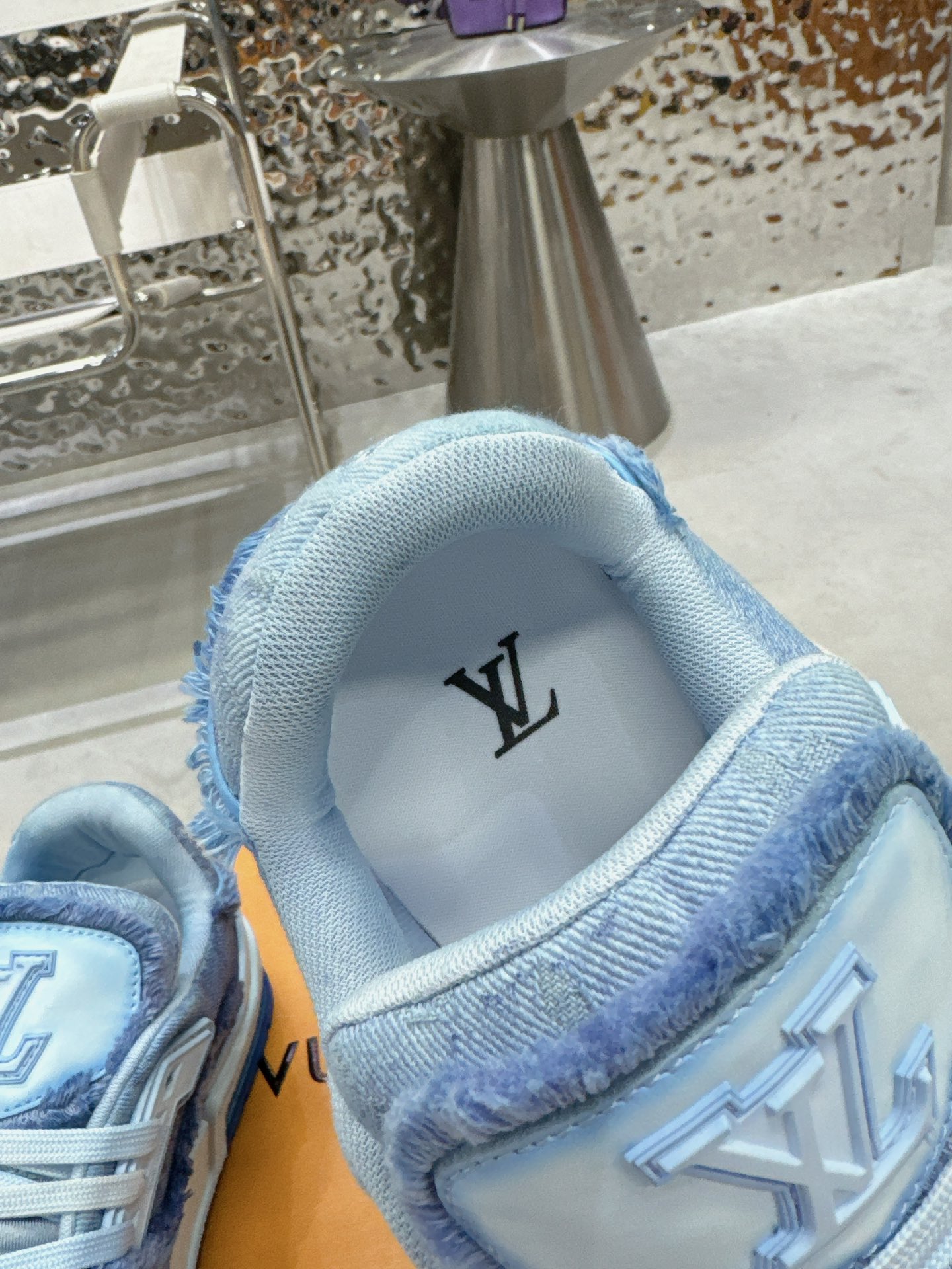 这款鞋子是AAAAA 1:1 质量 (非常棒). 使用了和原版一模一样的材料. 商标部分也保持了和路易威登/Louis Vuitton一样. 图片拍摄是实物鞋子拍摄, 您所收到的实物保证和我们图片一模一样.