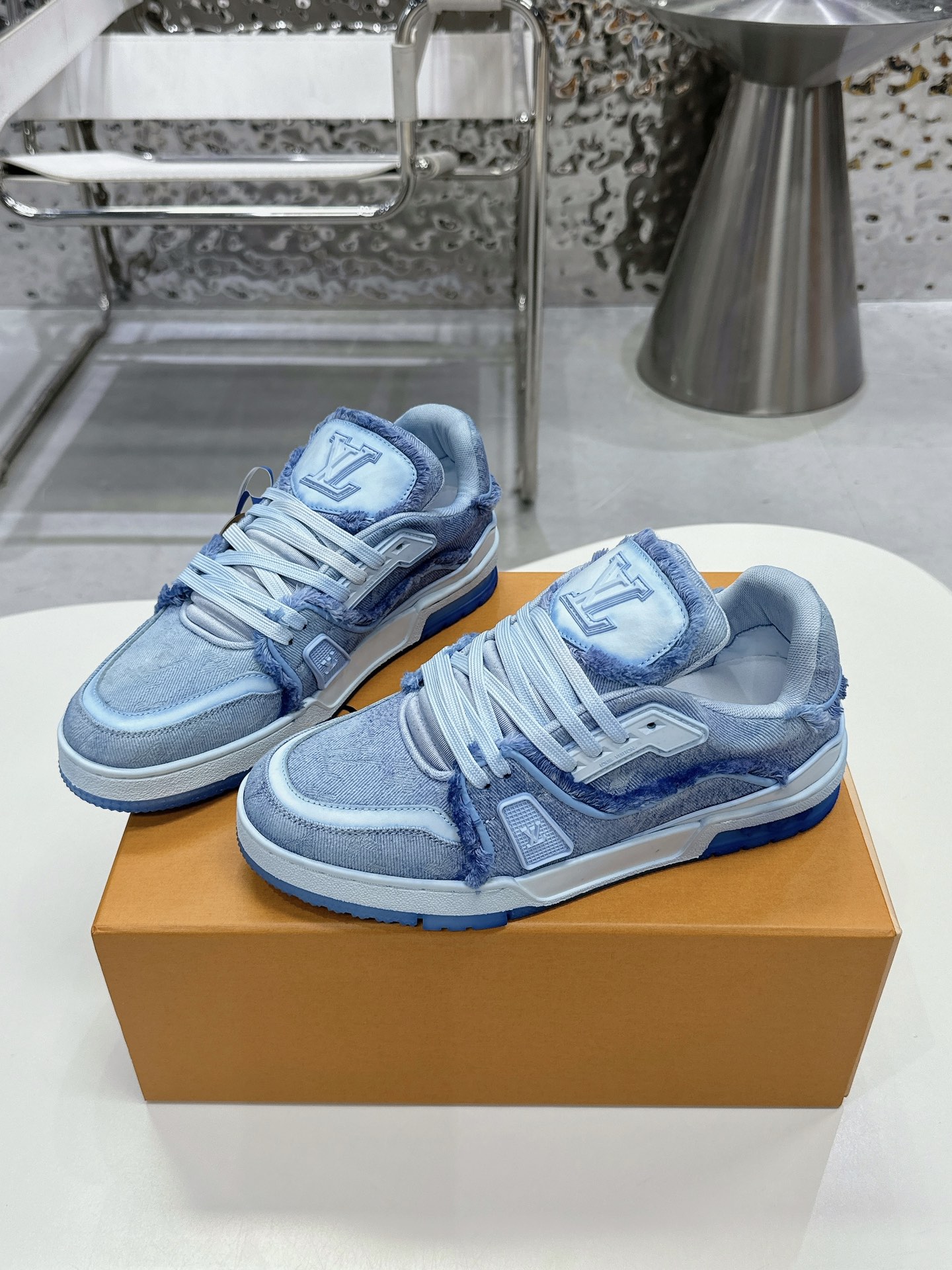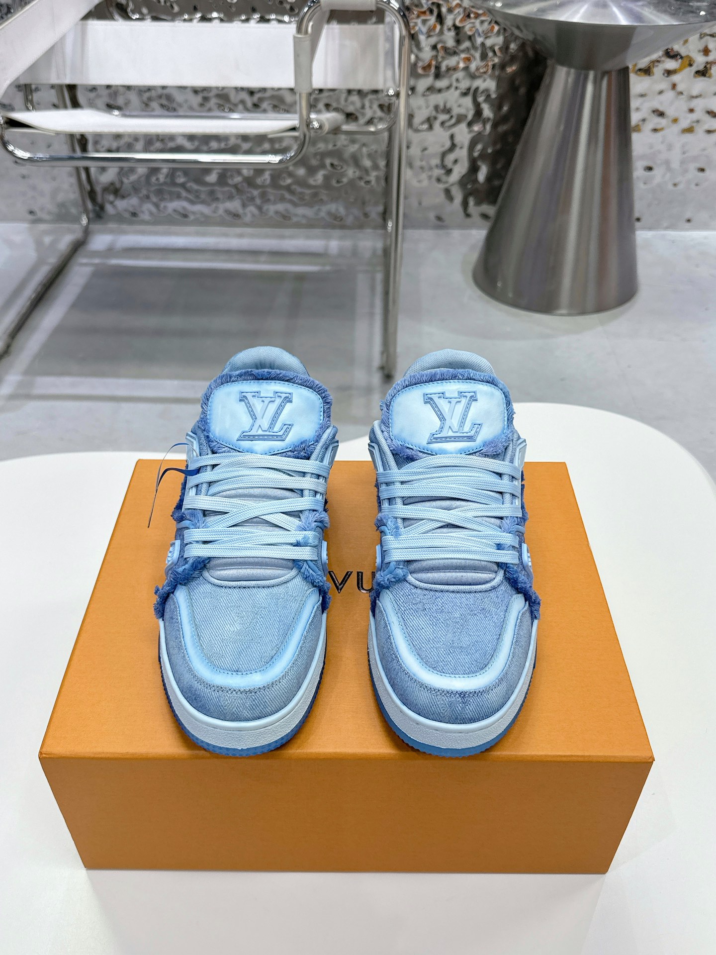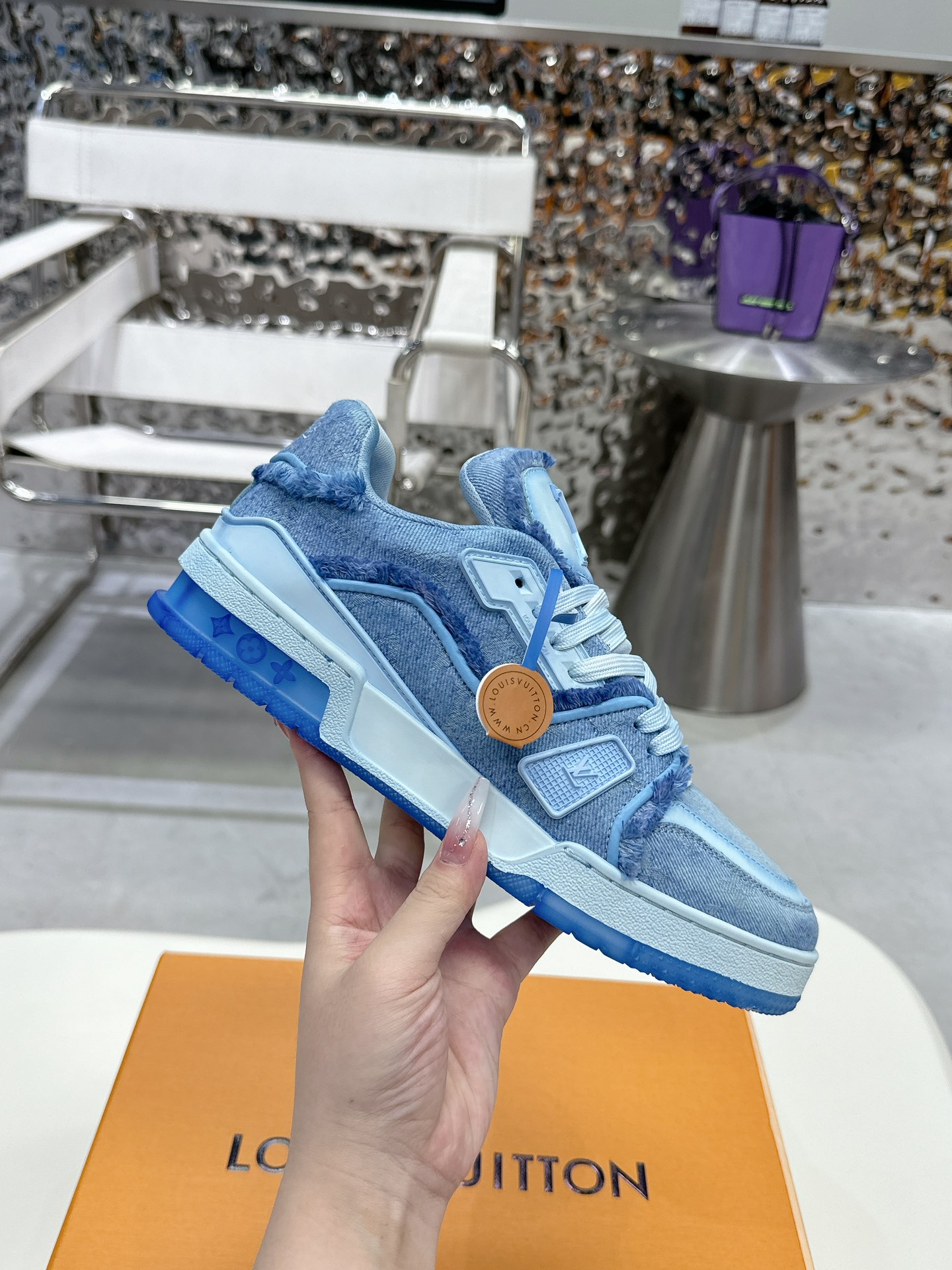 这款鞋子是AAAAA 1:1 质量 (非常棒). 使用了和原版一模一样的材料. 商标部分也保持了和路易威登/Louis Vuitton一样. 图片拍摄是实物鞋子拍摄, 您所收到的实物保证和我们图片一模一样.
