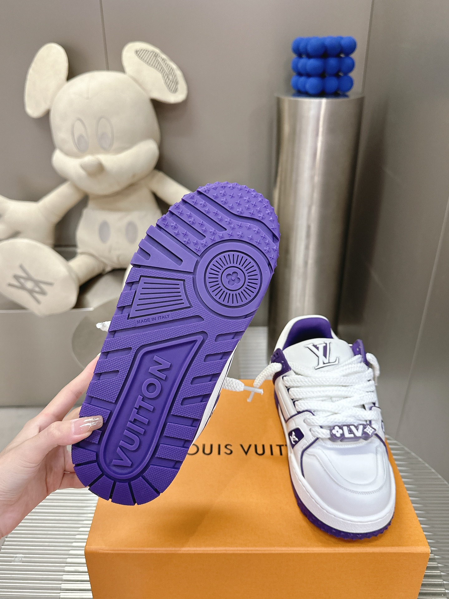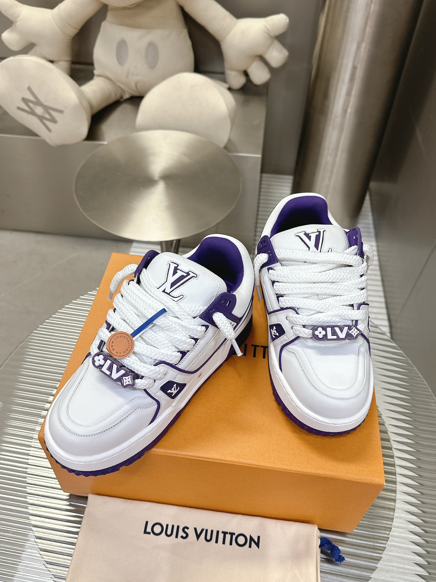 这款鞋子是AAAAA 1:1 质量 (非常棒). 使用了和原版一模一样的材料. 商标部分也保持了和路易威登/Louis Vuitton一样. 图片拍摄是实物鞋子拍摄, 您所收到的实物保证和我们图片一模一样.