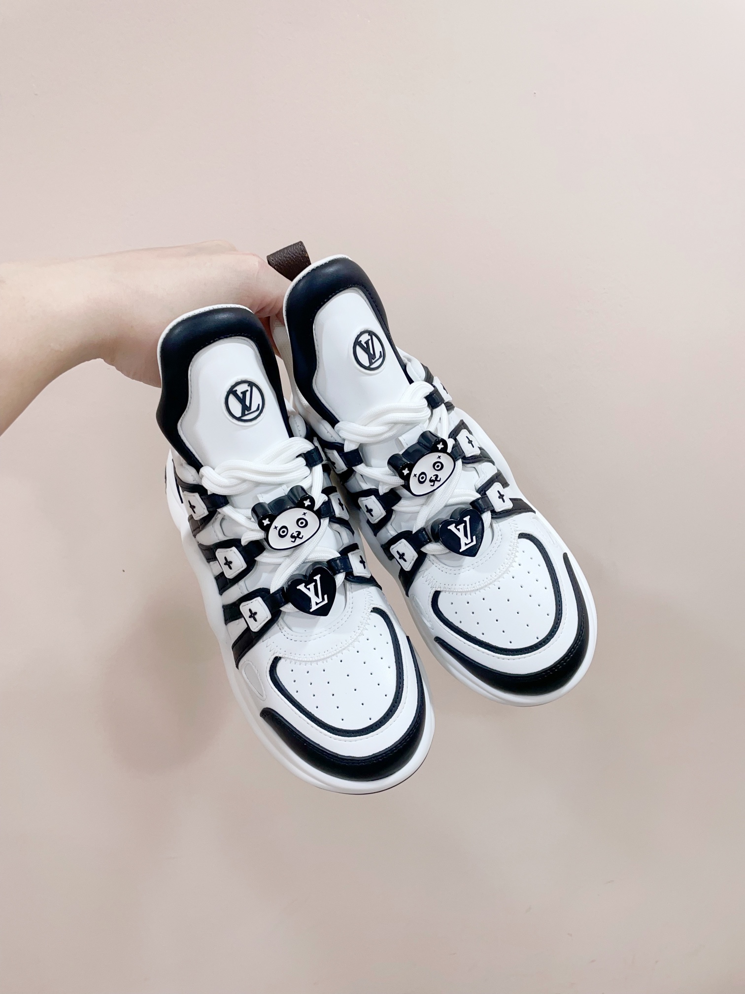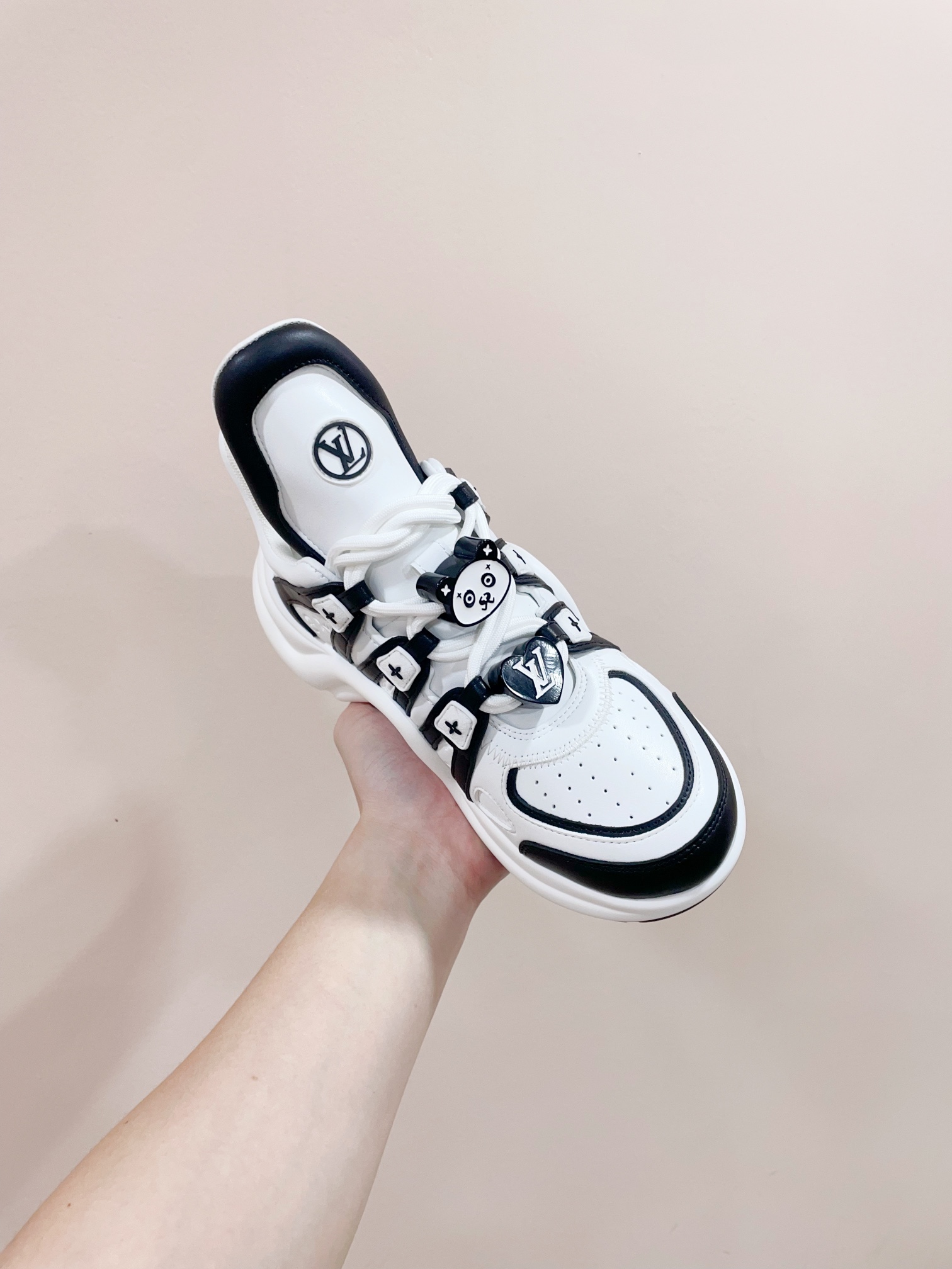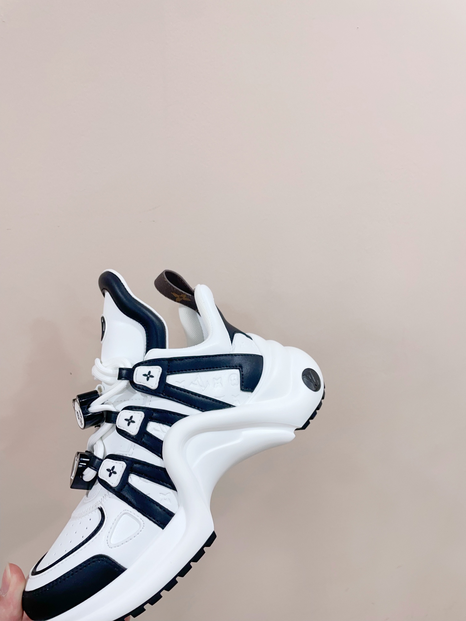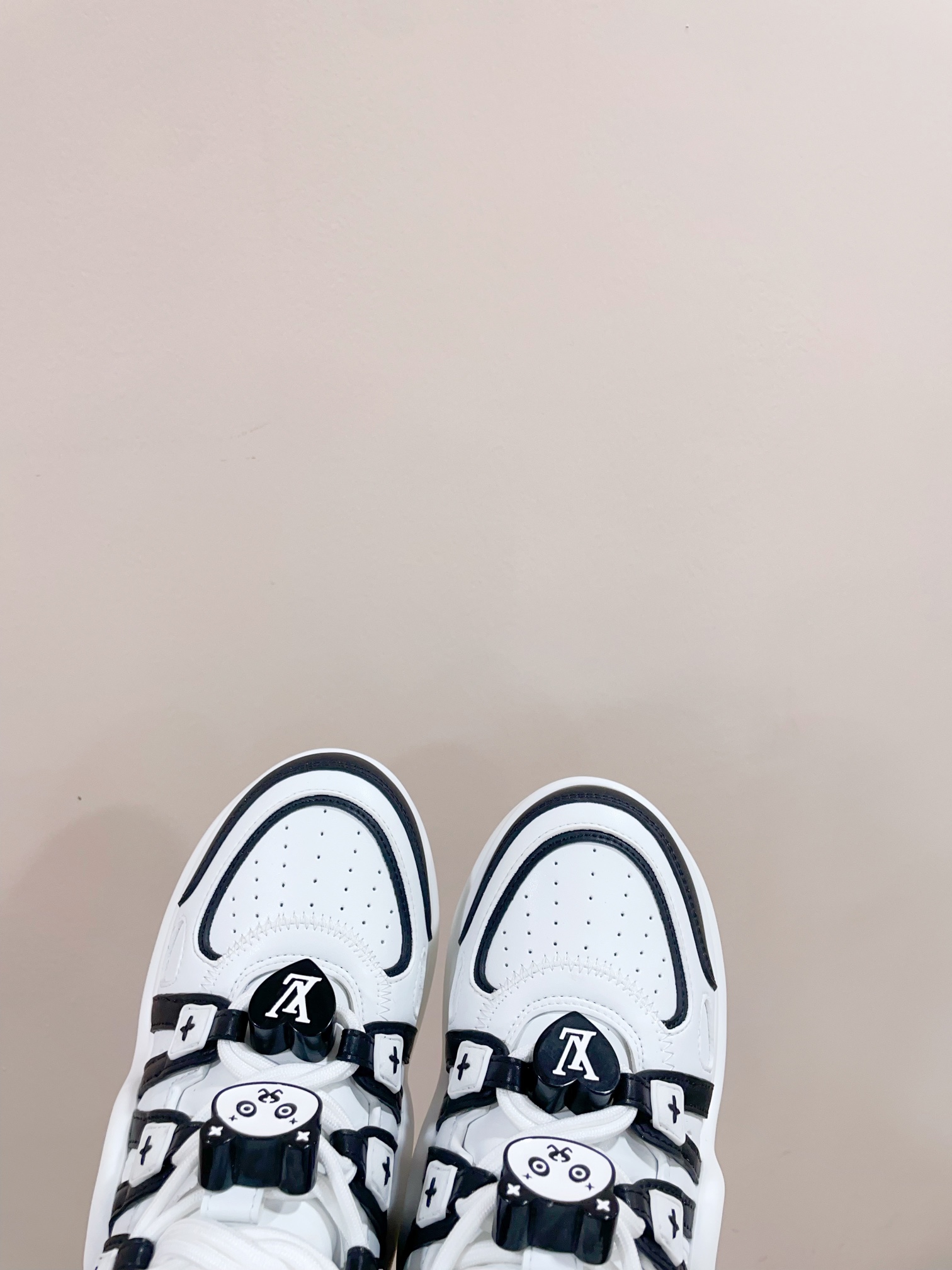 这款鞋子是AAAAA 1:1 质量 (非常棒). 使用了和原版一模一样的材料. 商标部分也保持了和路易威登/Louis Vuitton一样. 图片拍摄是实物鞋子拍摄, 您所收到的实物保证和我们图片一模一样.