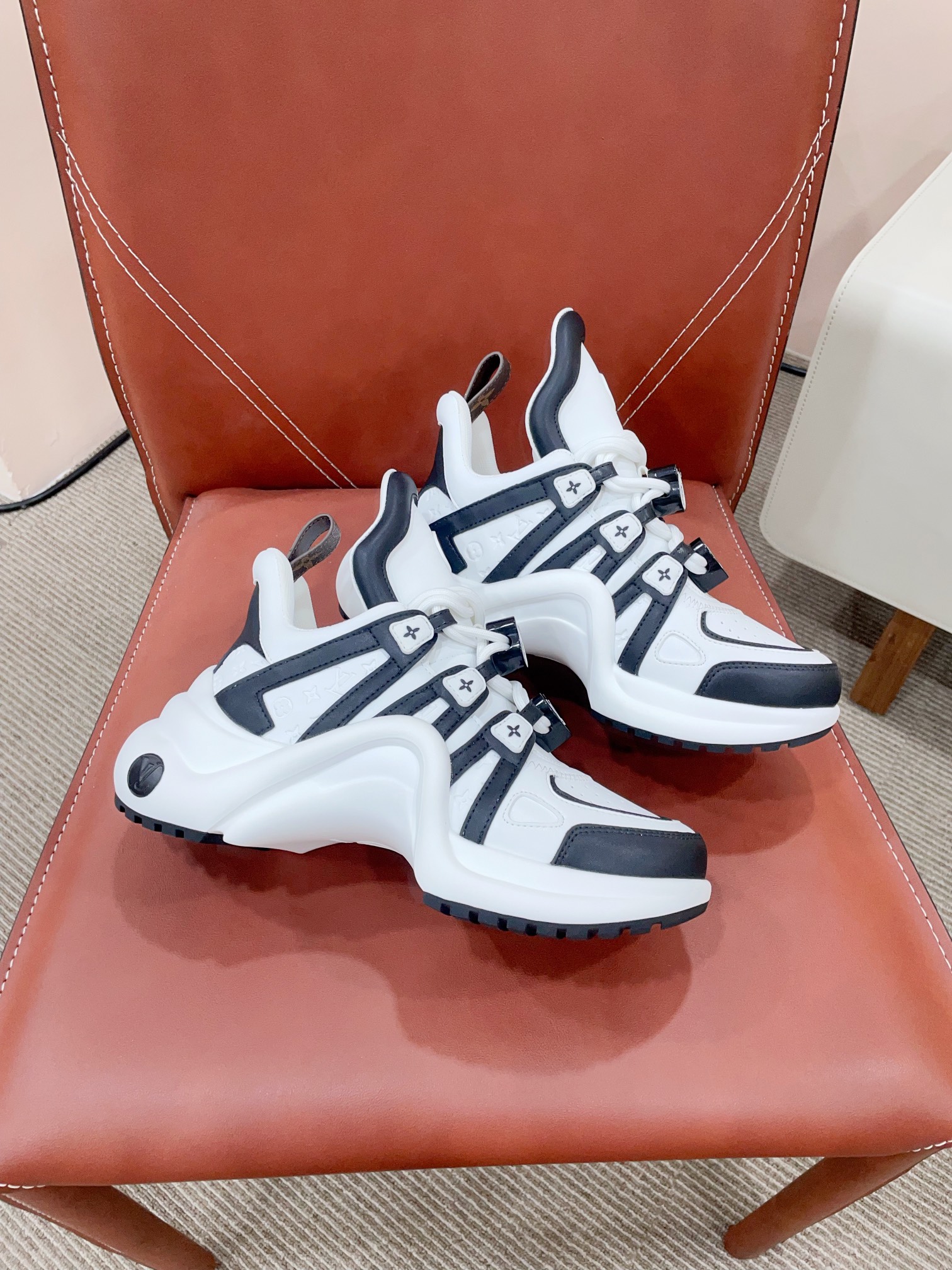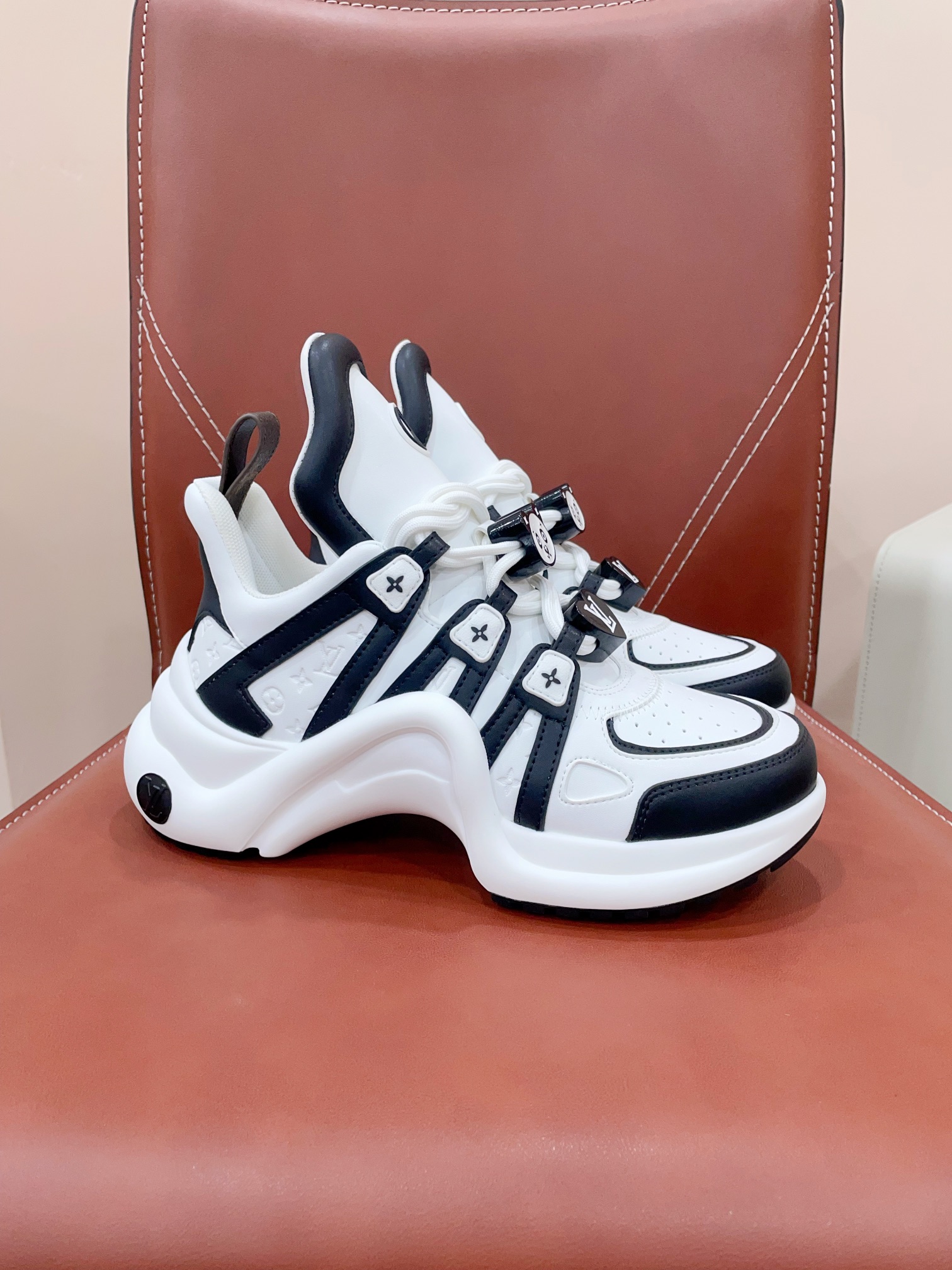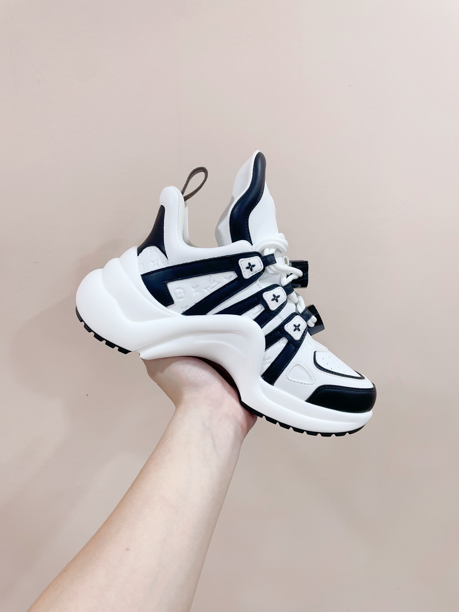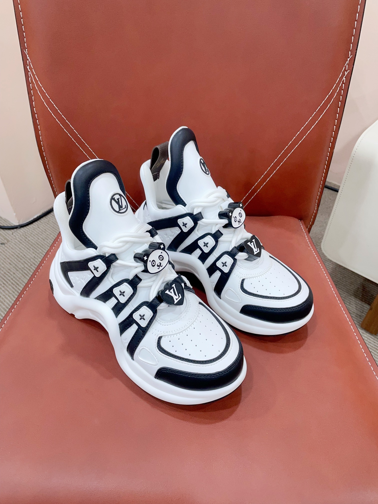 这款鞋子是AAAAA 1:1 质量 (非常棒). 使用了和原版一模一样的材料. 商标部分也保持了和路易威登/Louis Vuitton一样. 图片拍摄是实物鞋子拍摄, 您所收到的实物保证和我们图片一模一样.