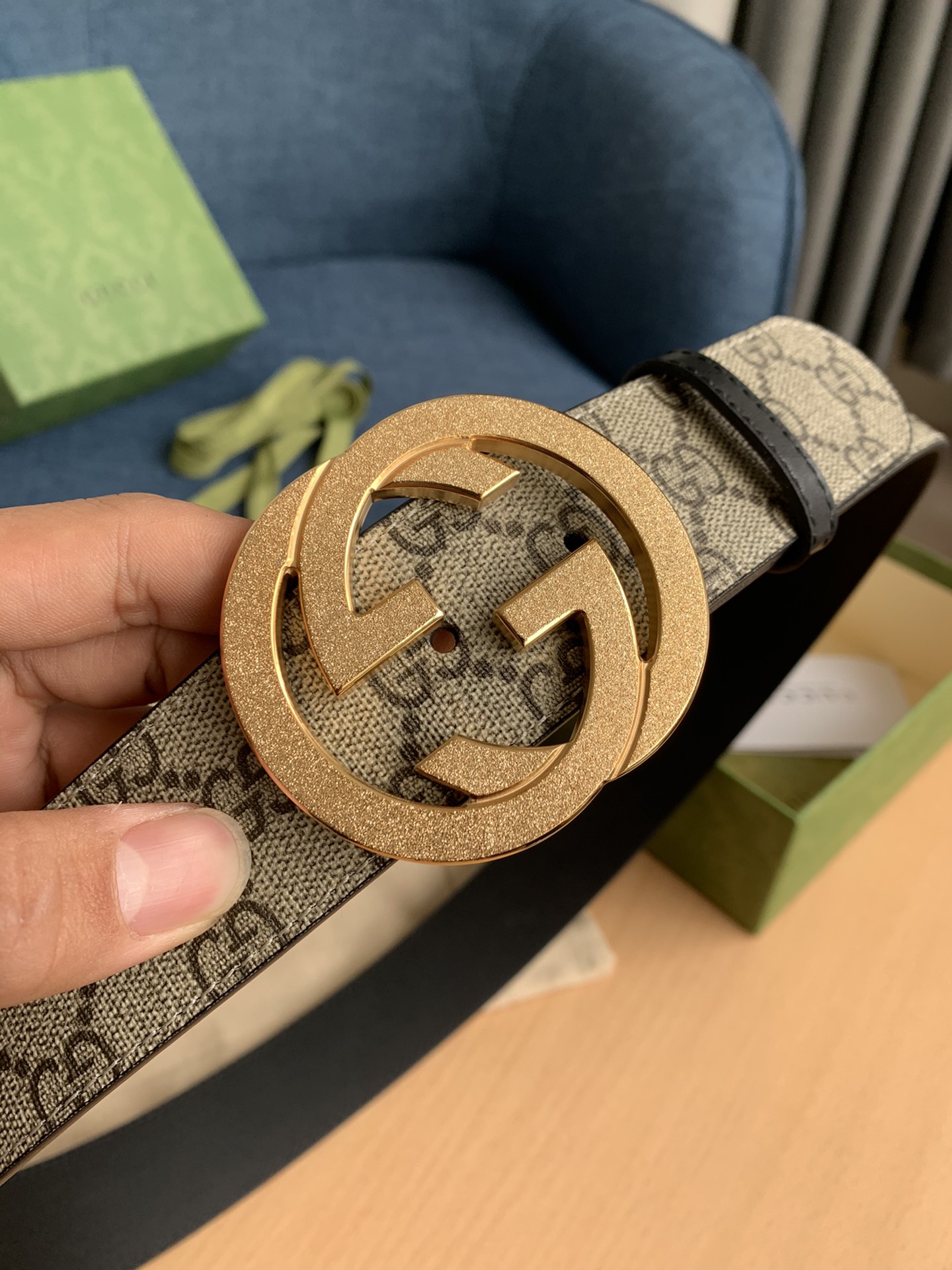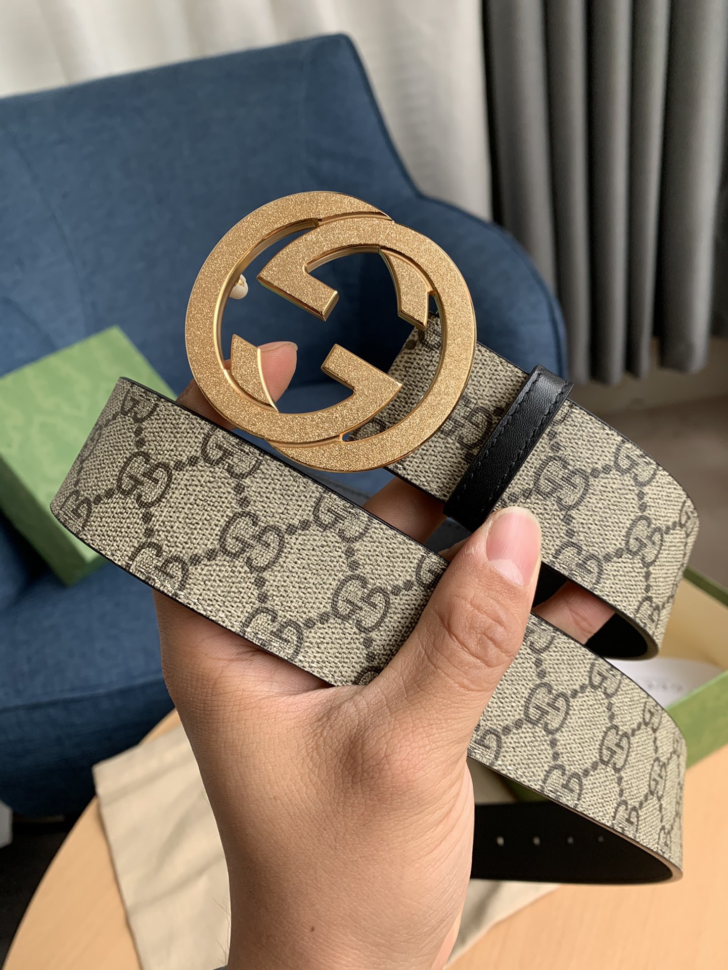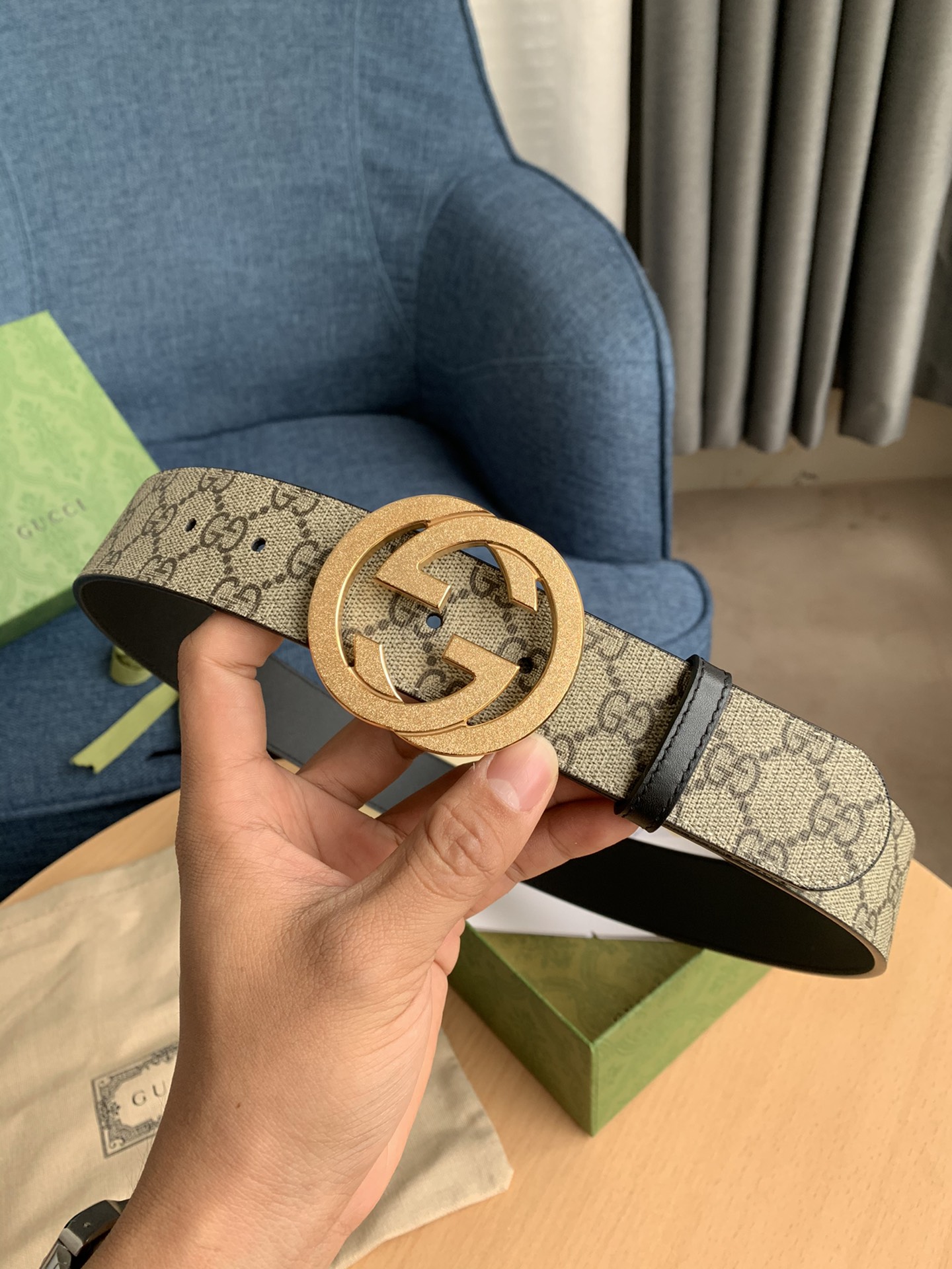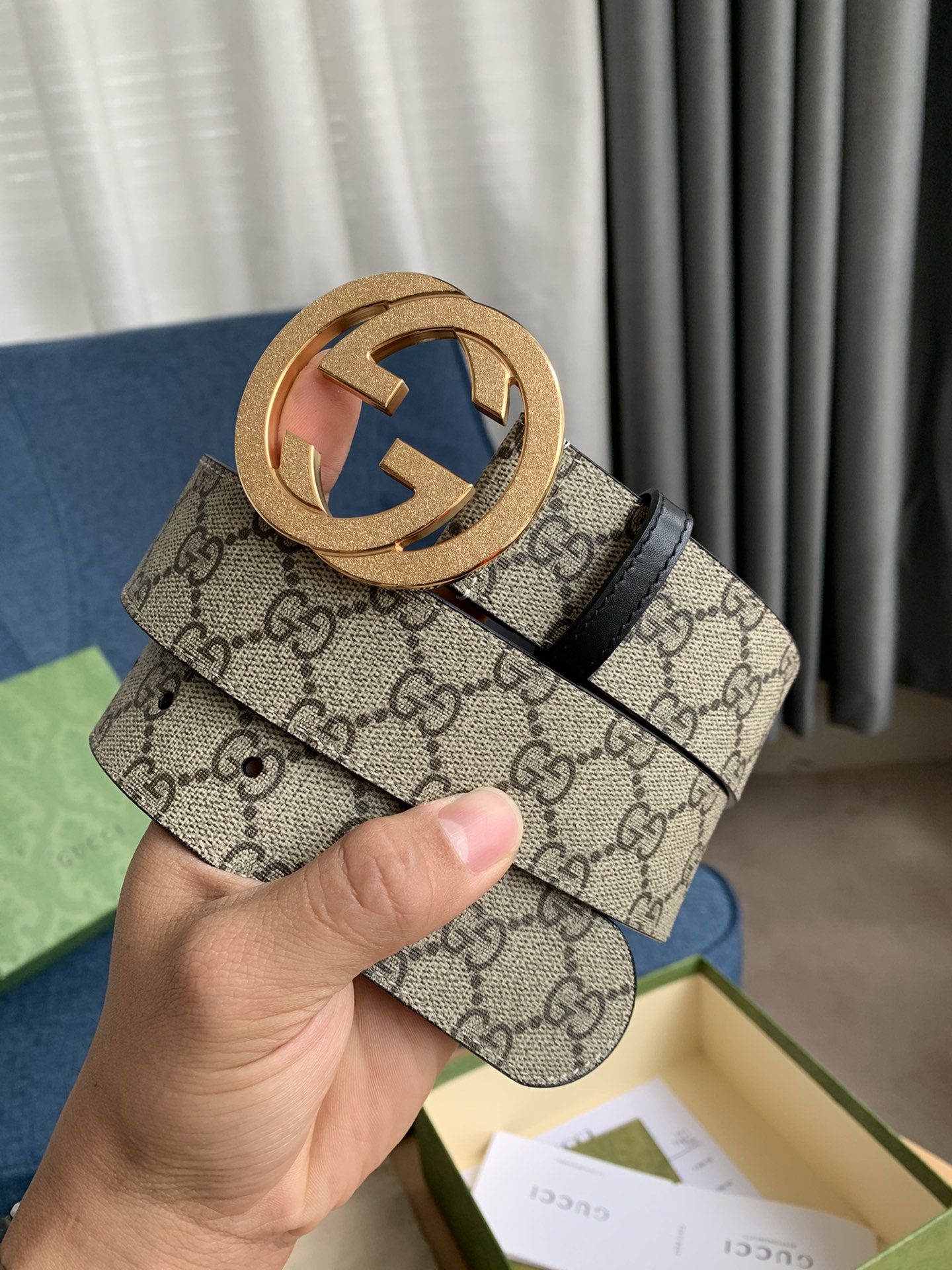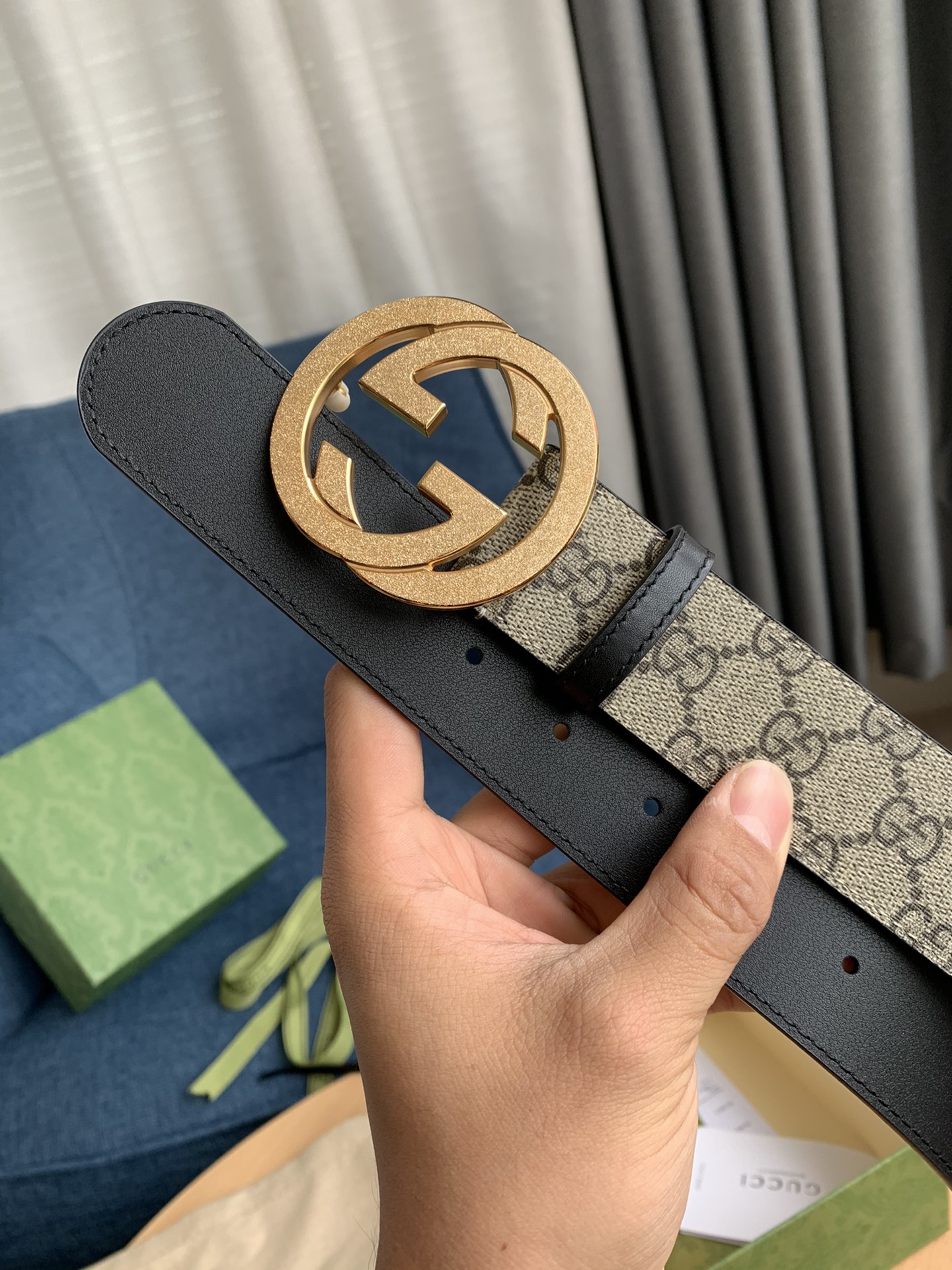 这款皮带是AAAAA 1:1 质量 (非常棒). 使用了和原版一模一样的材料. 商标部分也保持了和古奇/Gucci一样. 图片拍摄是实物皮带拍摄, 您所收到的实物保证和我们图片一模一样.