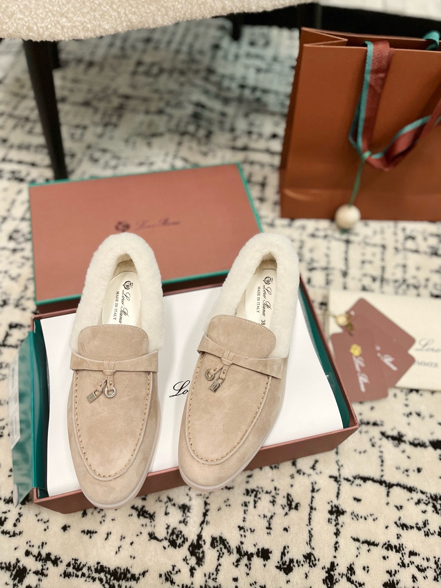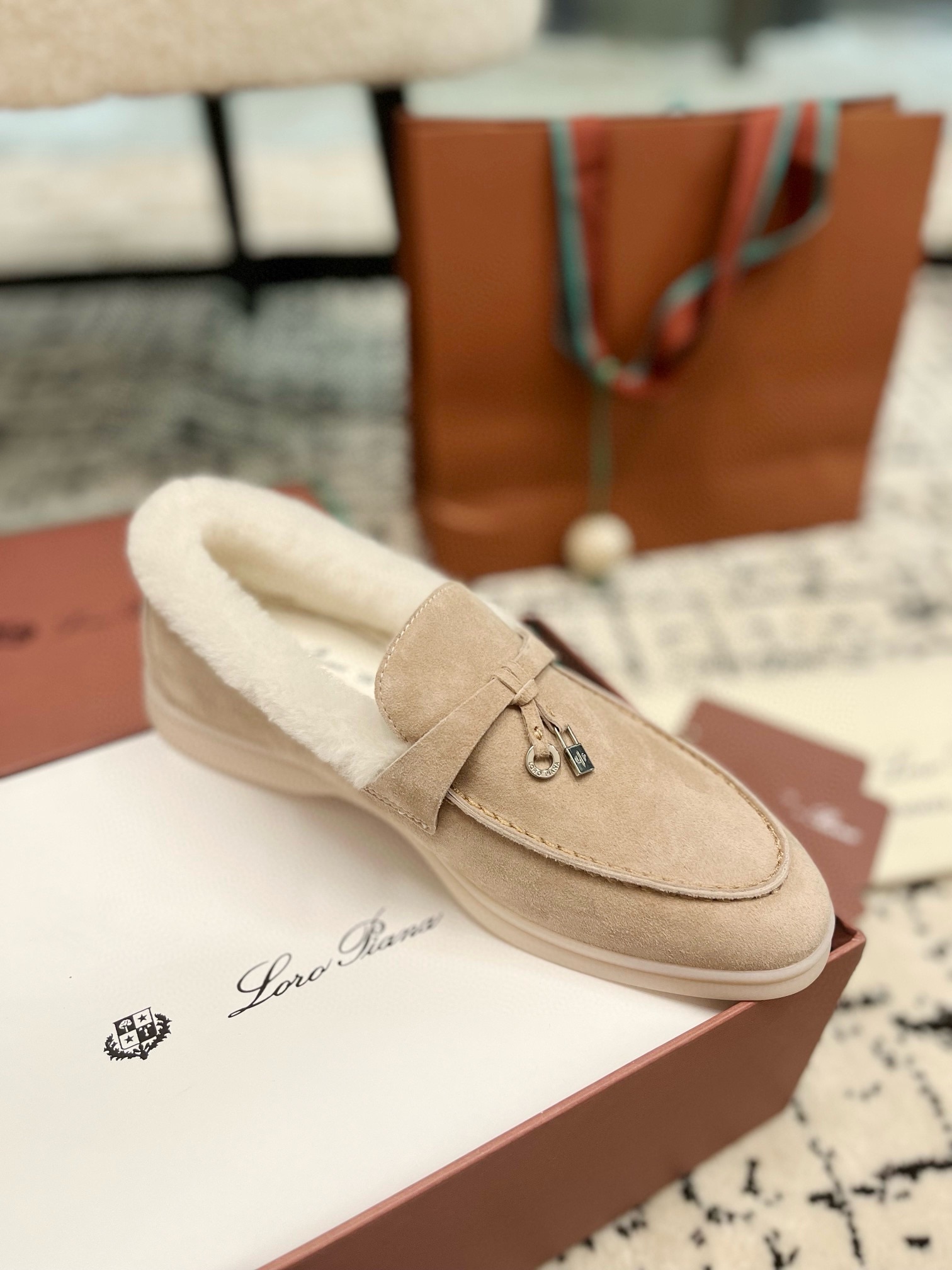 这款鞋子是AAAAA 1:1 质量 (非常棒). 使用了和原版一模一样的材料. 商标部分也保持了和洛罗皮亚纳/Loro Piana一样. 图片拍摄是实物鞋子拍摄, 您所收到的实物保证和我们图片一模一样.