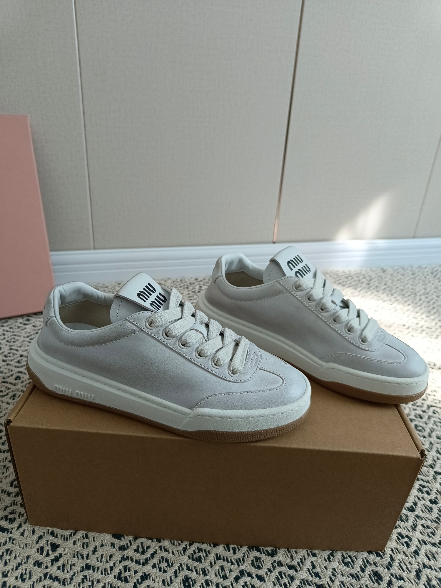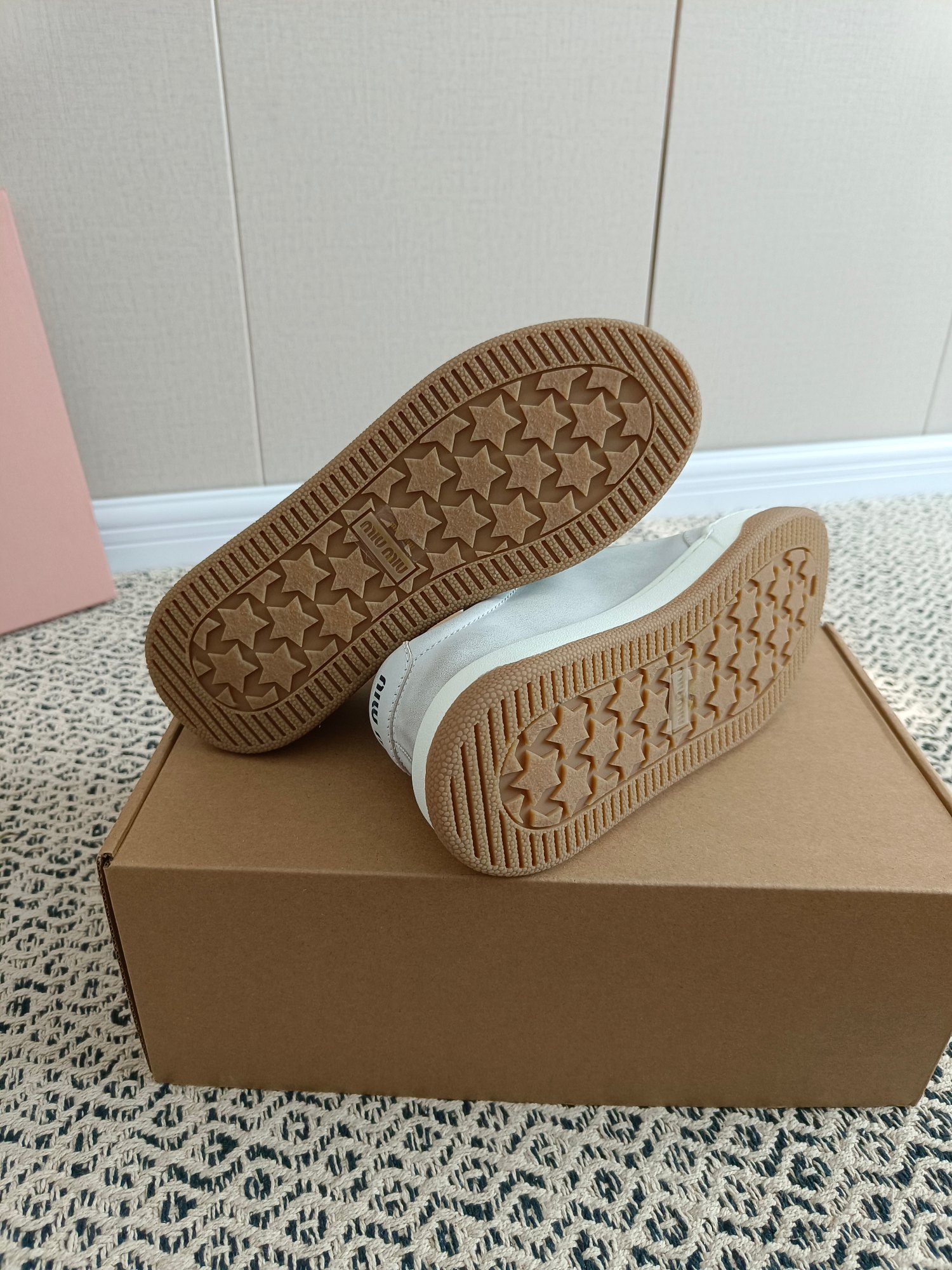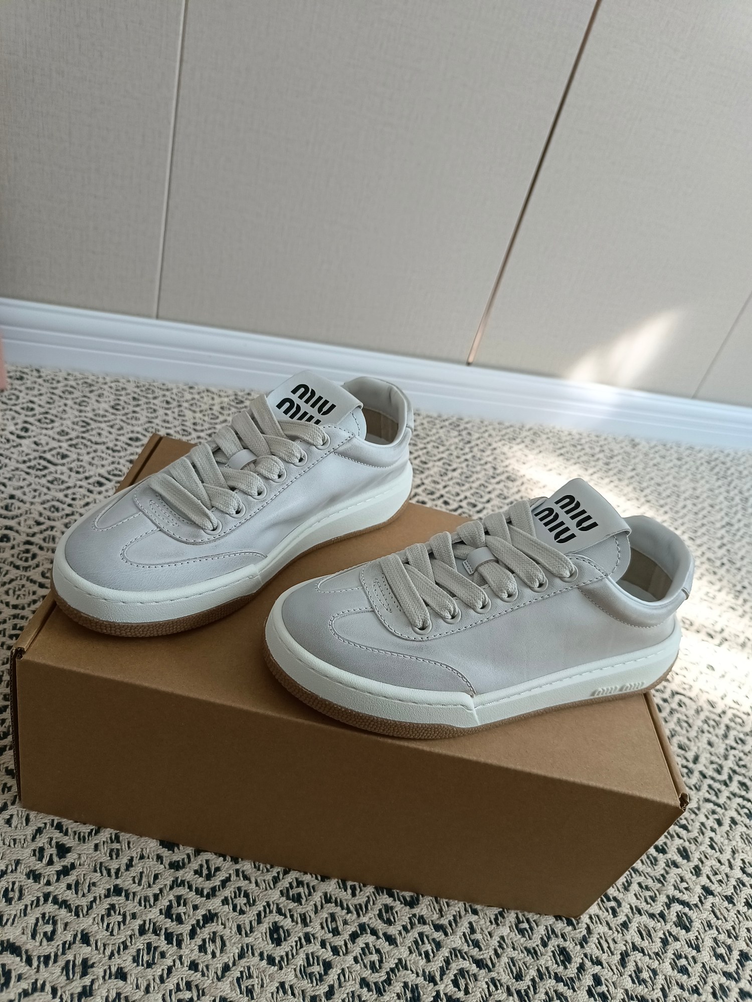 这款鞋子是AAAAA 1:1 质量 (非常棒). 使用了和原版一模一样的材料. 商标部分也保持了和缪缪/Miu Miu一样. 图片拍摄是实物鞋子拍摄, 您所收到的实物保证和我们图片一模一样.