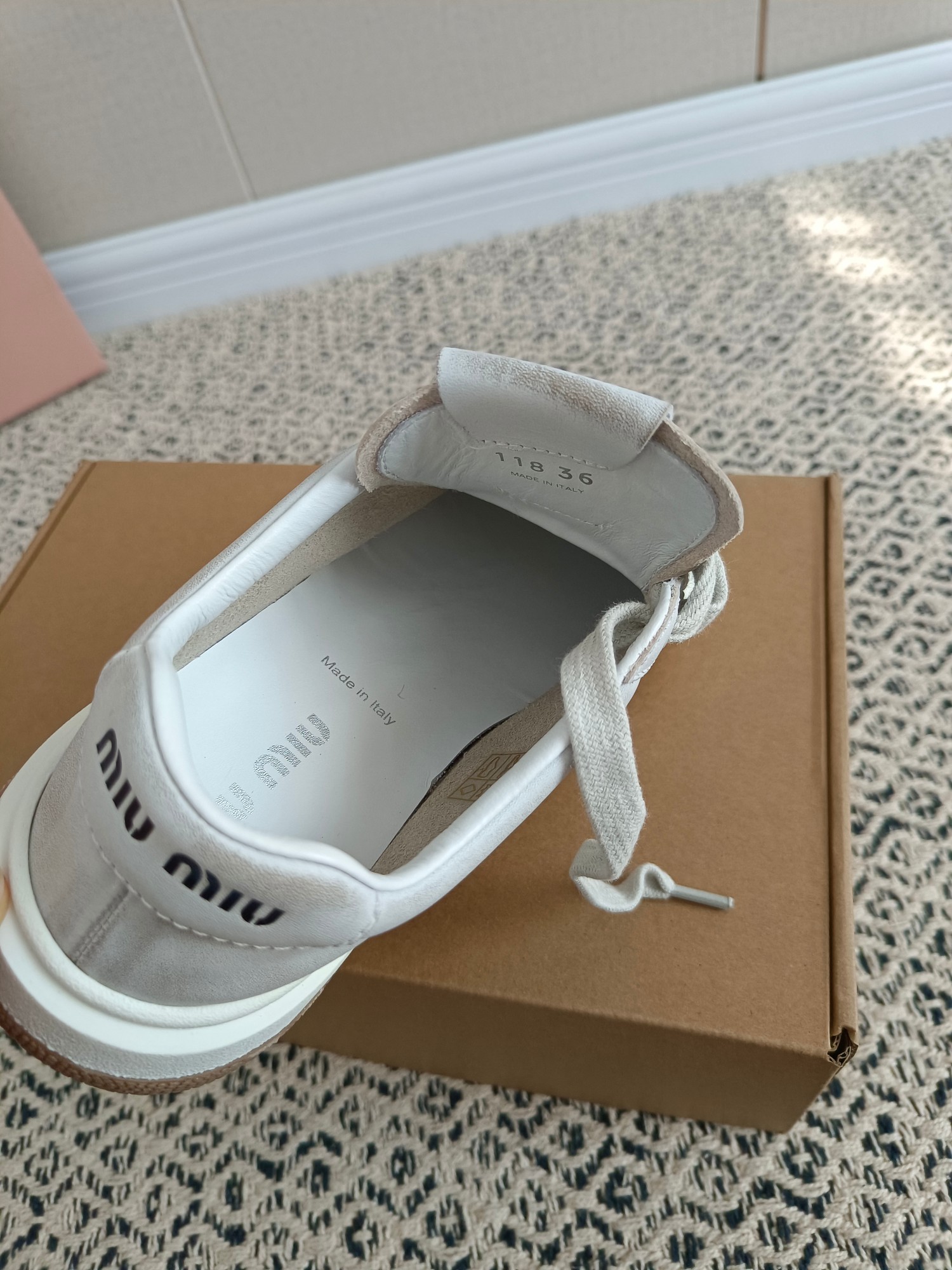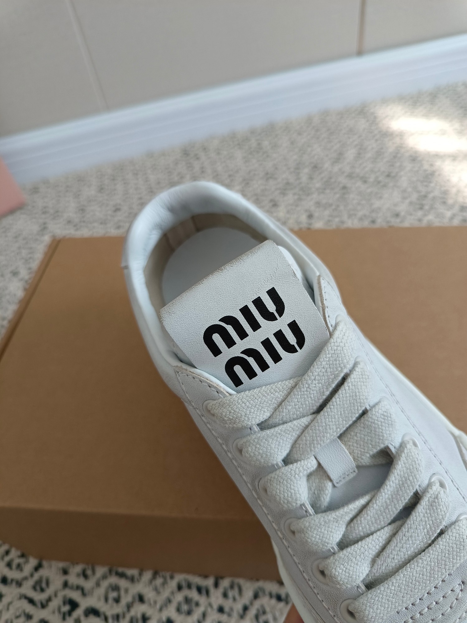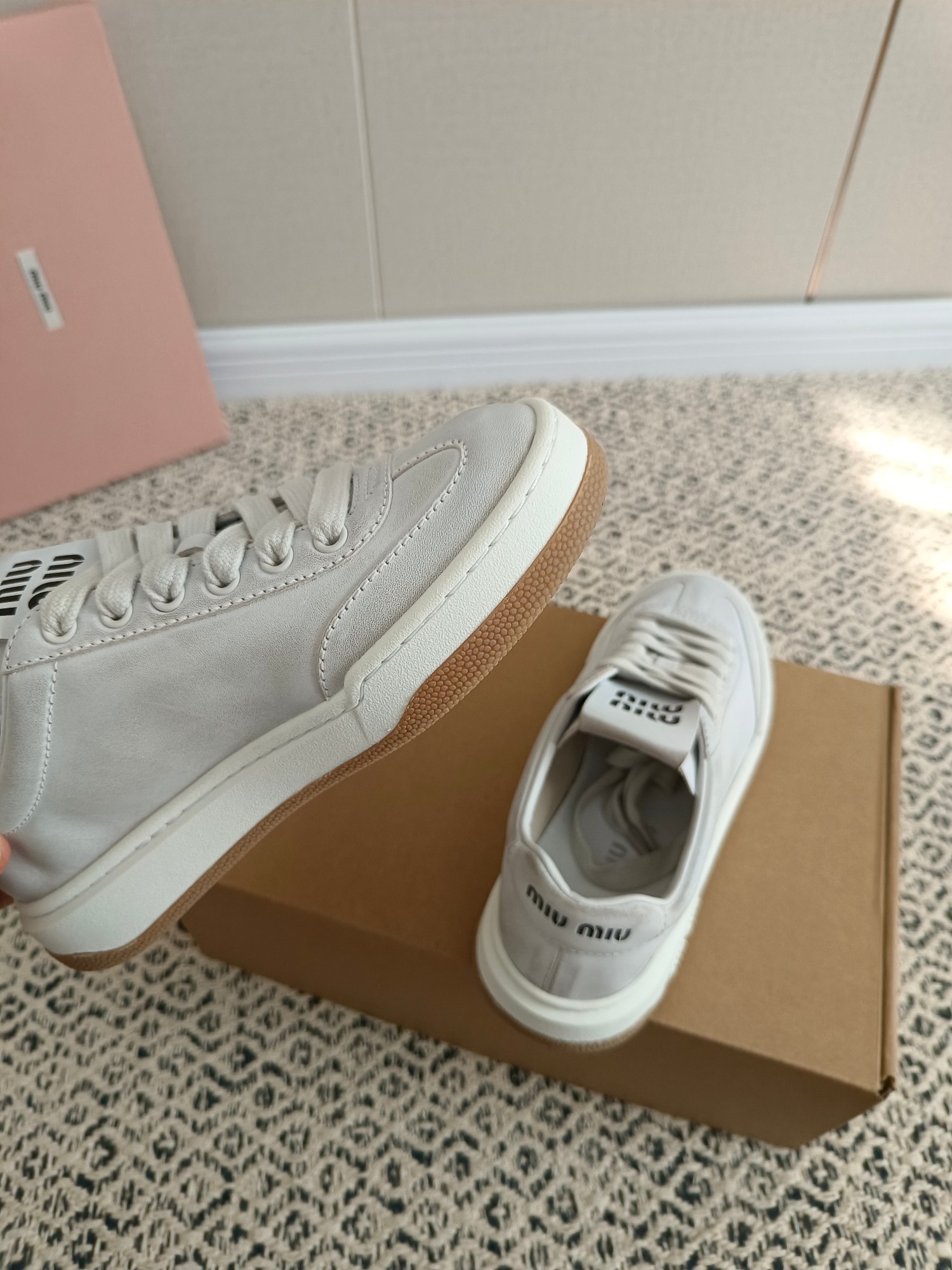 这款鞋子是AAAAA 1:1 质量 (非常棒). 使用了和原版一模一样的材料. 商标部分也保持了和缪缪/Miu Miu一样. 图片拍摄是实物鞋子拍摄, 您所收到的实物保证和我们图片一模一样.