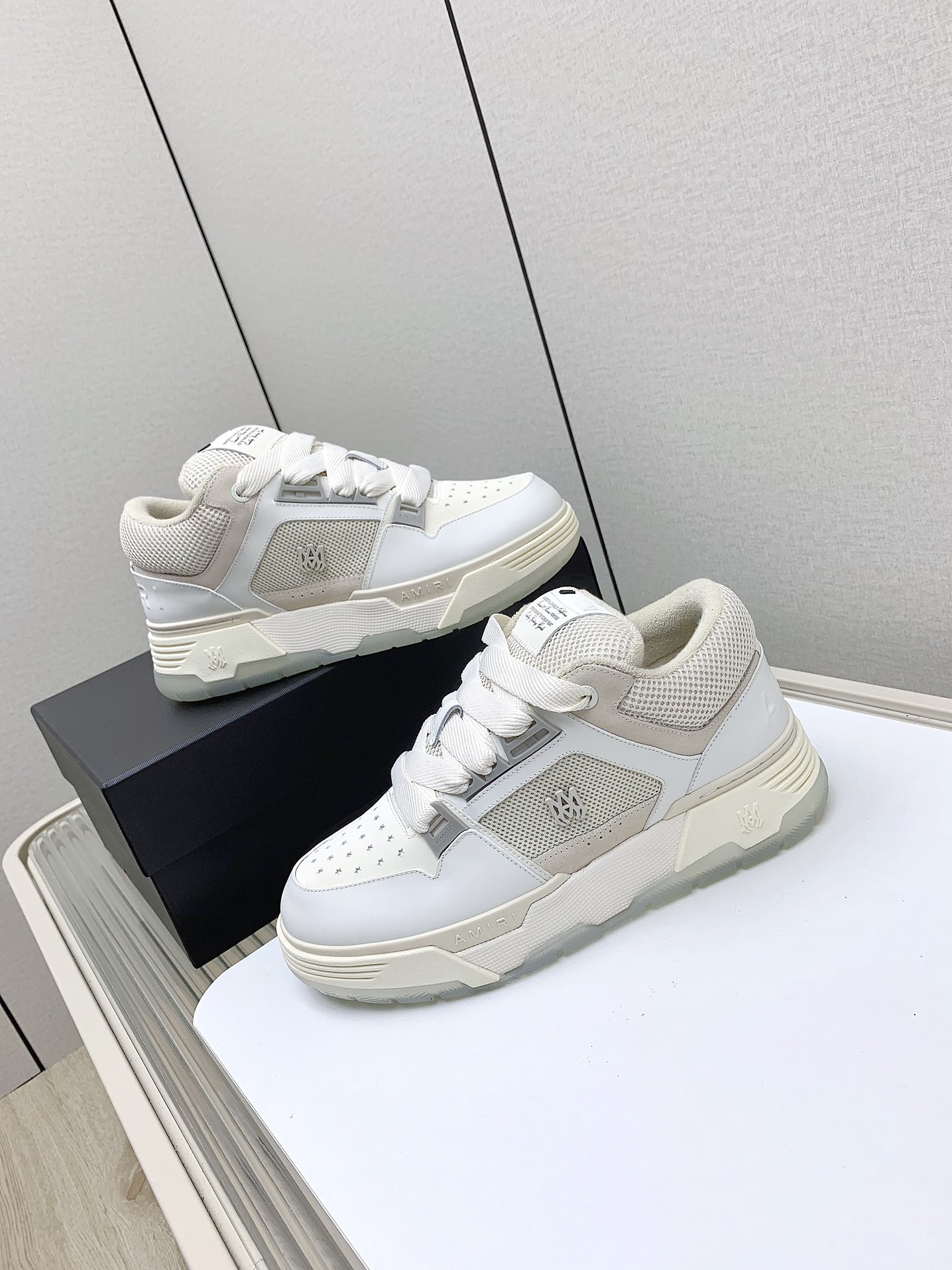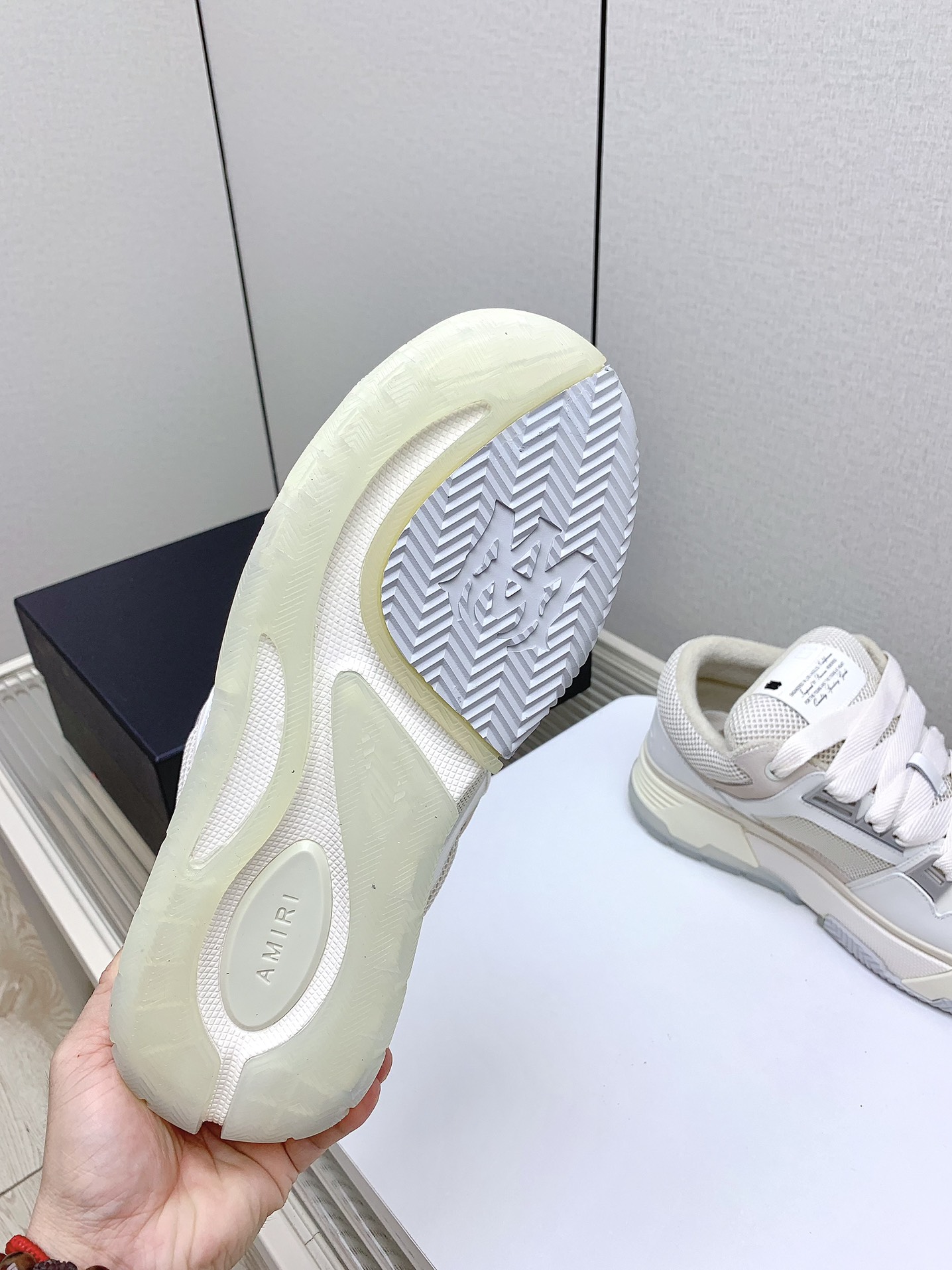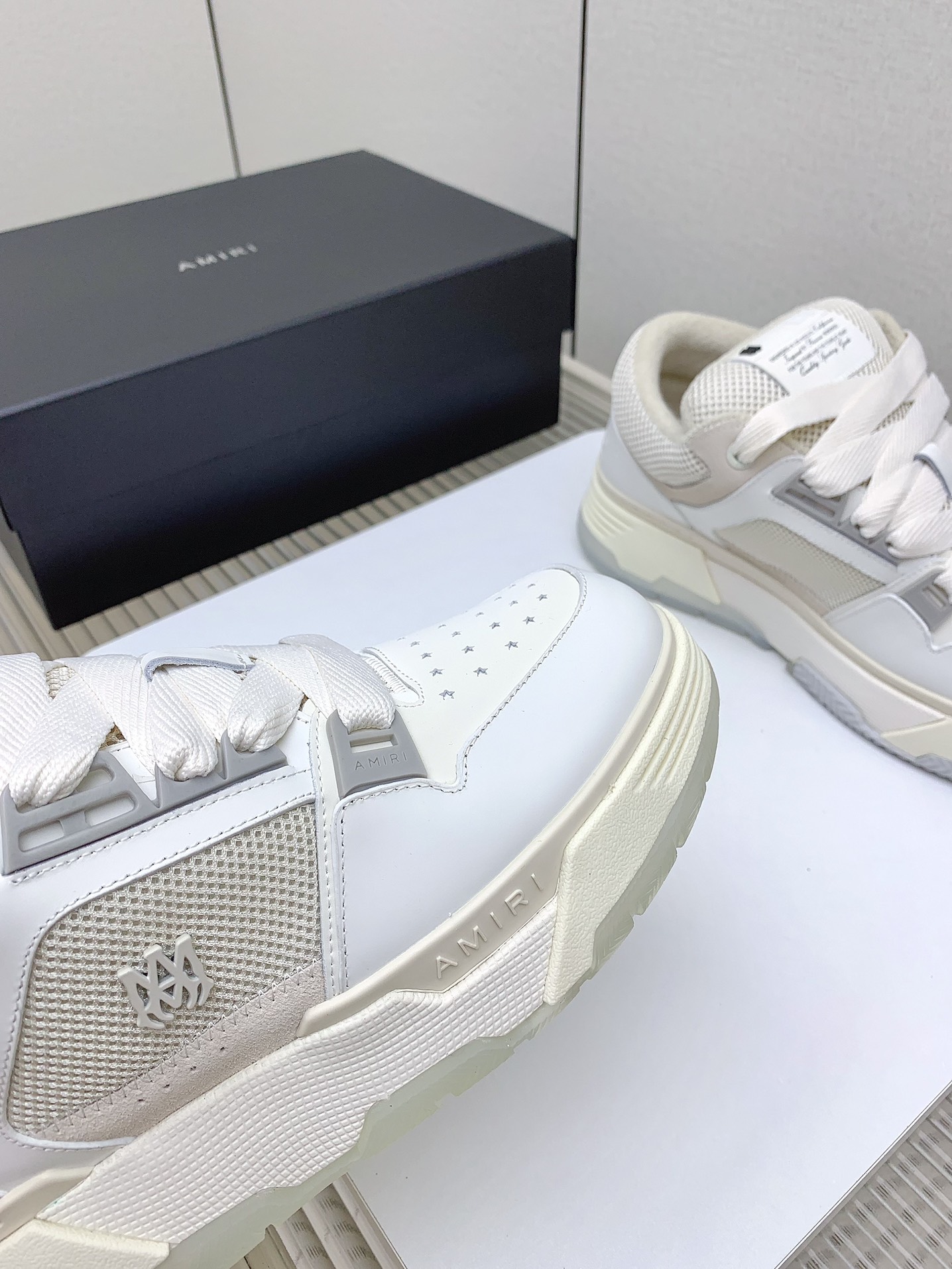 这款鞋子是AAAAA 1:1 质量 (非常棒). 使用了和原版一模一样的材料. 商标部分也保持了和AMIRI一样. 图片拍摄是实物鞋子拍摄, 您所收到的实物保证和我们图片一模一样.