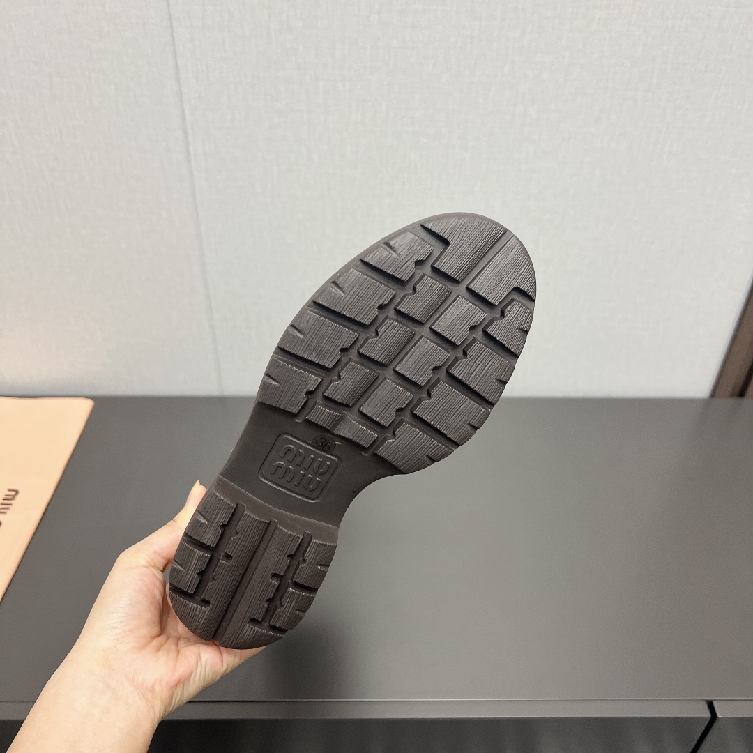 这款鞋子是AAAAA 1:1 质量 (非常棒). 使用了和原版一模一样的材料. 商标部分也保持了和缪缪/Miu Miu一样. 图片拍摄是实物鞋子拍摄, 您所收到的实物保证和我们图片一模一样.