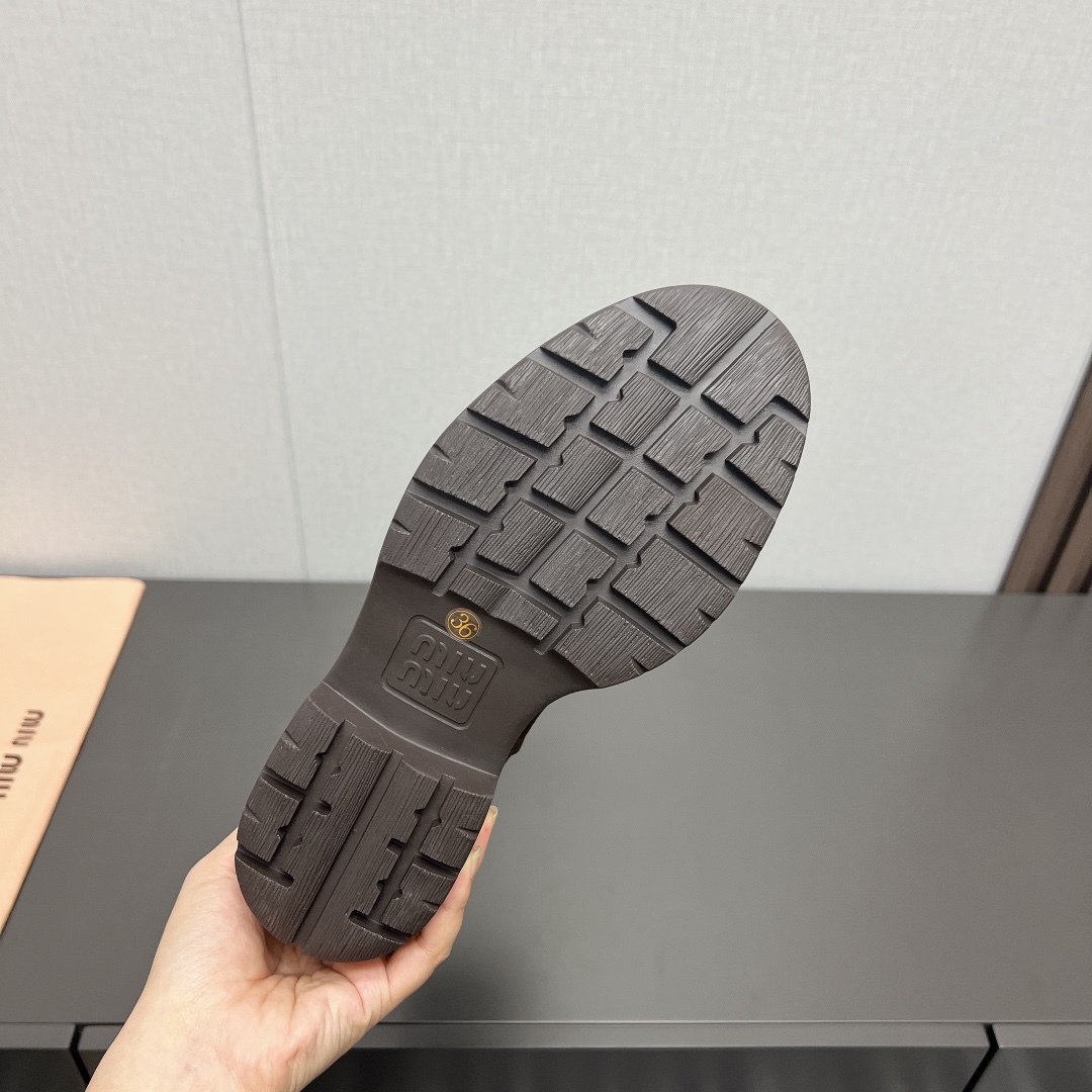 这款鞋子是AAAAA 1:1 质量 (非常棒). 使用了和原版一模一样的材料. 商标部分也保持了和缪缪/Miu Miu一样. 图片拍摄是实物鞋子拍摄, 您所收到的实物保证和我们图片一模一样.