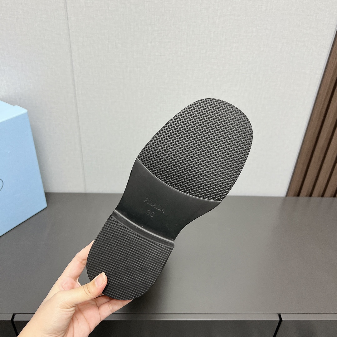 这款鞋子是AAAAA 1:1 质量 (非常棒). 使用了和原版一模一样的材料. 商标部分也保持了和普拉达/Prada一样. 图片拍摄是实物鞋子拍摄, 您所收到的实物保证和我们图片一模一样.