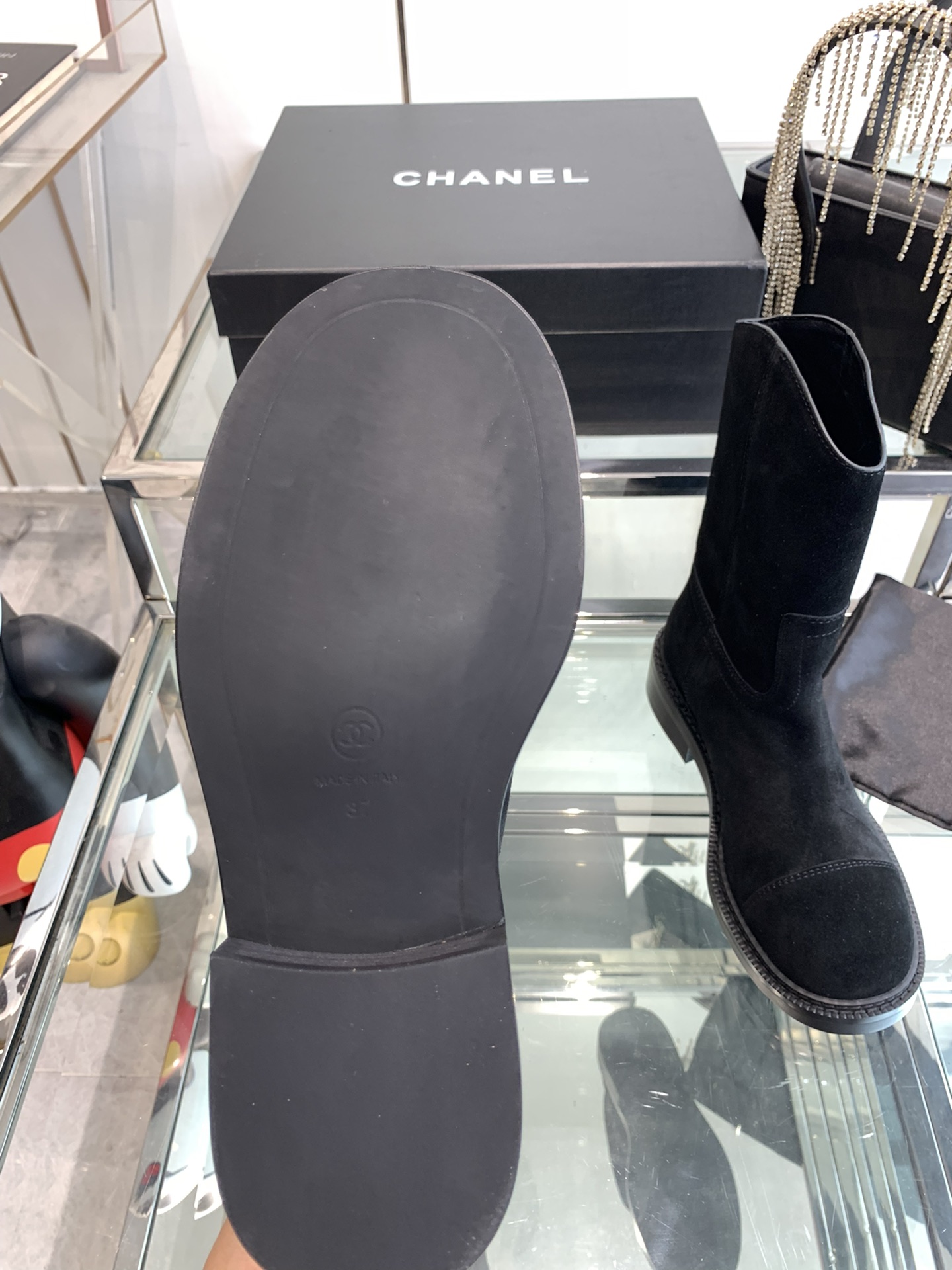 这款鞋子是AAAAA 1:1 质量 (非常棒). 使用了和原版一模一样的材料. 商标部分也保持了和香奈儿/Chanel一样. 图片拍摄是实物鞋子拍摄, 您所收到的实物保证和我们图片一模一样.