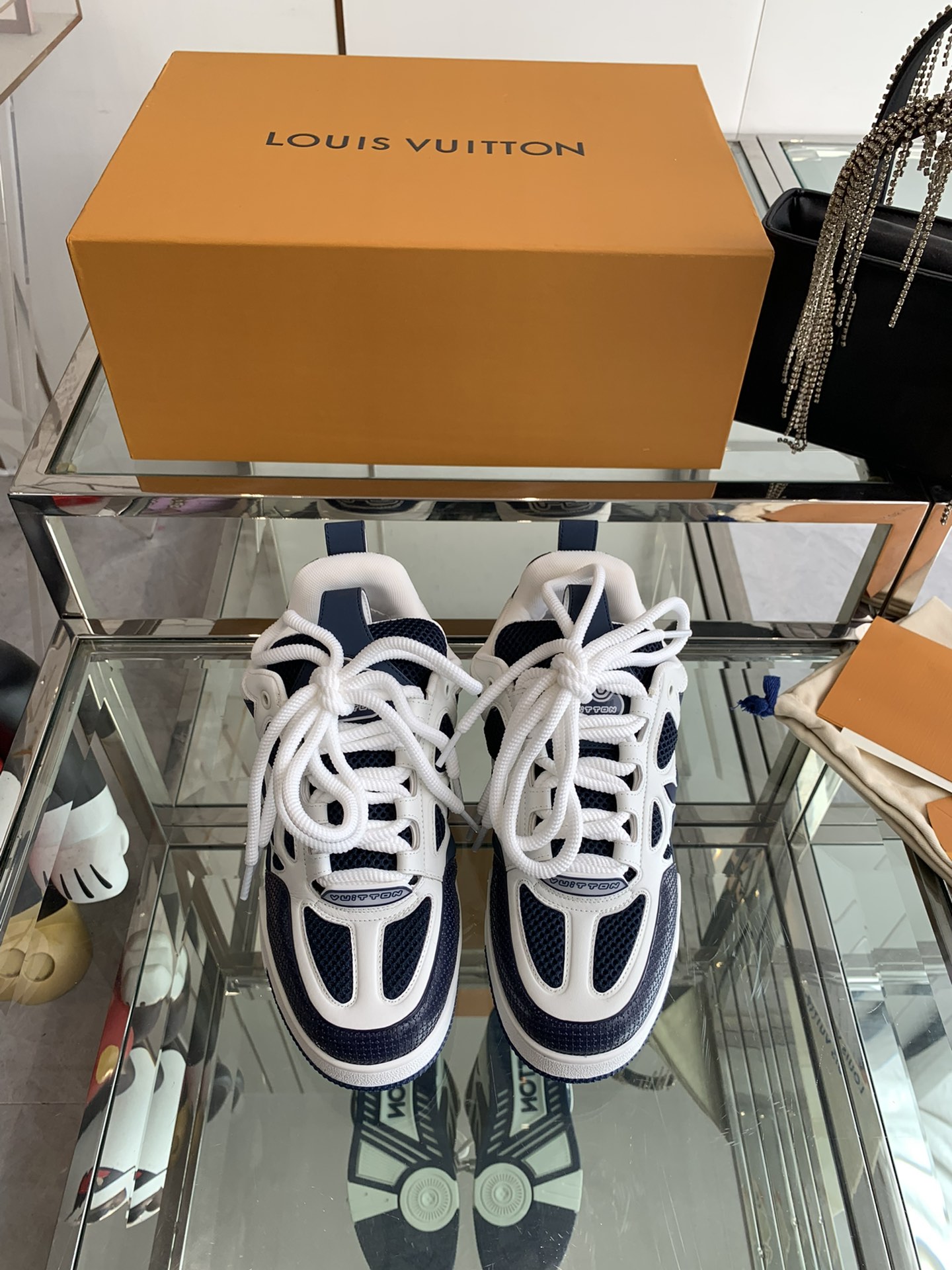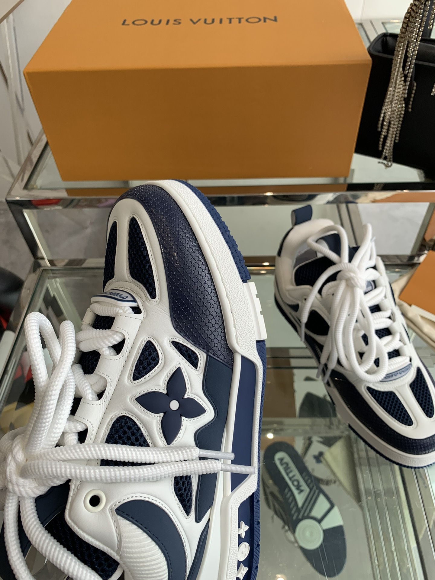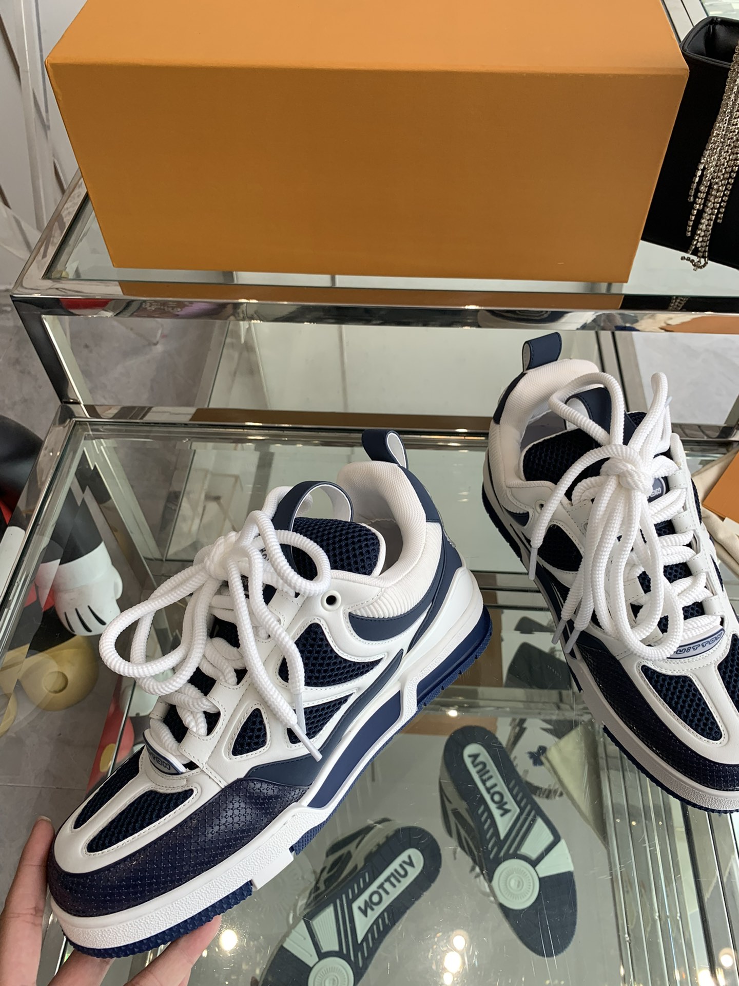 这款鞋子是AAAAA 1:1 质量 (非常棒). 使用了和原版一模一样的材料. 商标部分也保持了和路易威登/Louis Vuitton一样. 图片拍摄是实物鞋子拍摄, 您所收到的实物保证和我们图片一模一样.