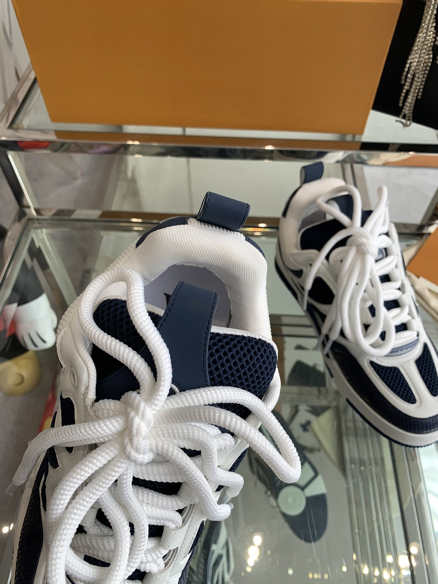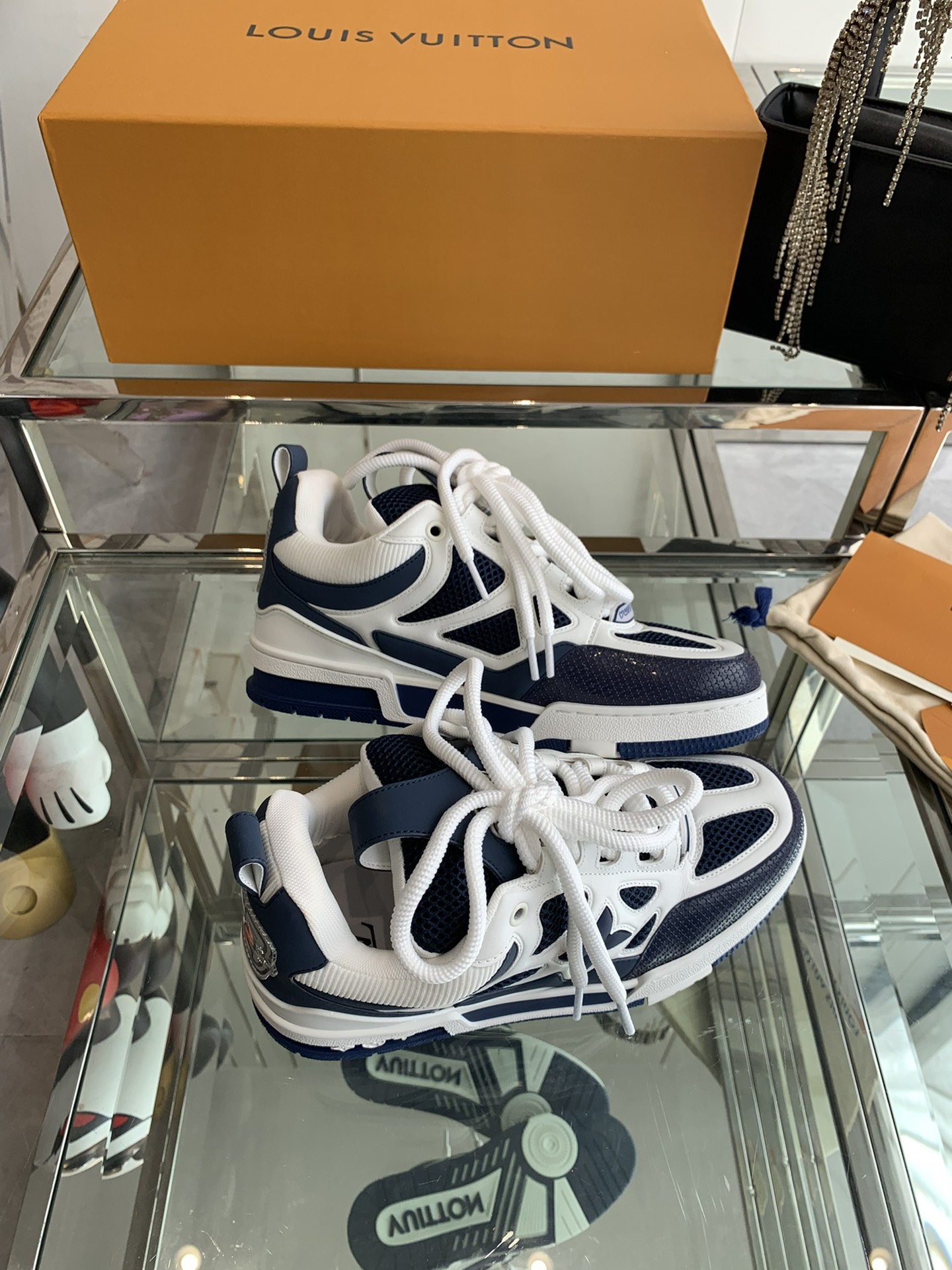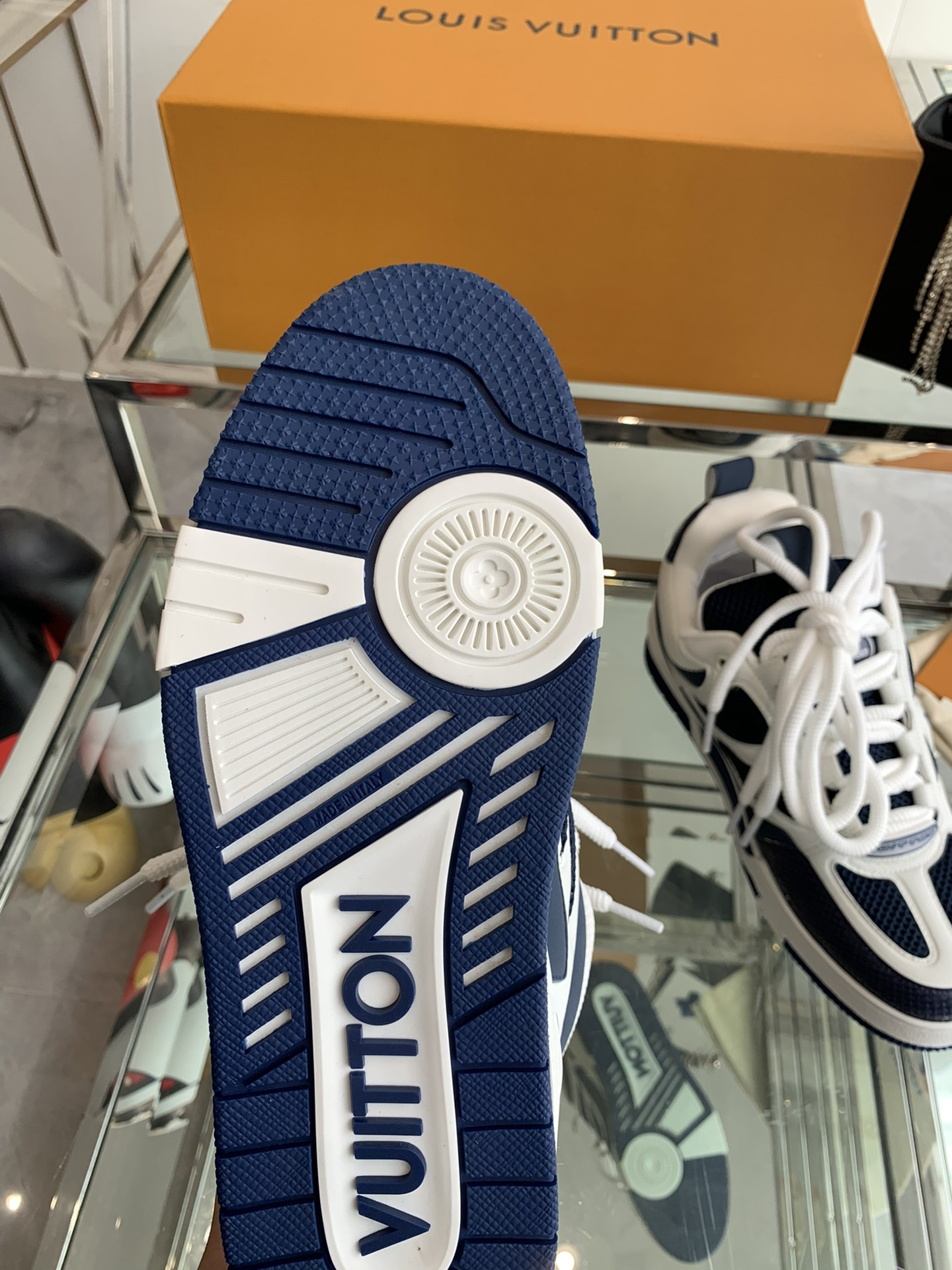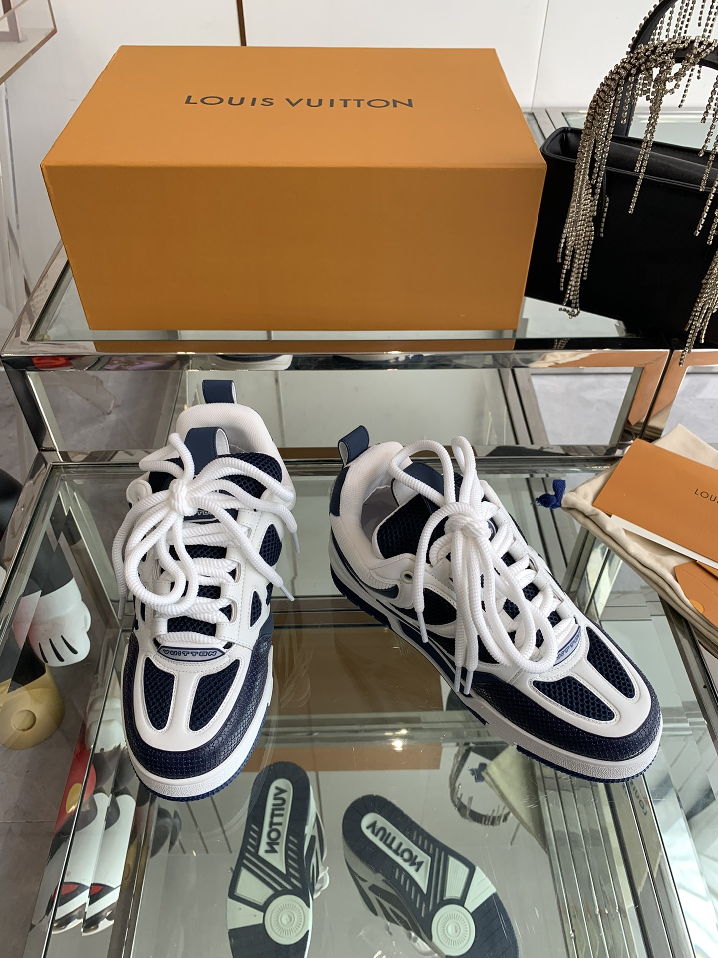 这款鞋子是AAAAA 1:1 质量 (非常棒). 使用了和原版一模一样的材料. 商标部分也保持了和路易威登/Louis Vuitton一样. 图片拍摄是实物鞋子拍摄, 您所收到的实物保证和我们图片一模一样.