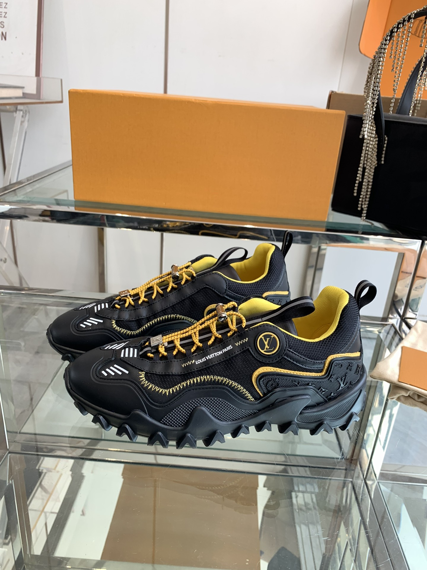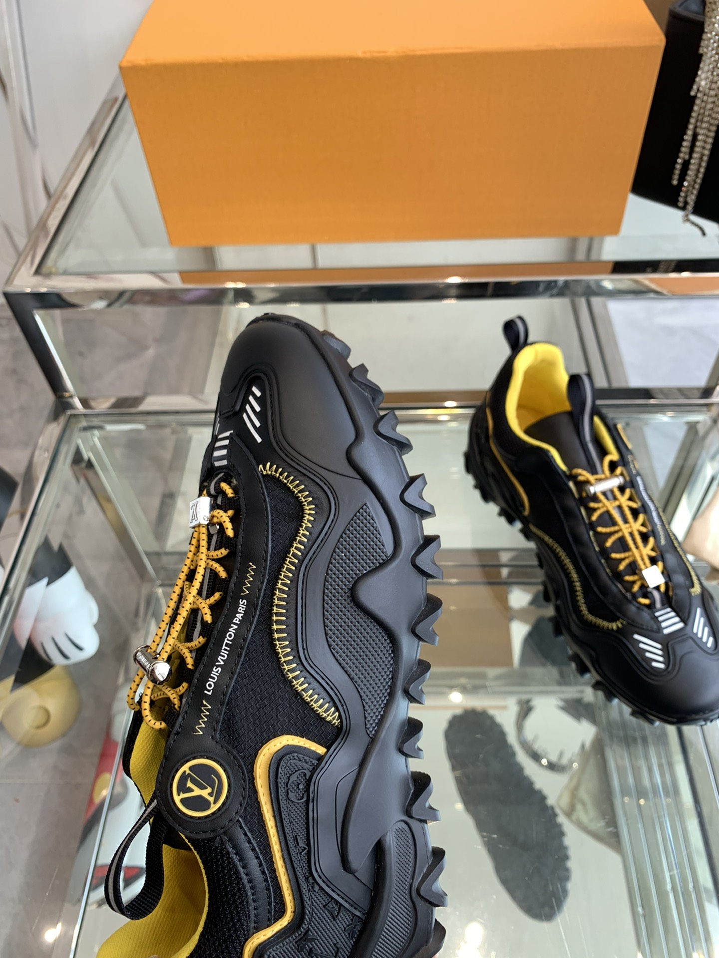 这款鞋子是AAAAA 1:1 质量 (非常棒). 使用了和原版一模一样的材料. 商标部分也保持了和路易威登/Louis Vuitton一样. 图片拍摄是实物鞋子拍摄, 您所收到的实物保证和我们图片一模一样.