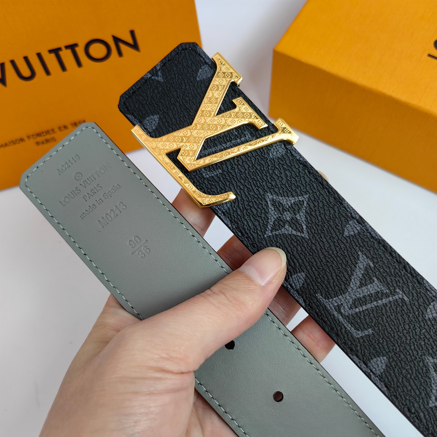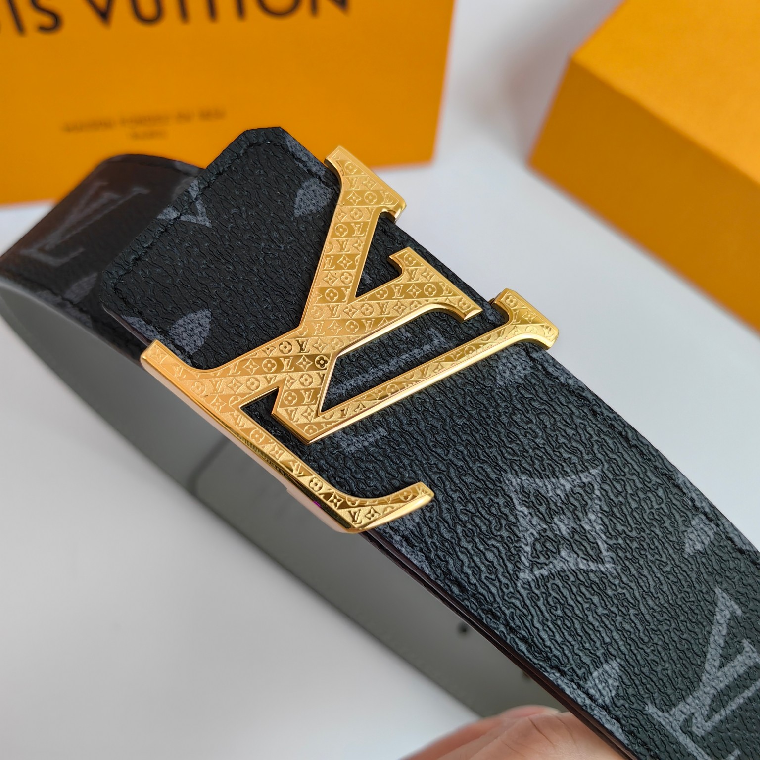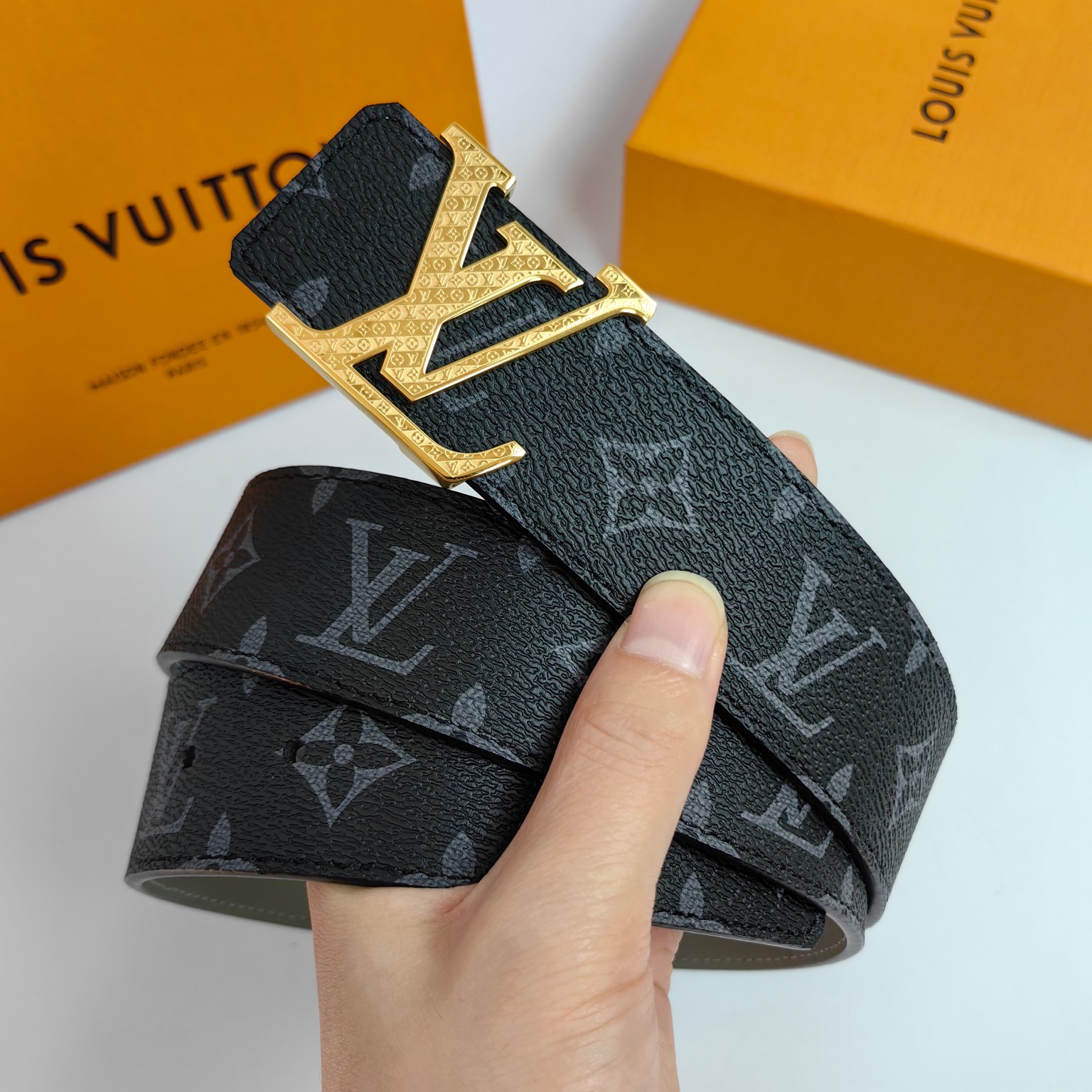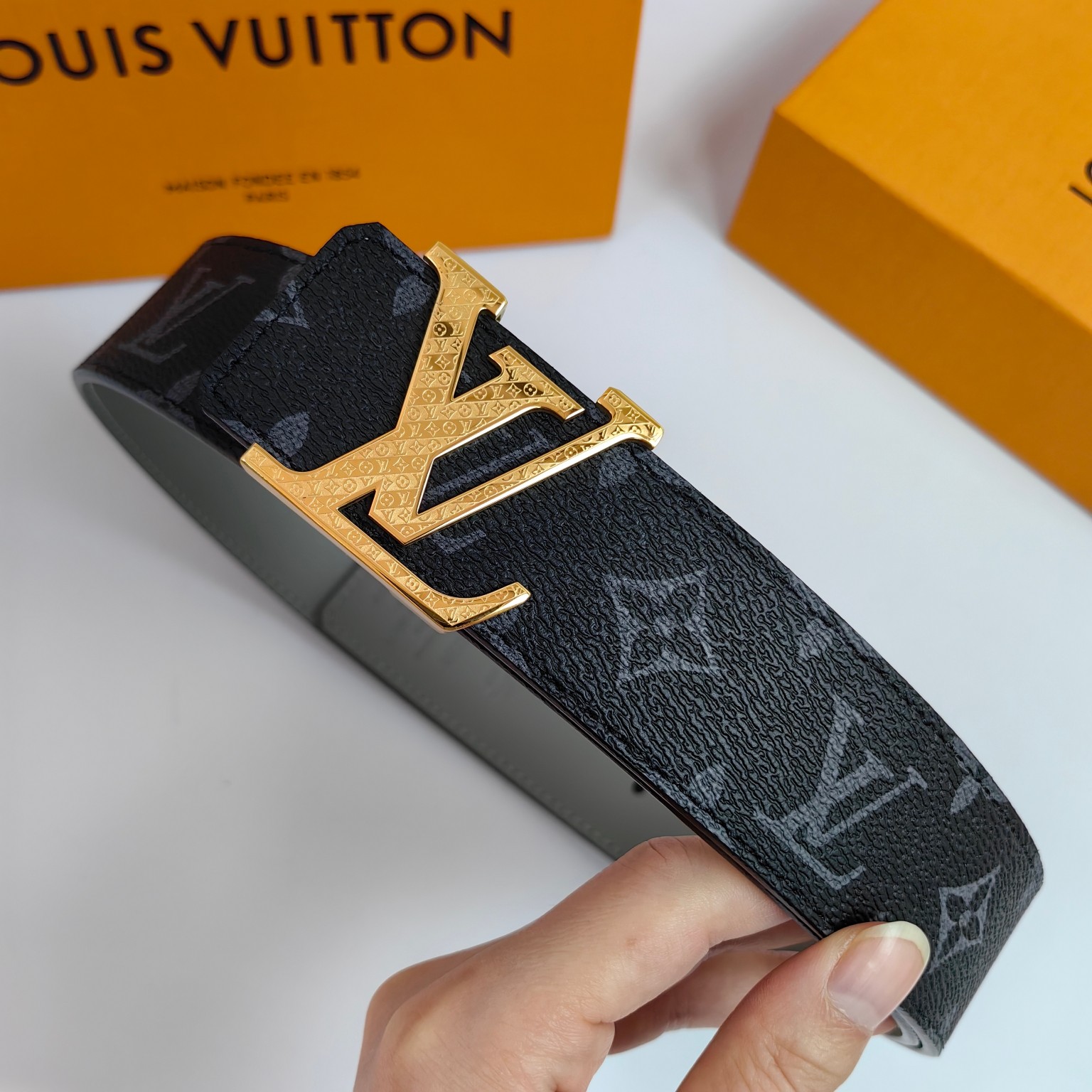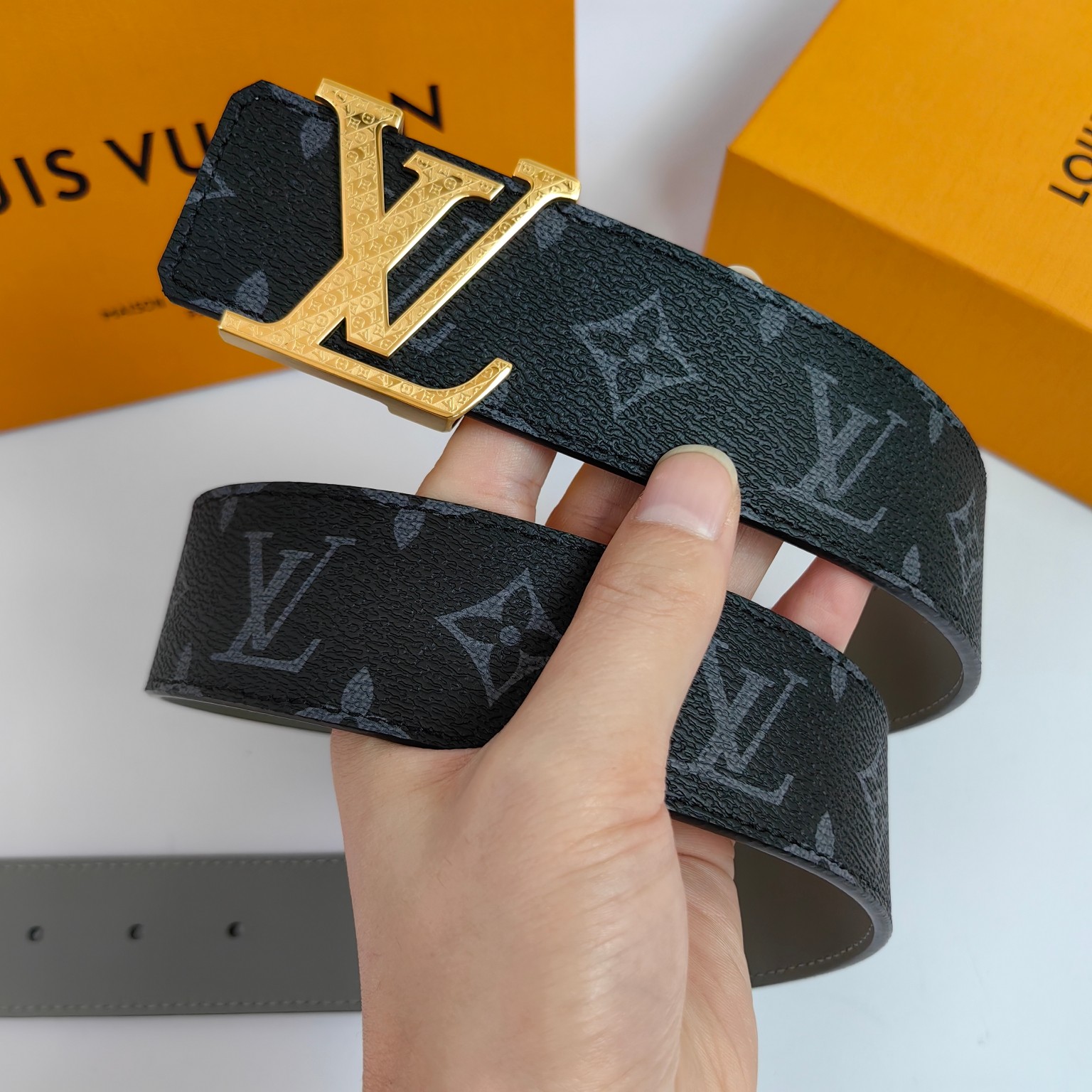 这款皮带是AAAAA 1:1 质量 (非常棒). 使用了和原版一模一样的材料. 商标部分也保持了和路易威登/Louis Vuitton一样. 图片拍摄是实物皮带拍摄, 您所收到的实物保证和我们图片一模一样.