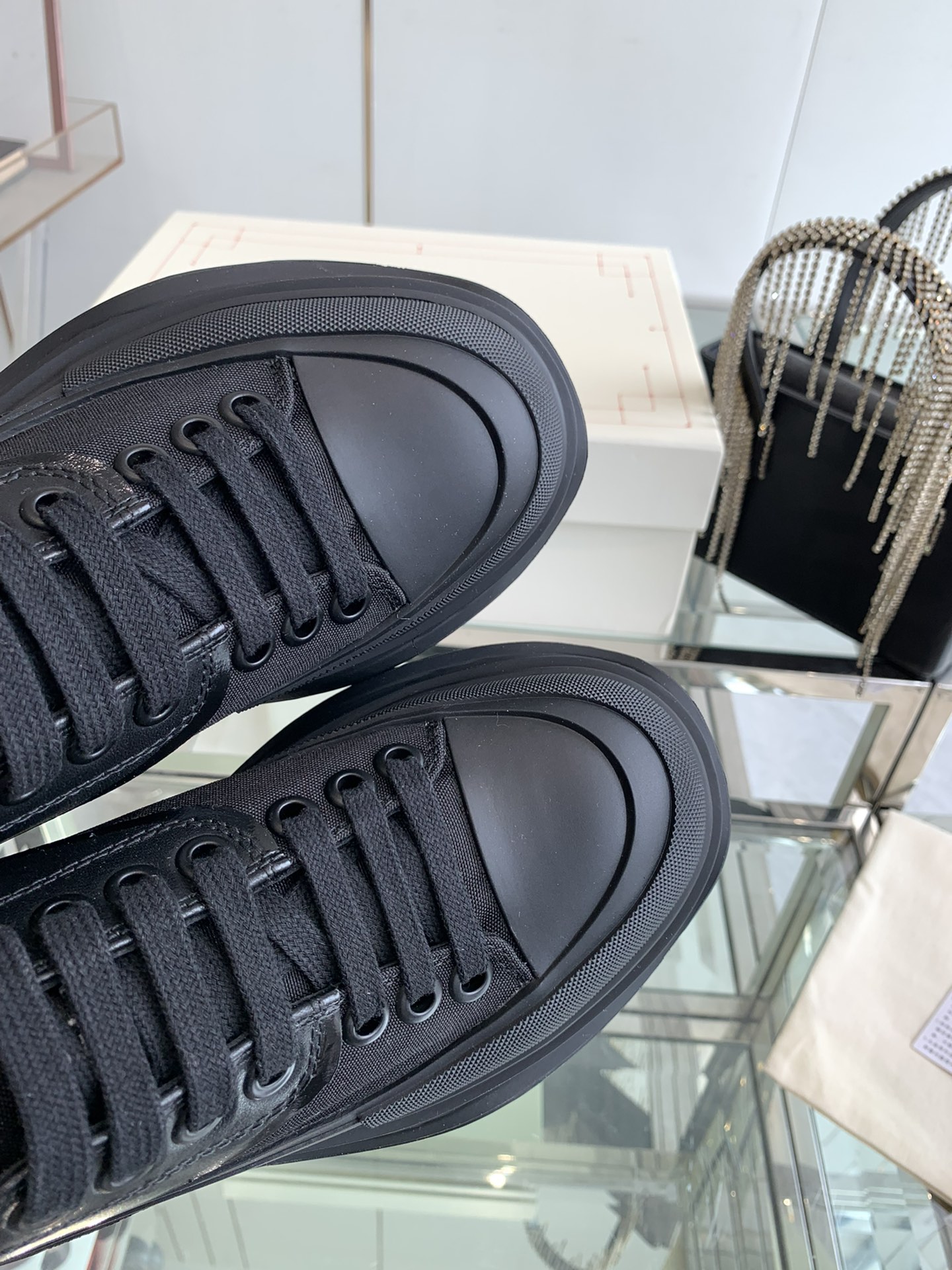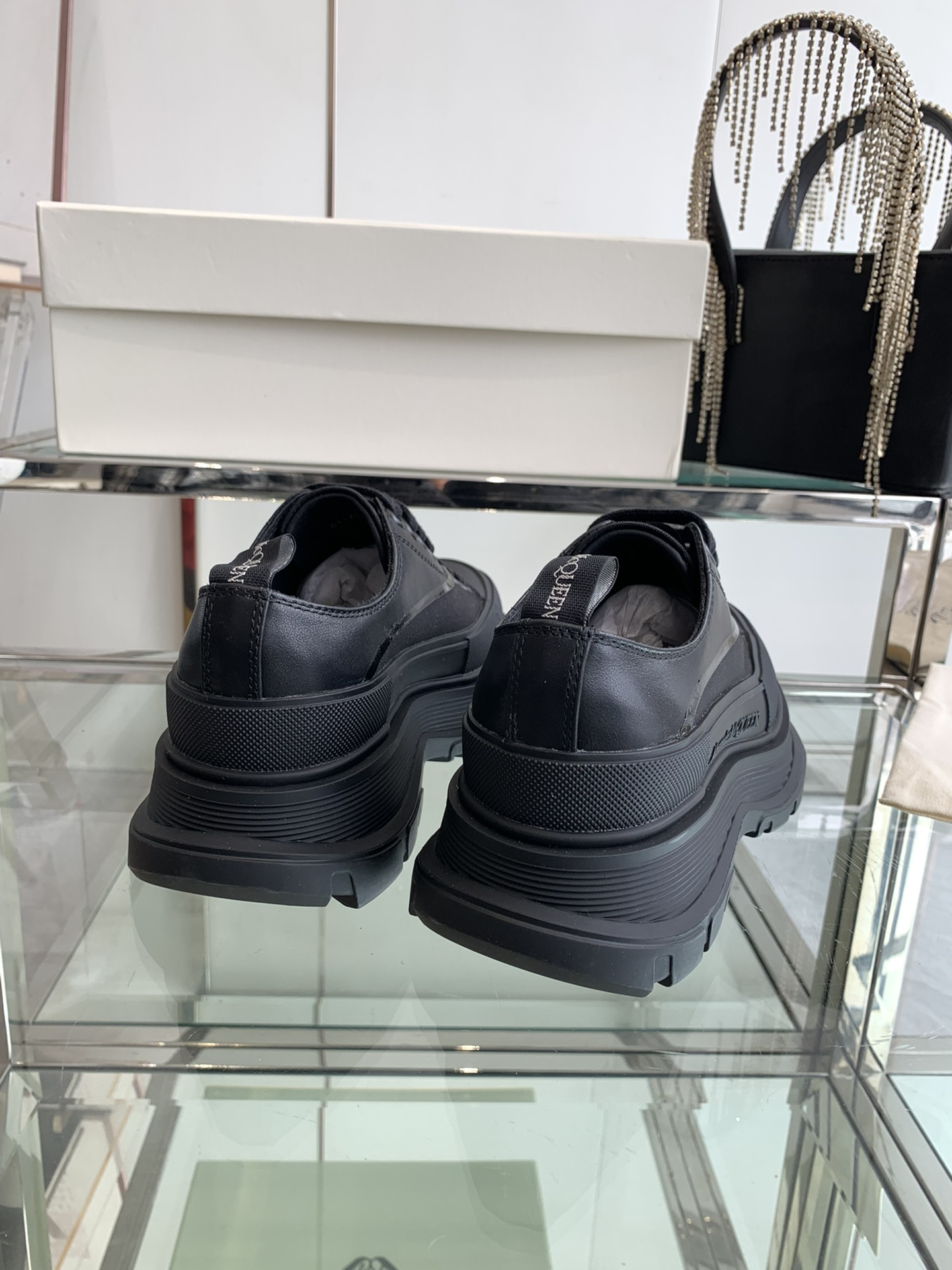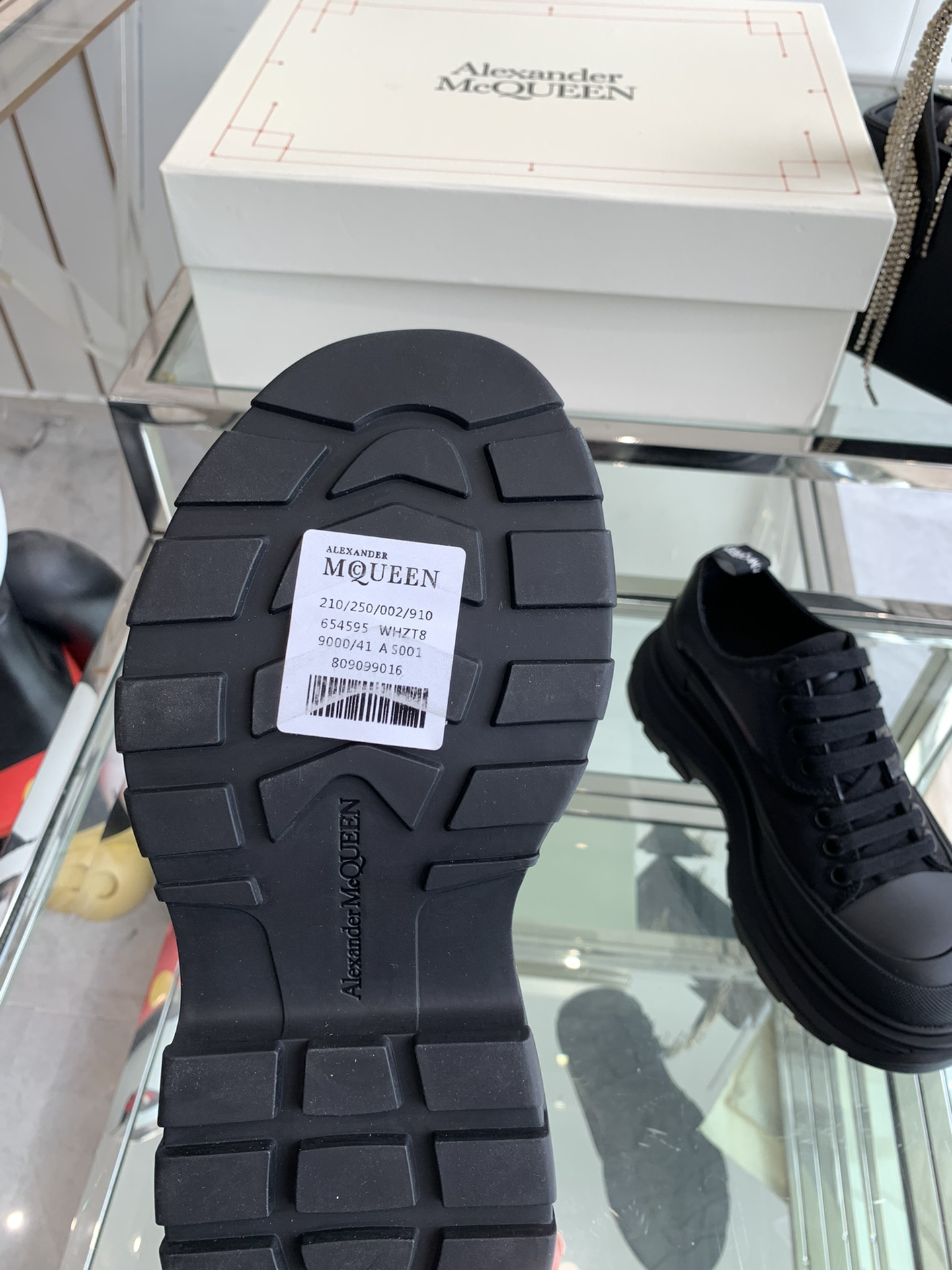 这款鞋子是AAAAA 1:1 质量 (非常棒). 使用了和原版一模一样的材料. 商标部分也保持了和亚历山大·麦昆/McQueen一样. 图片拍摄是实物鞋子拍摄, 您所收到的实物保证和我们图片一模一样.