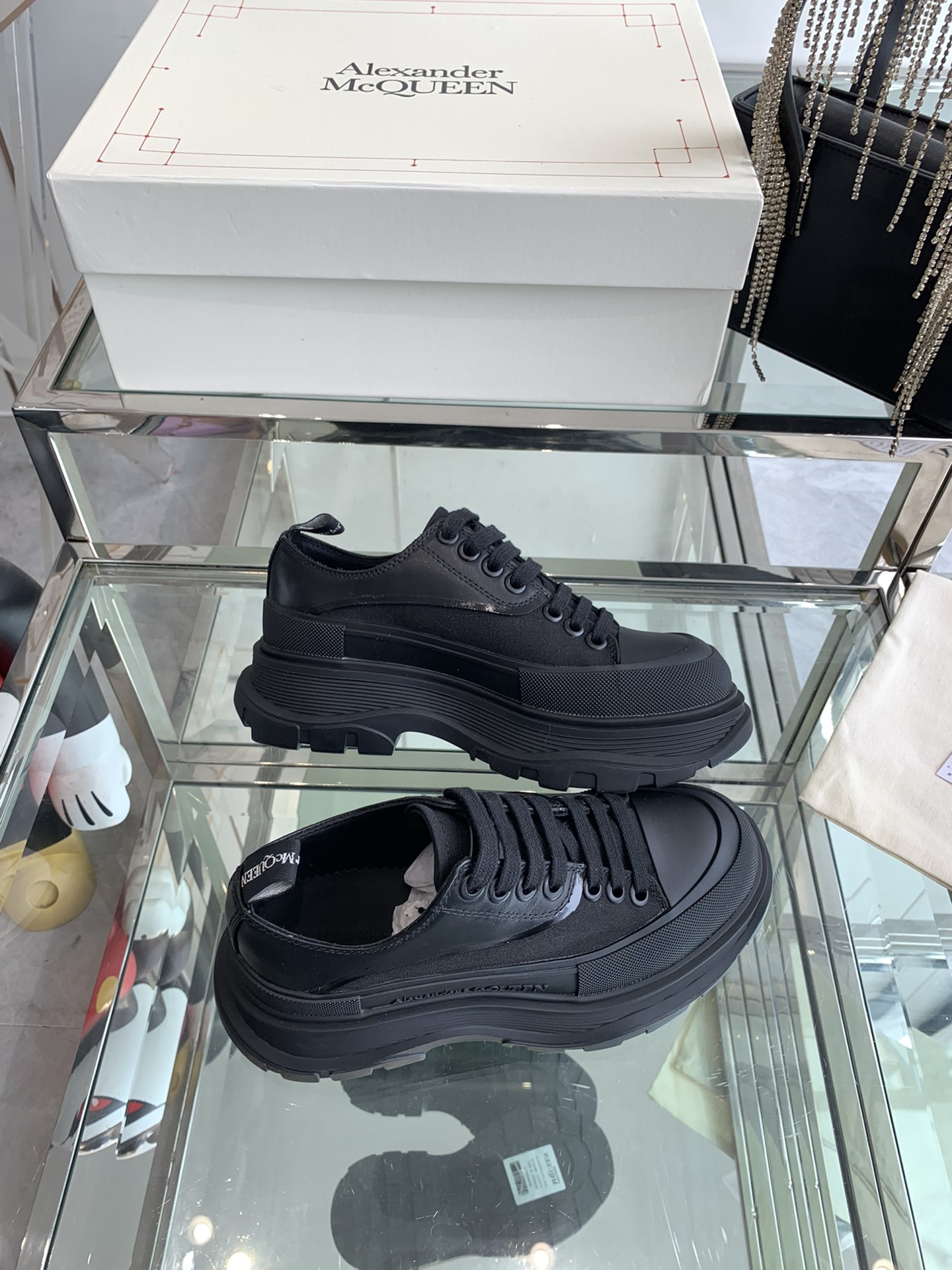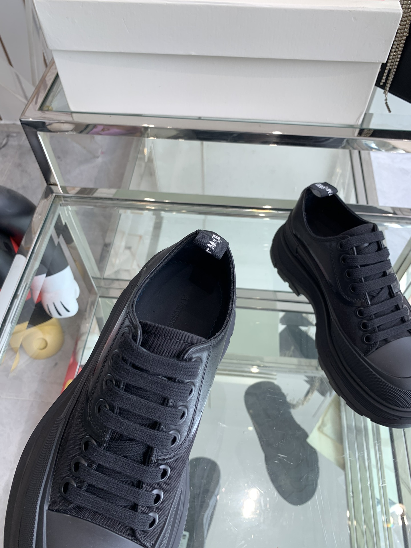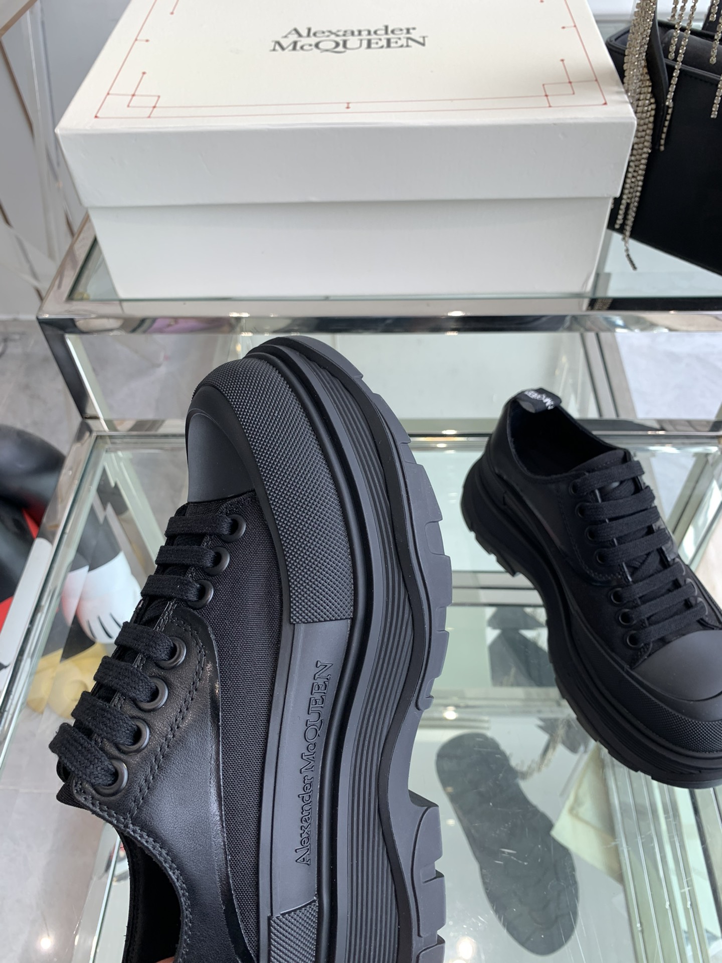 这款鞋子是AAAAA 1:1 质量 (非常棒). 使用了和原版一模一样的材料. 商标部分也保持了和亚历山大·麦昆/McQueen一样. 图片拍摄是实物鞋子拍摄, 您所收到的实物保证和我们图片一模一样.