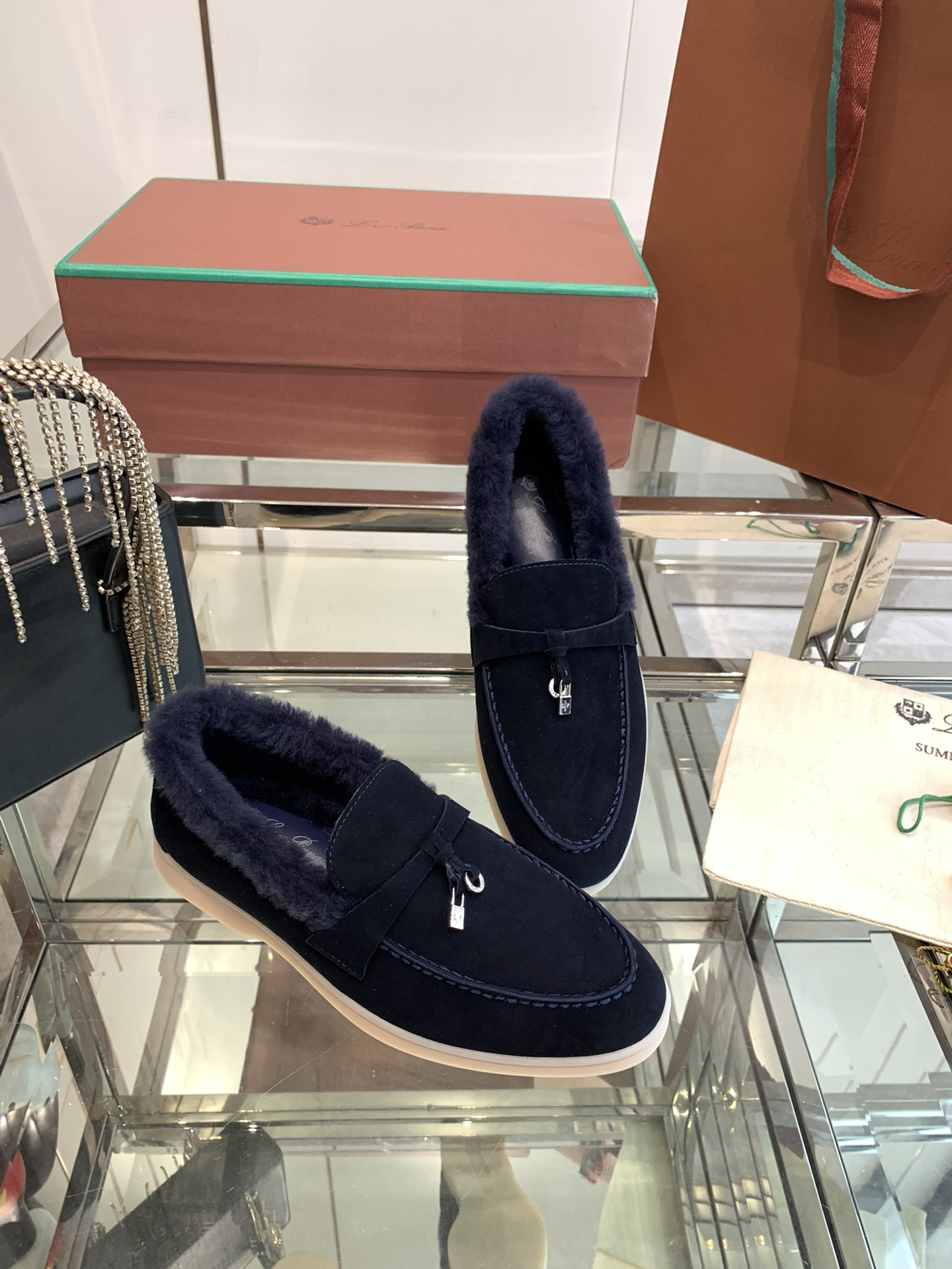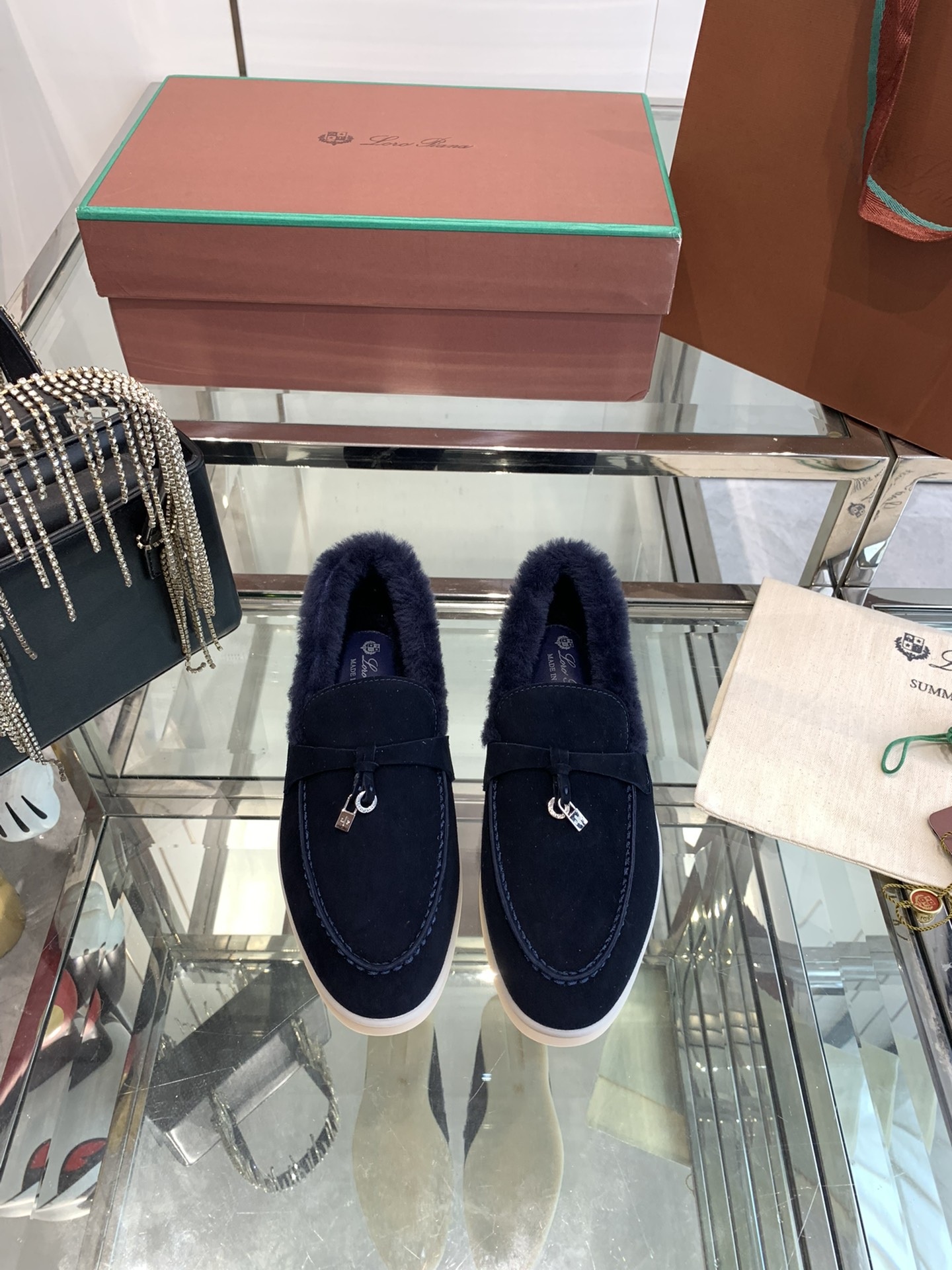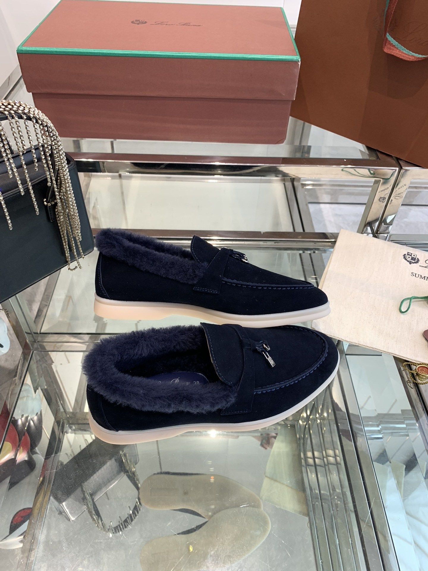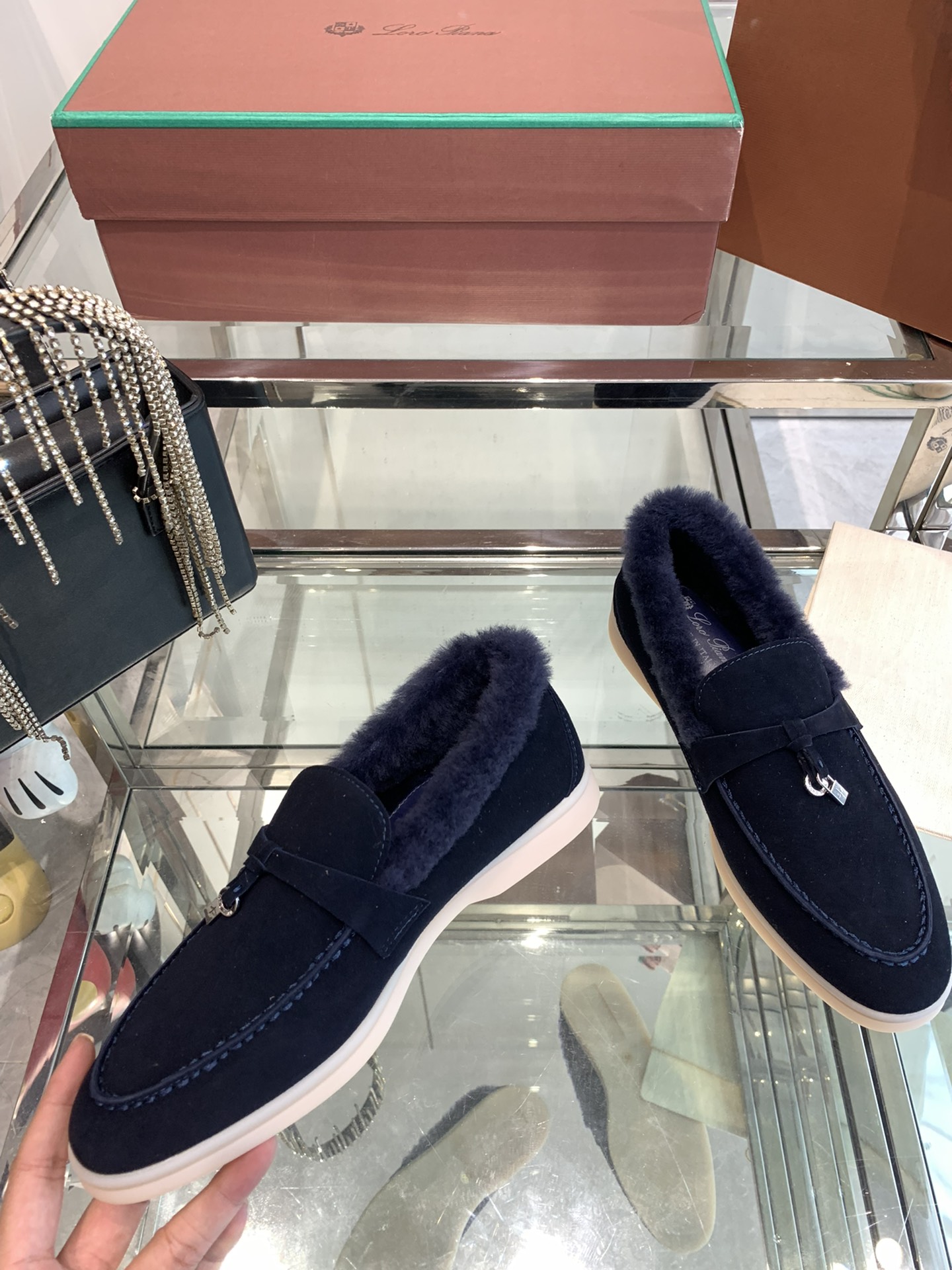 这款鞋子是AAAAA 1:1 质量 (非常棒). 使用了和原版一模一样的材料. 商标部分也保持了和洛罗皮亚纳/Loro Piana一样. 图片拍摄是实物鞋子拍摄, 您所收到的实物保证和我们图片一模一样.