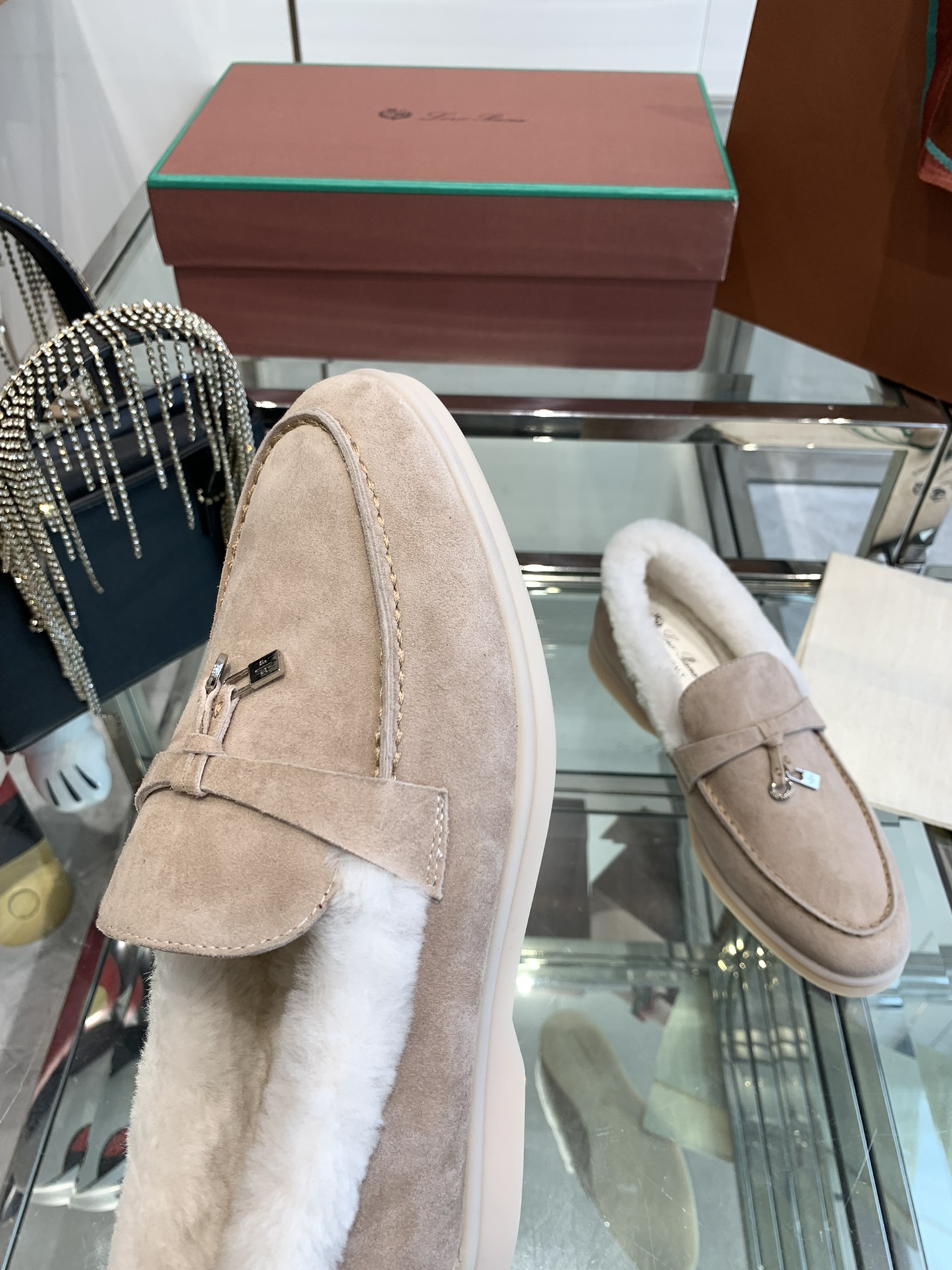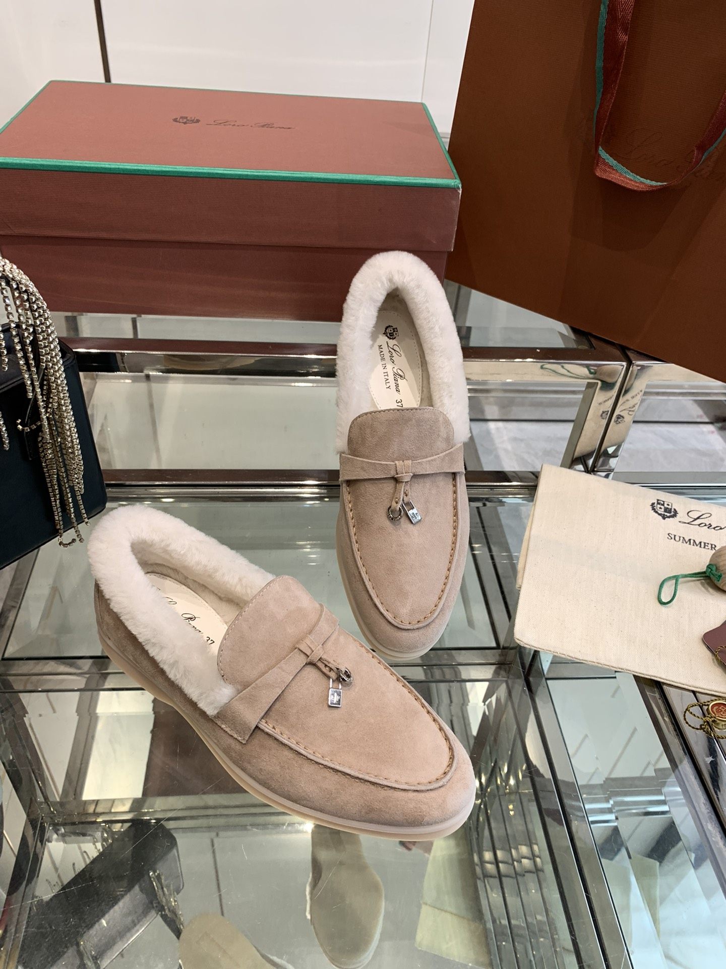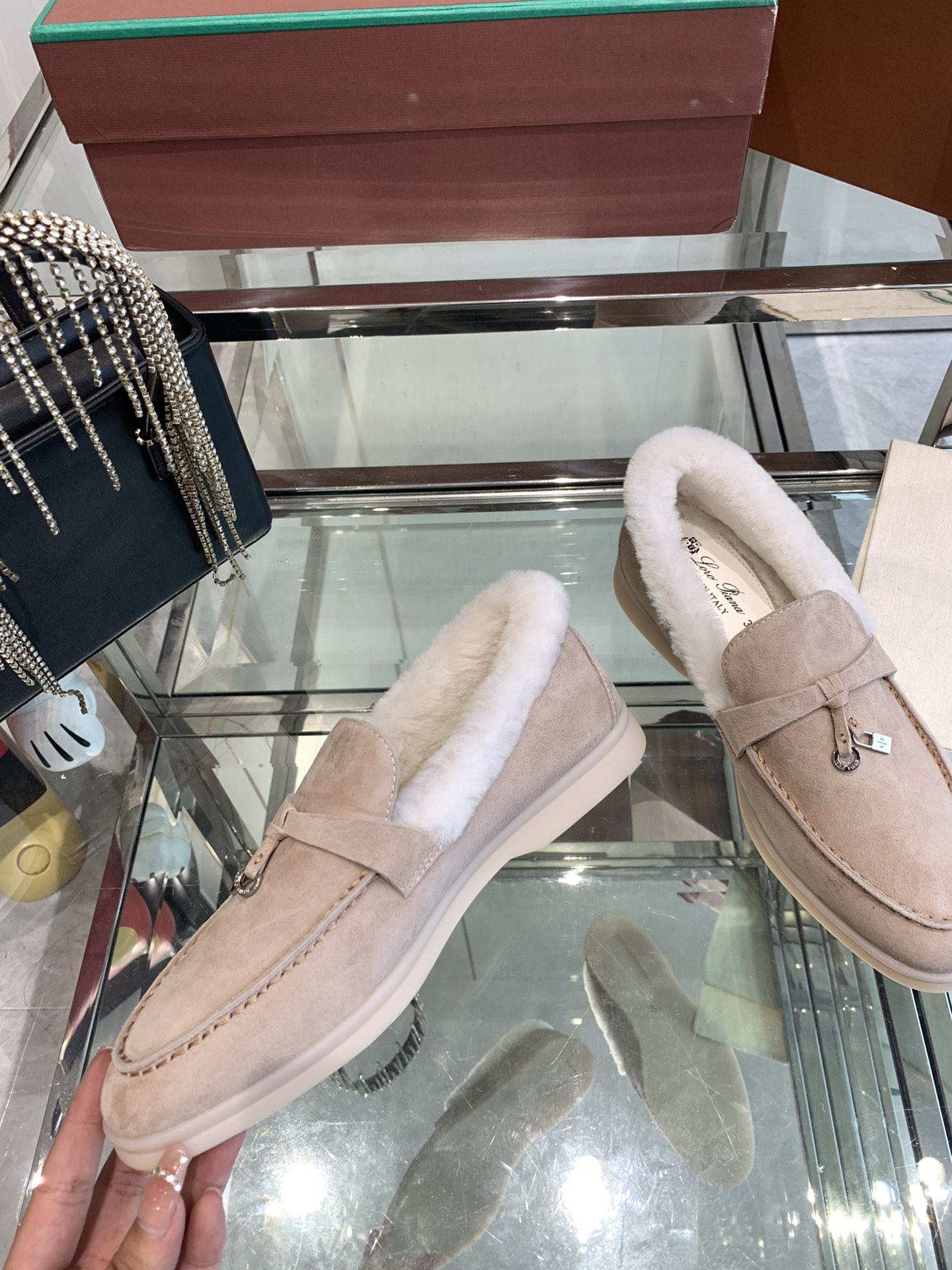 这款鞋子是AAAAA 1:1 质量 (非常棒). 使用了和原版一模一样的材料. 商标部分也保持了和洛罗皮亚纳/Loro Piana一样. 图片拍摄是实物鞋子拍摄, 您所收到的实物保证和我们图片一模一样.