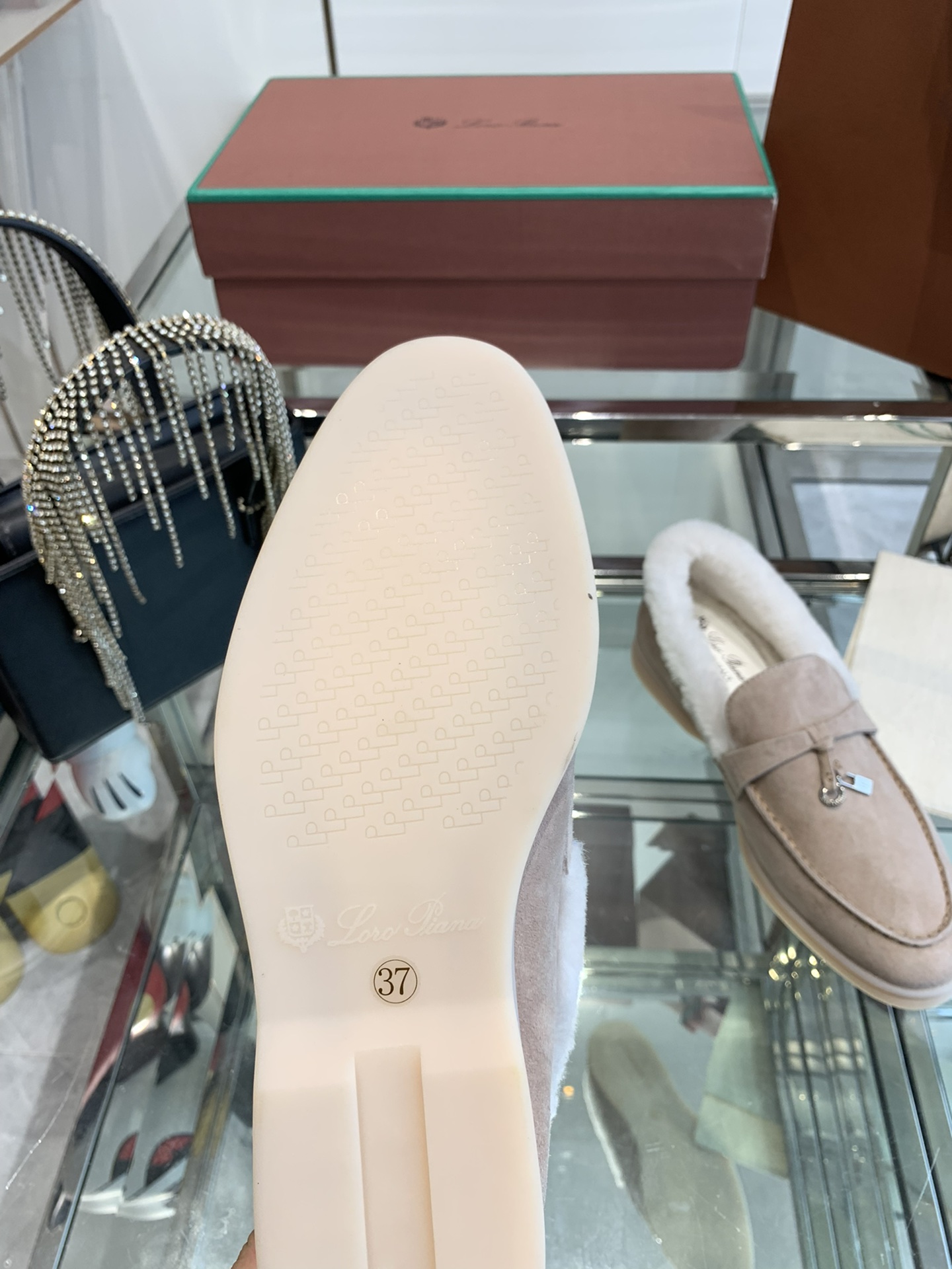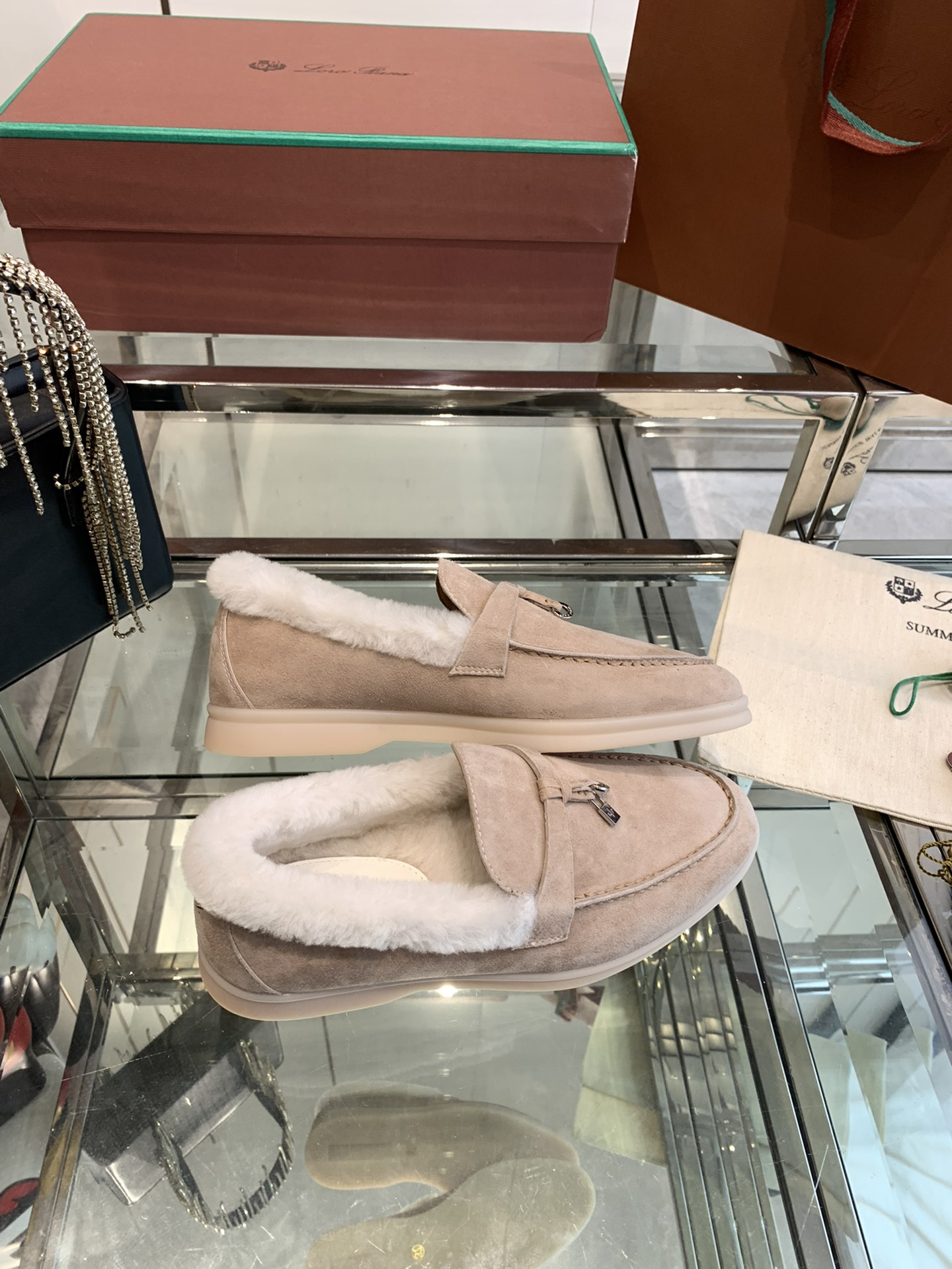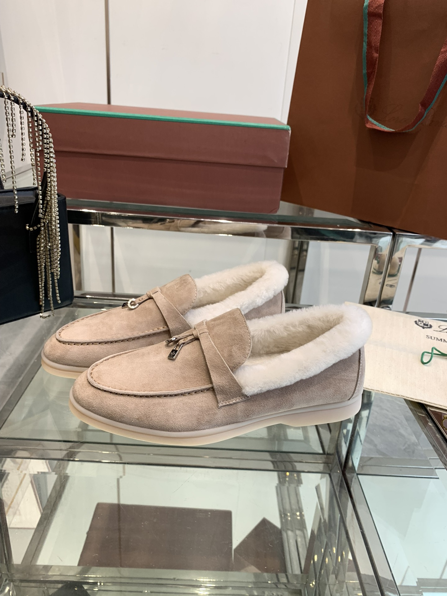 这款鞋子是AAAAA 1:1 质量 (非常棒). 使用了和原版一模一样的材料. 商标部分也保持了和洛罗皮亚纳/Loro Piana一样. 图片拍摄是实物鞋子拍摄, 您所收到的实物保证和我们图片一模一样.