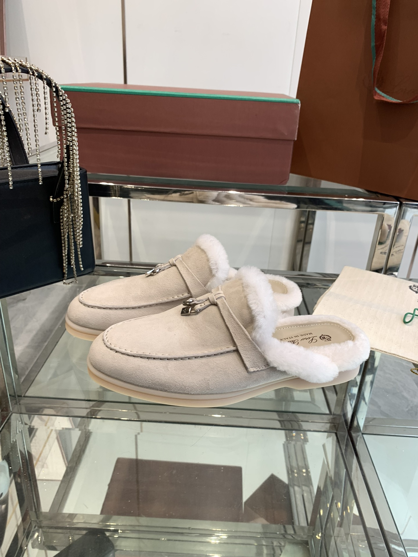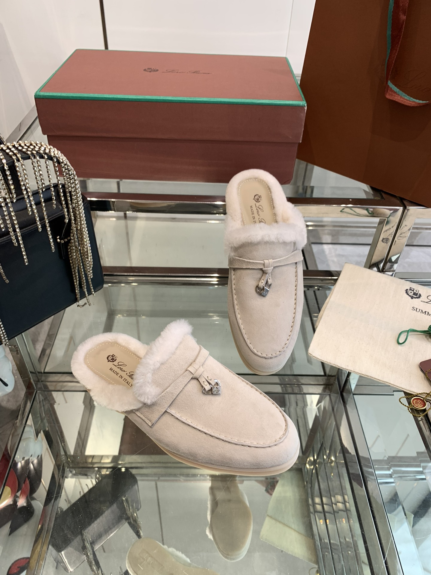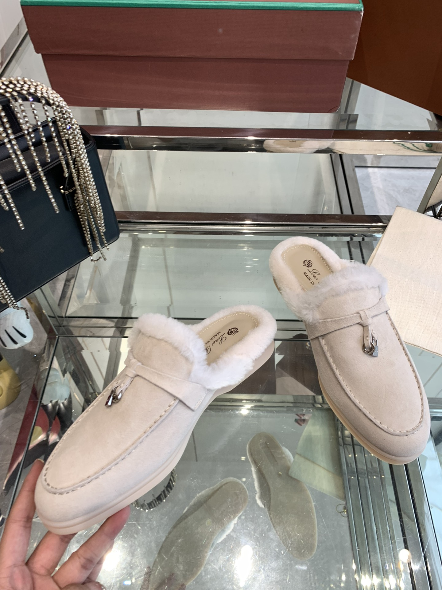 这款鞋子是AAAAA 1:1 质量 (非常棒). 使用了和原版一模一样的材料. 商标部分也保持了和洛罗皮亚纳/Loro Piana一样. 图片拍摄是实物鞋子拍摄, 您所收到的实物保证和我们图片一模一样.