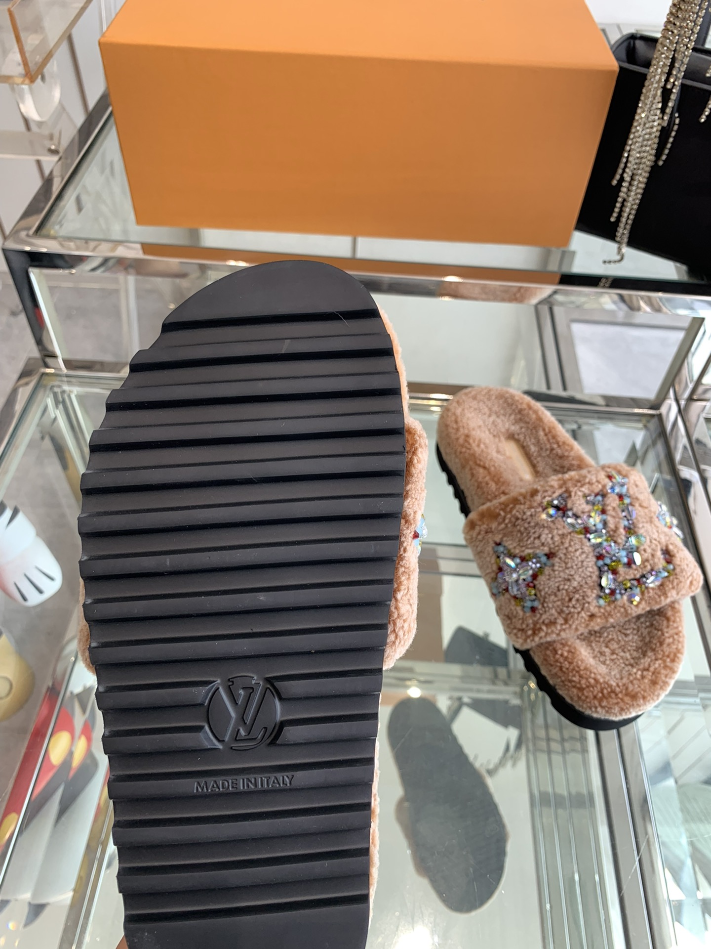 这款鞋子是AAAAA 1:1 质量 (非常棒). 使用了和原版一模一样的材料. 商标部分也保持了和路易威登/Louis Vuitton一样. 图片拍摄是实物鞋子拍摄, 您所收到的实物保证和我们图片一模一样.