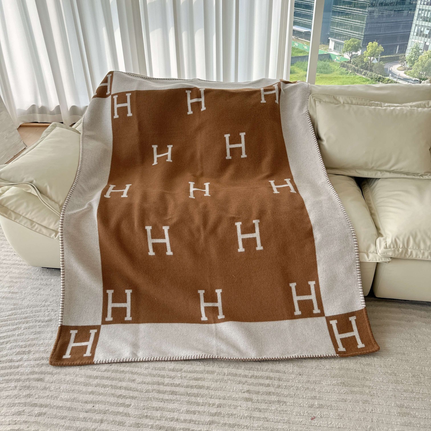 这款毯是AAAAA 1:1 质量 (非常棒). 使用了和原版一模一样的材料. 商标部分也保持了和爱马仕/Hermes一样. 图片拍摄是实物毯拍摄, 您所收到的实物保证和我们图片一模一样.